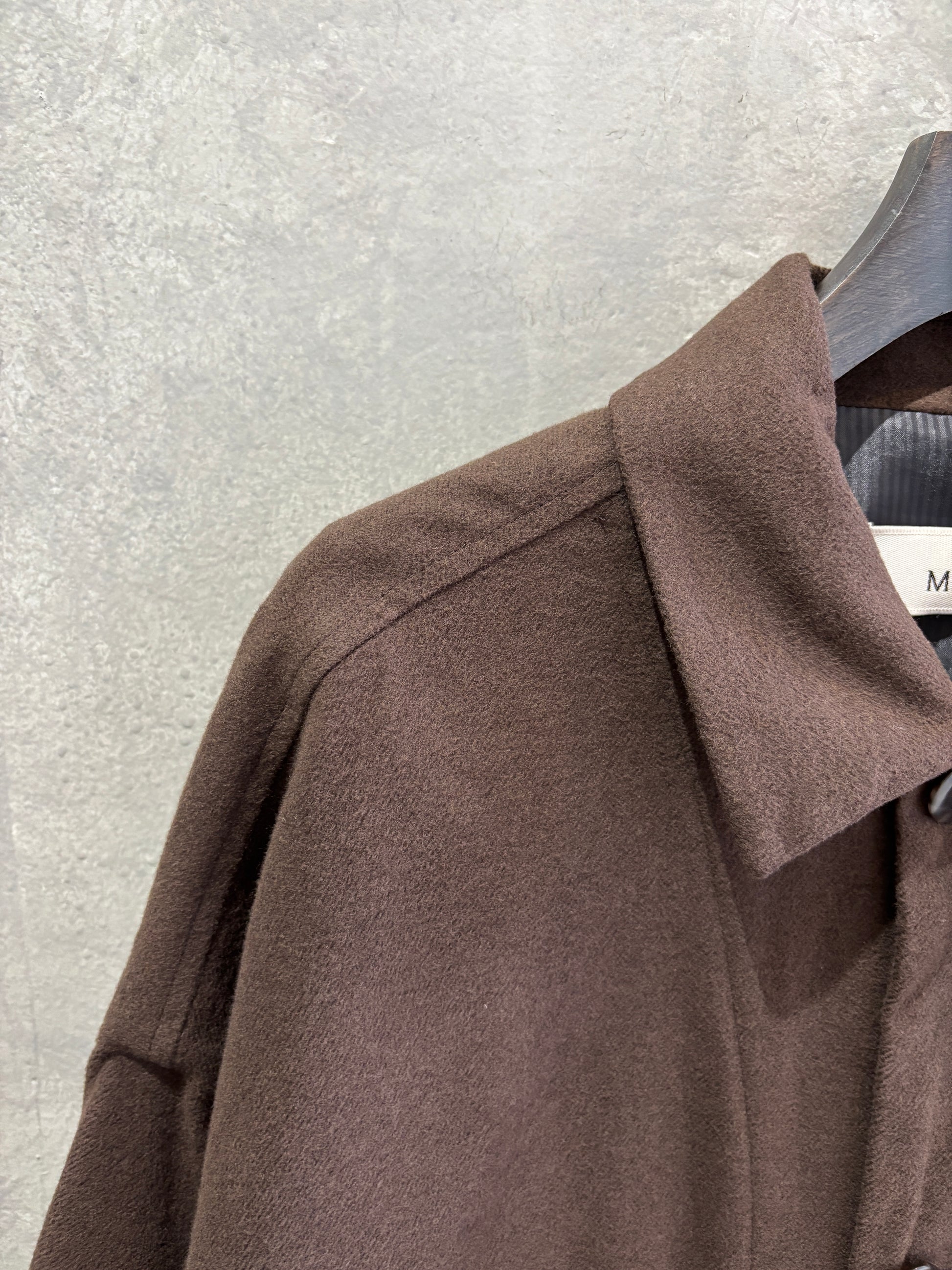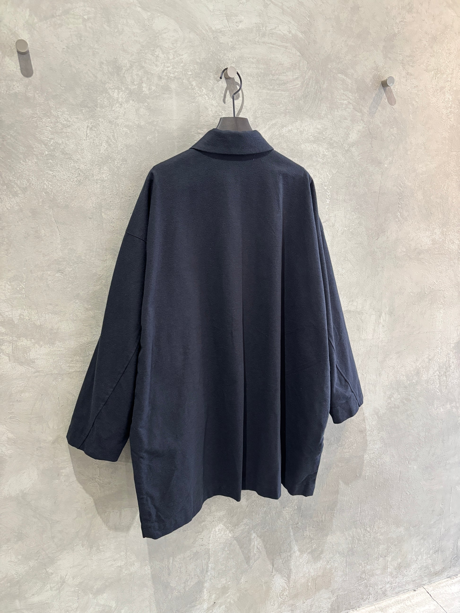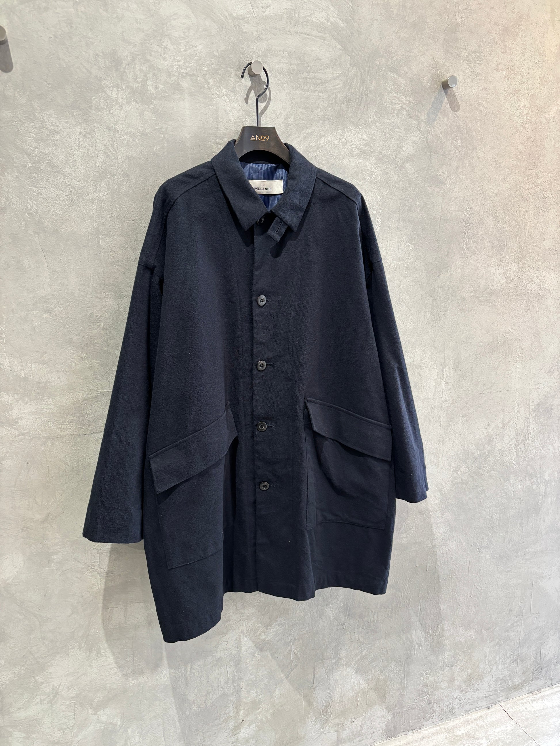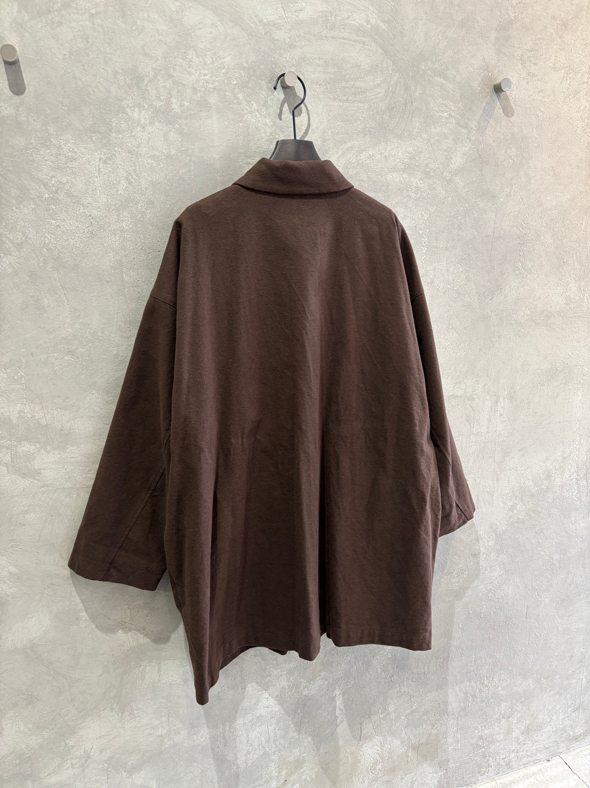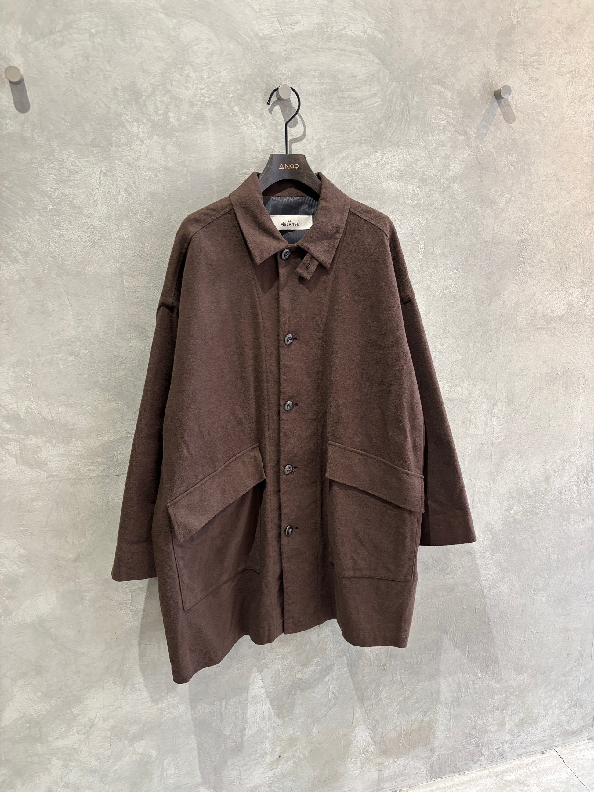 身体をすっぽりと包み込んでくれるようなオーバーサイズのカバーオールで、全体的にかなりゆったりサイズです。細みの男性であれば着用できるくらいゆったりしています。シャツにニットに・・・と重ね着するとどうしてもアウターが難しくなるけど、このアウターならどんな重ね着コーデでも包み込んでくれます!