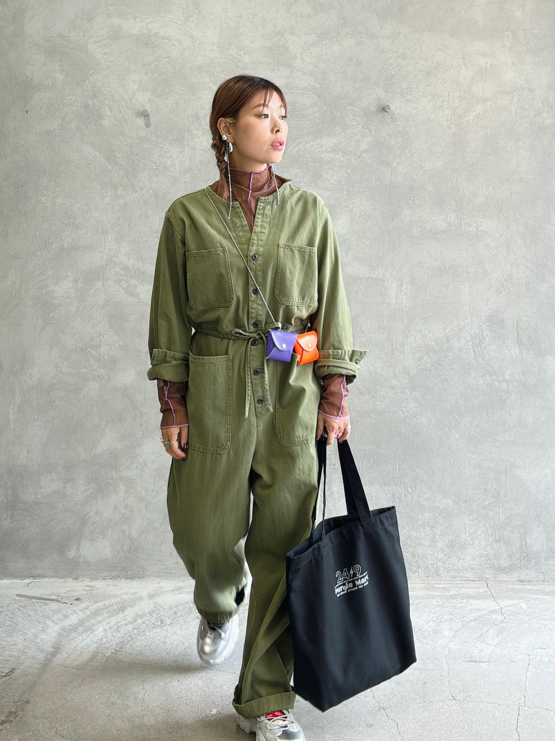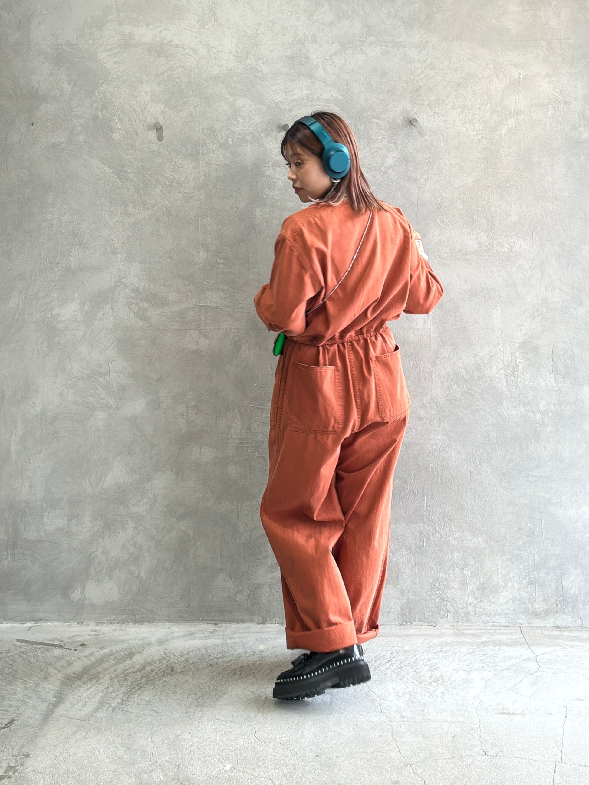 着用すると、身体の7割〜8割を覆うツナギ系のアイテムは細かなシルエットやパターン一つで全然雰囲気が変わるんですが、このツナギは細部にまでこだわってデザインされているので、ツナギ好きさんには間違いなく刺さるアイテム。そしてツナギはなんかカジュアルすぎて苦手・・・という方にはチャレンジするならこのツナギがおすすめです。