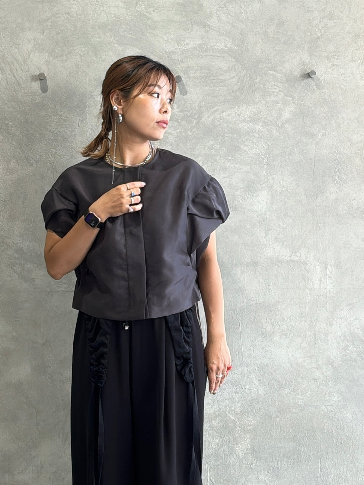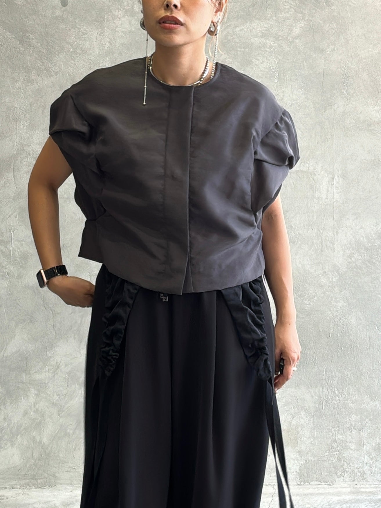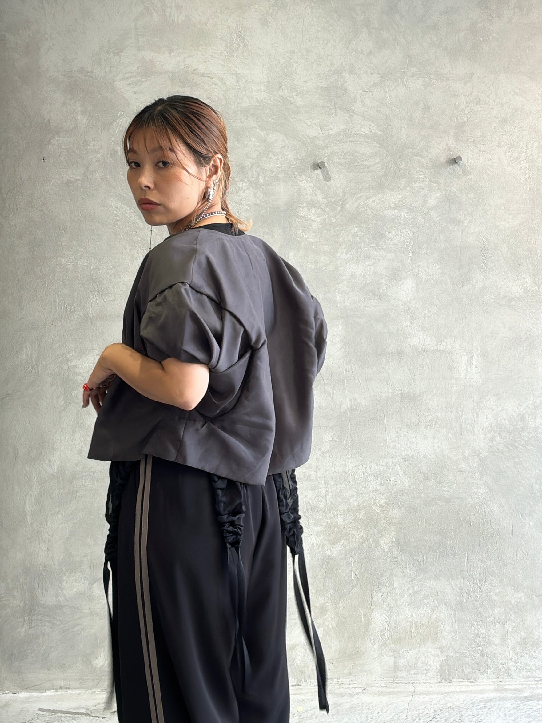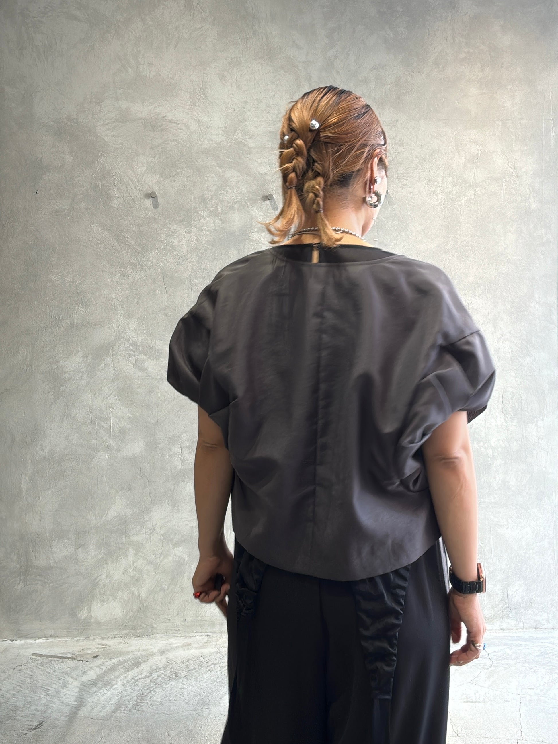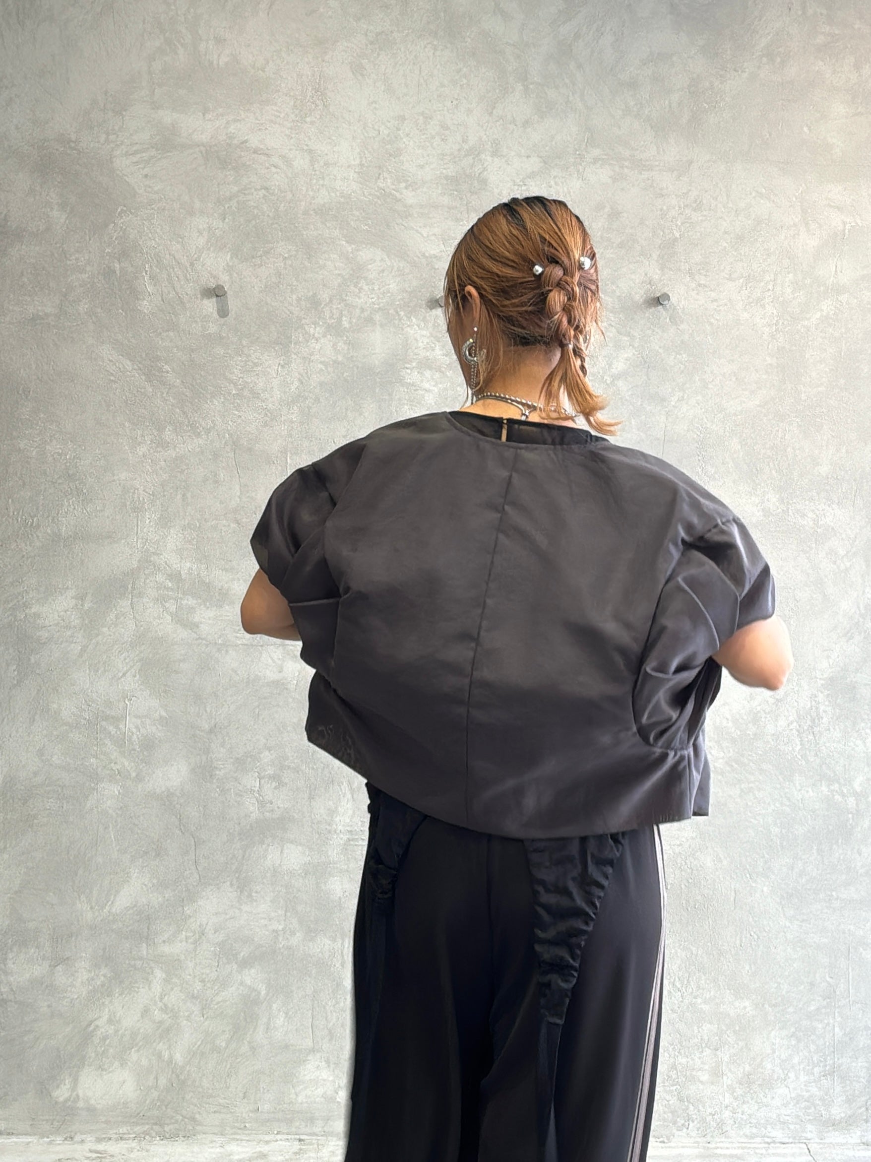 名前の通りエアリーで薄手のオーガンジー素材を使っていて、立体的な袖のデザインがちょっとモードな雰囲気に。透け感と光に当たったときのさりげない反射が、今までにない感じでとても可愛いです。
