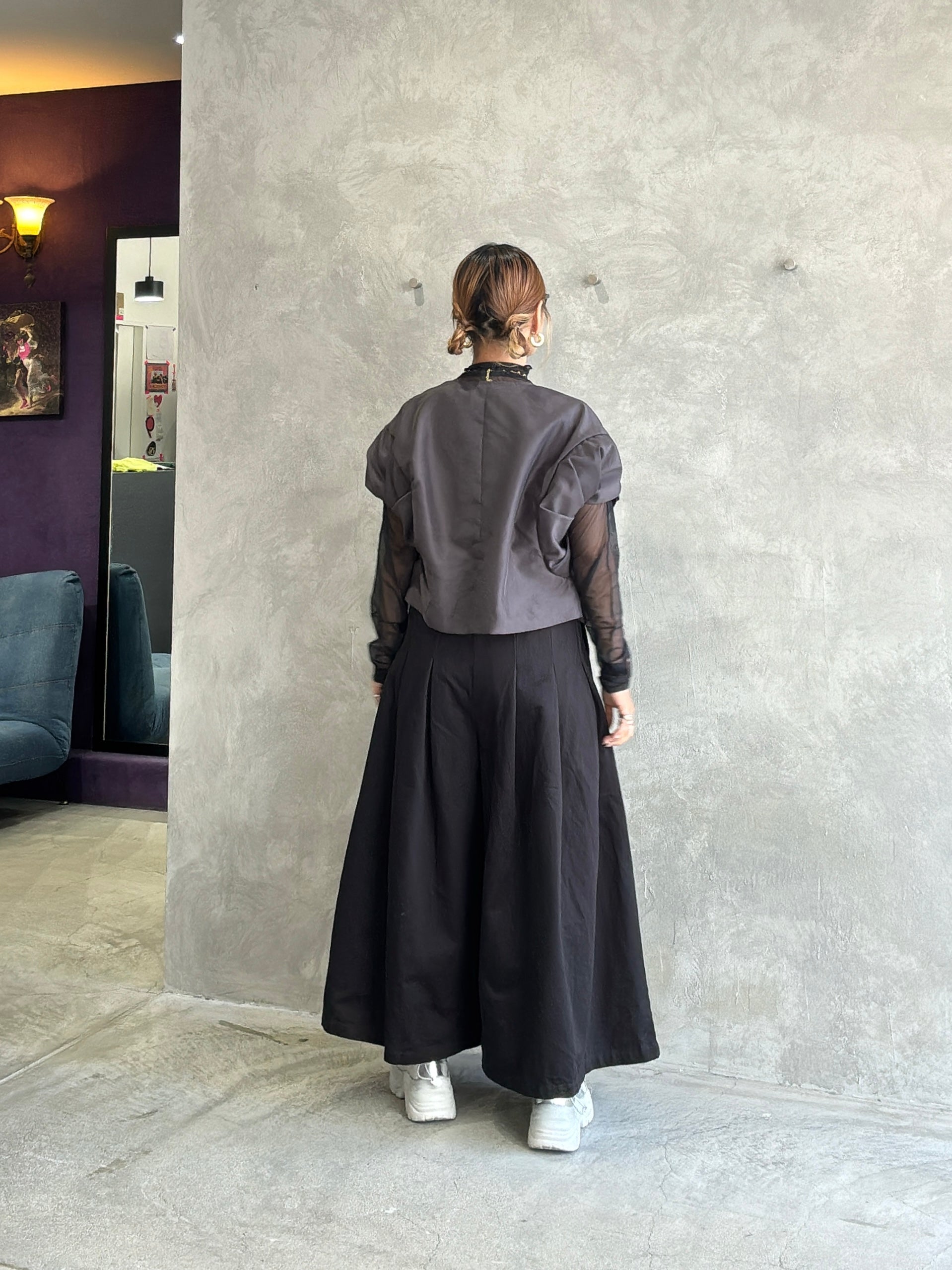 ふんわり軽いオーガンジーで作られた、ブラウスみたいでもあり羽織りっぽくも着られるアイテムです。
