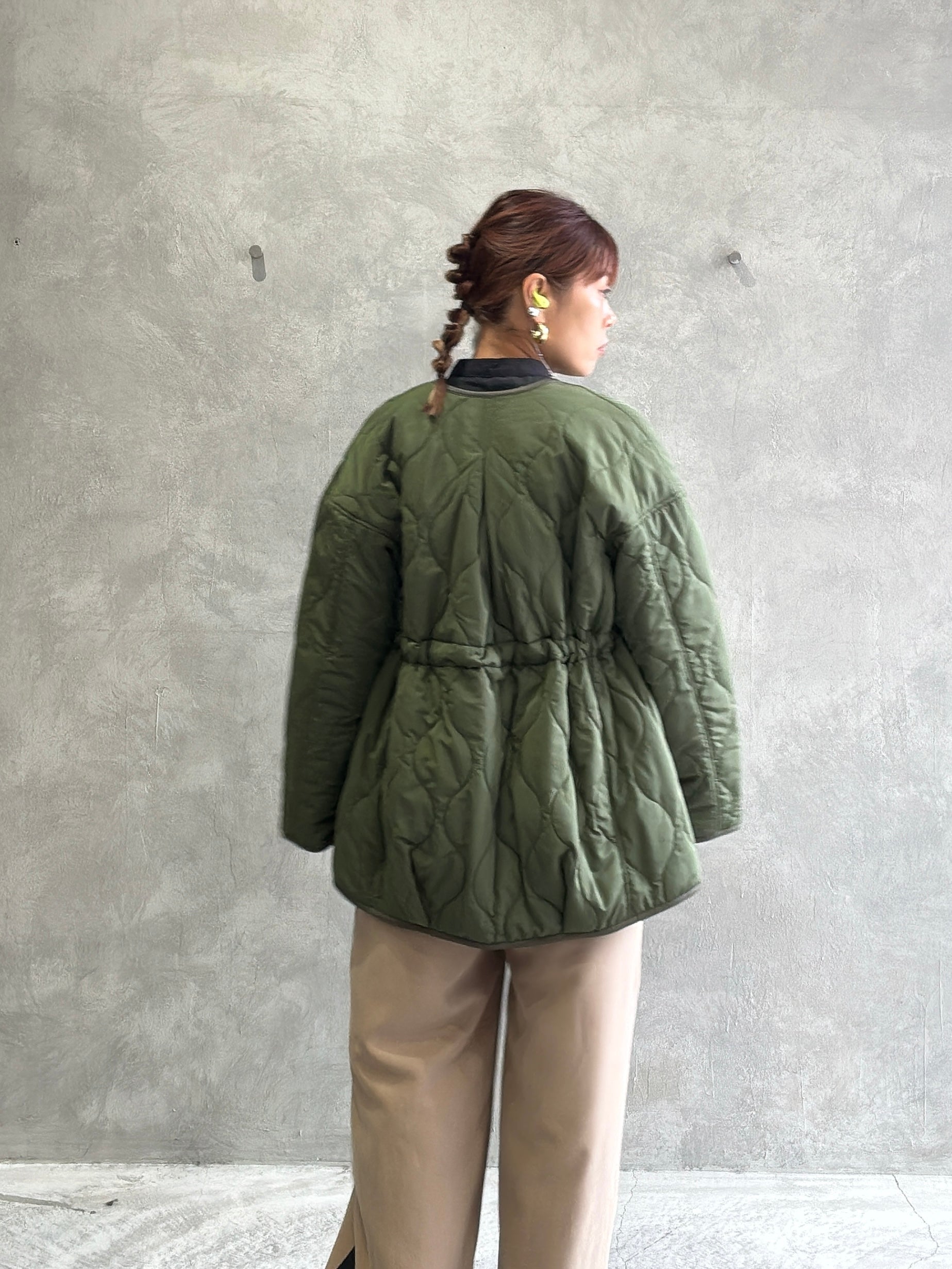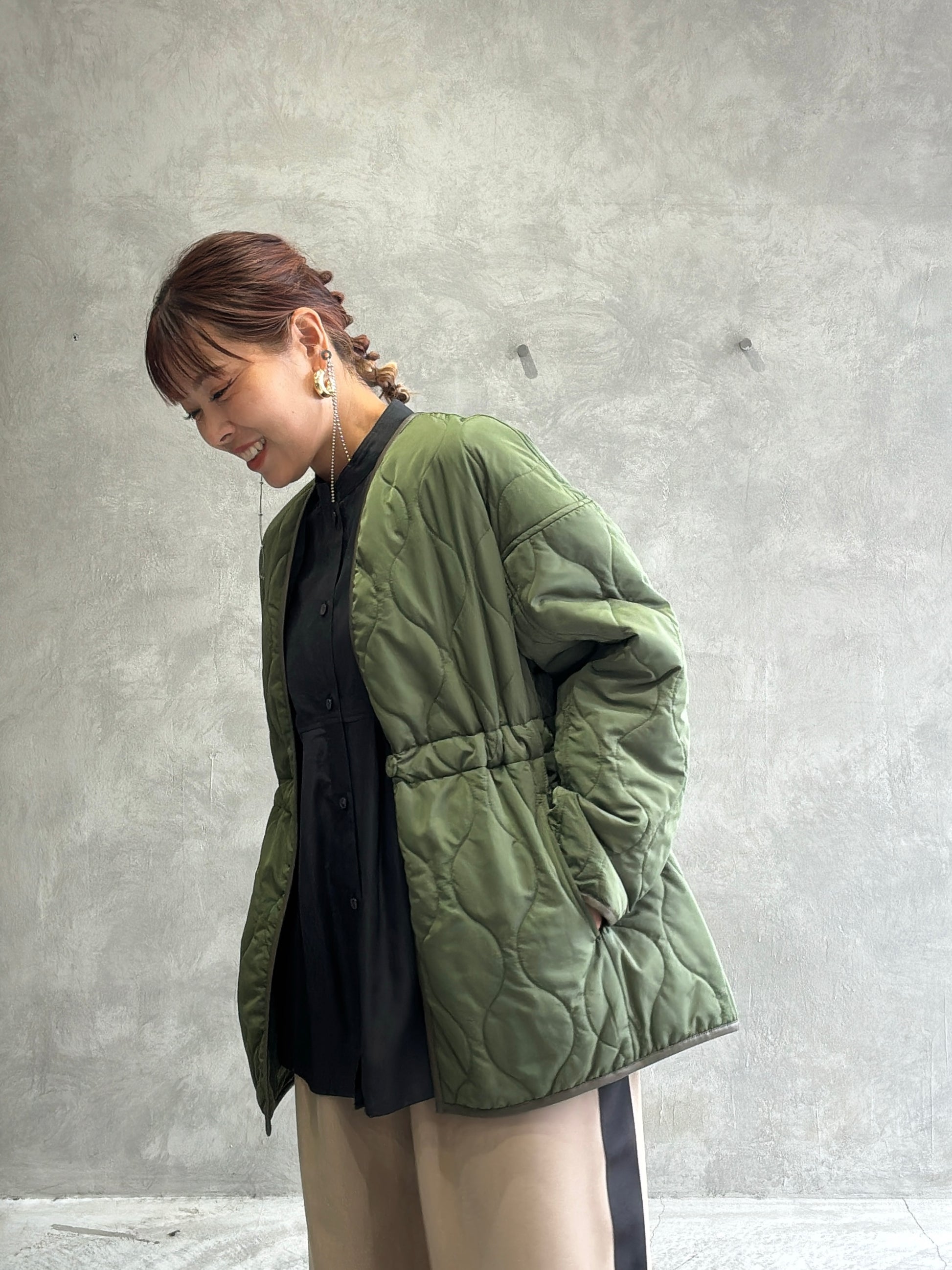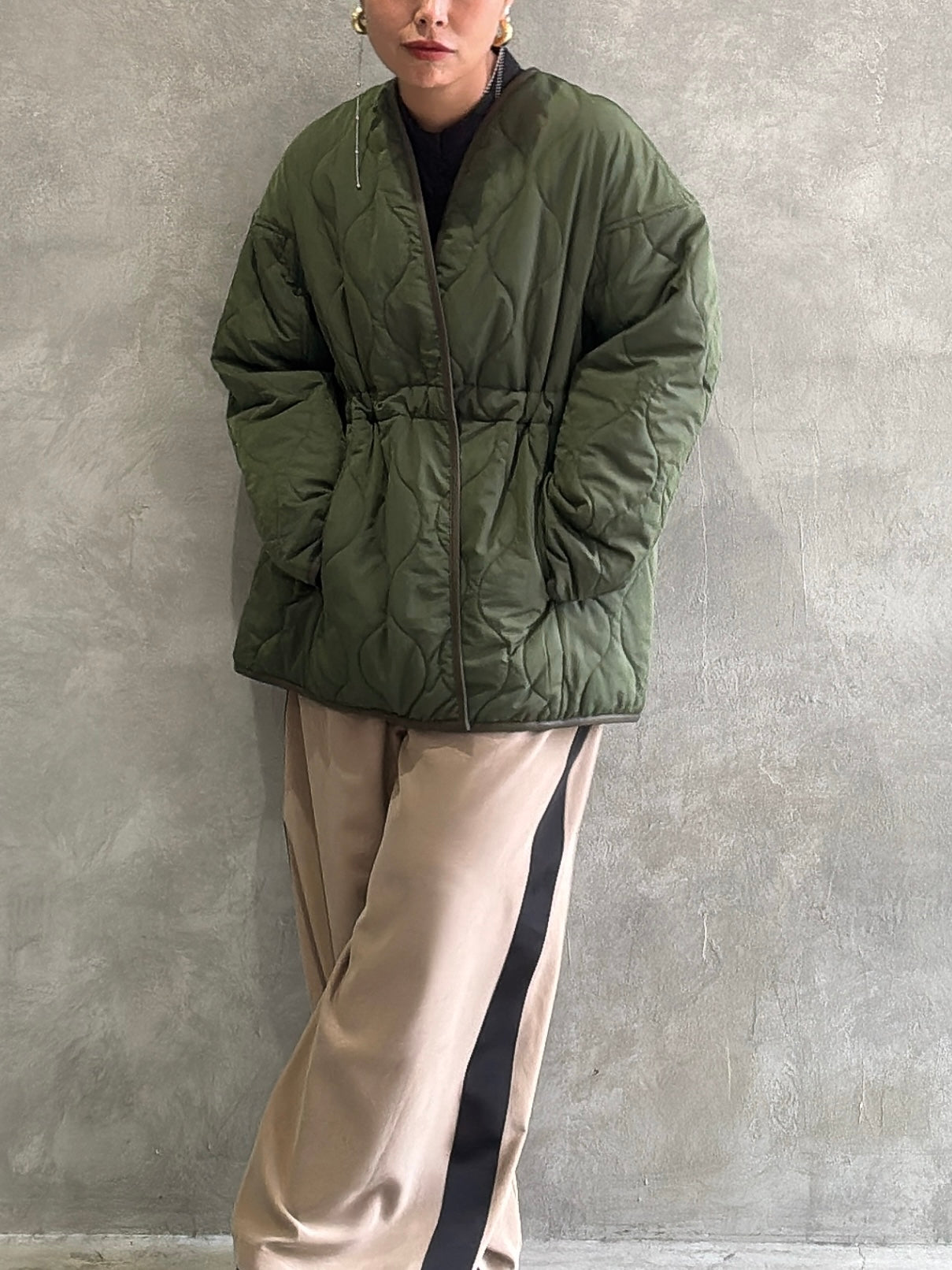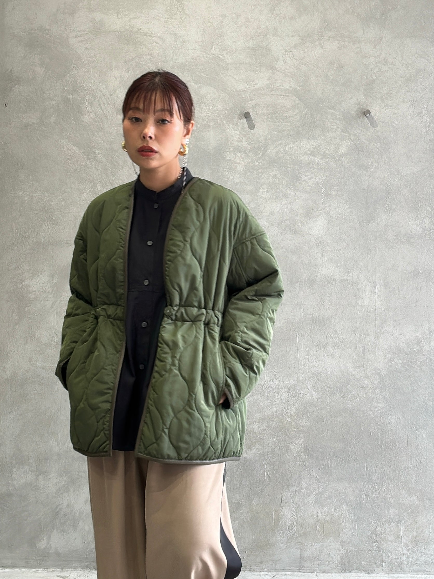 ・素材 表地:ポリエステル100%、中綿:ポリエステル100%、パイピング布:ポリウレタン55%、コットン45%、裏地:ポリエステル100%