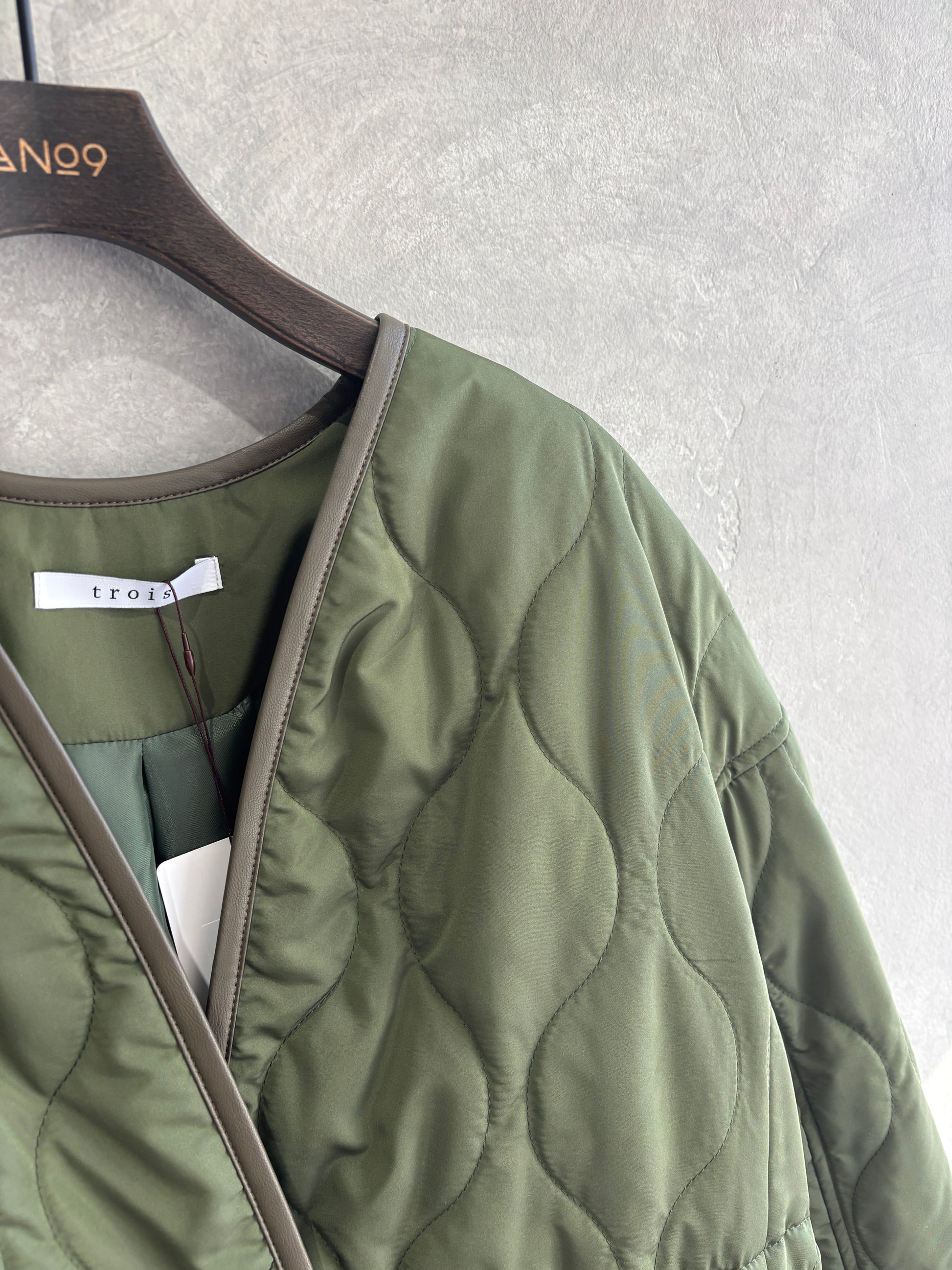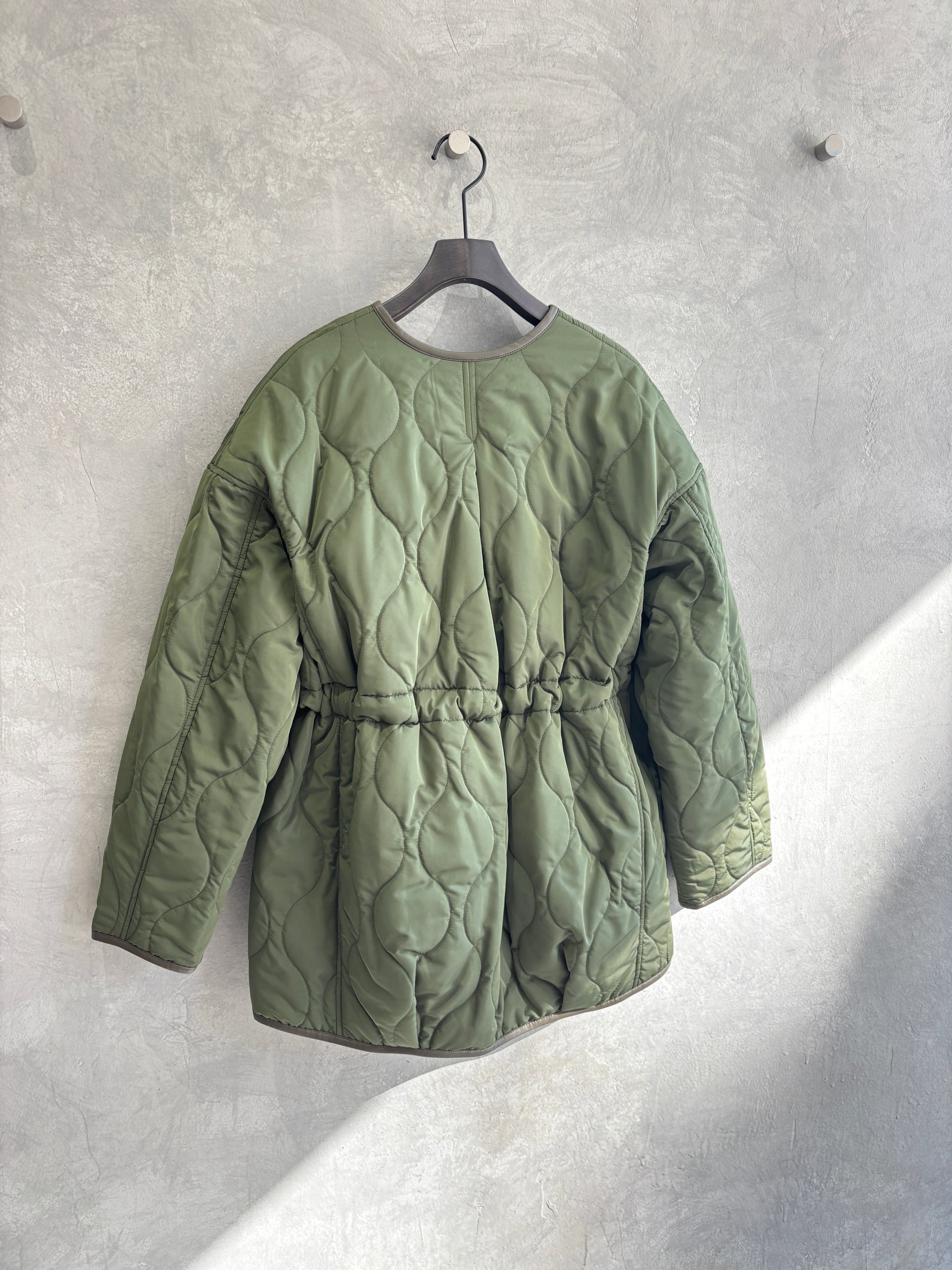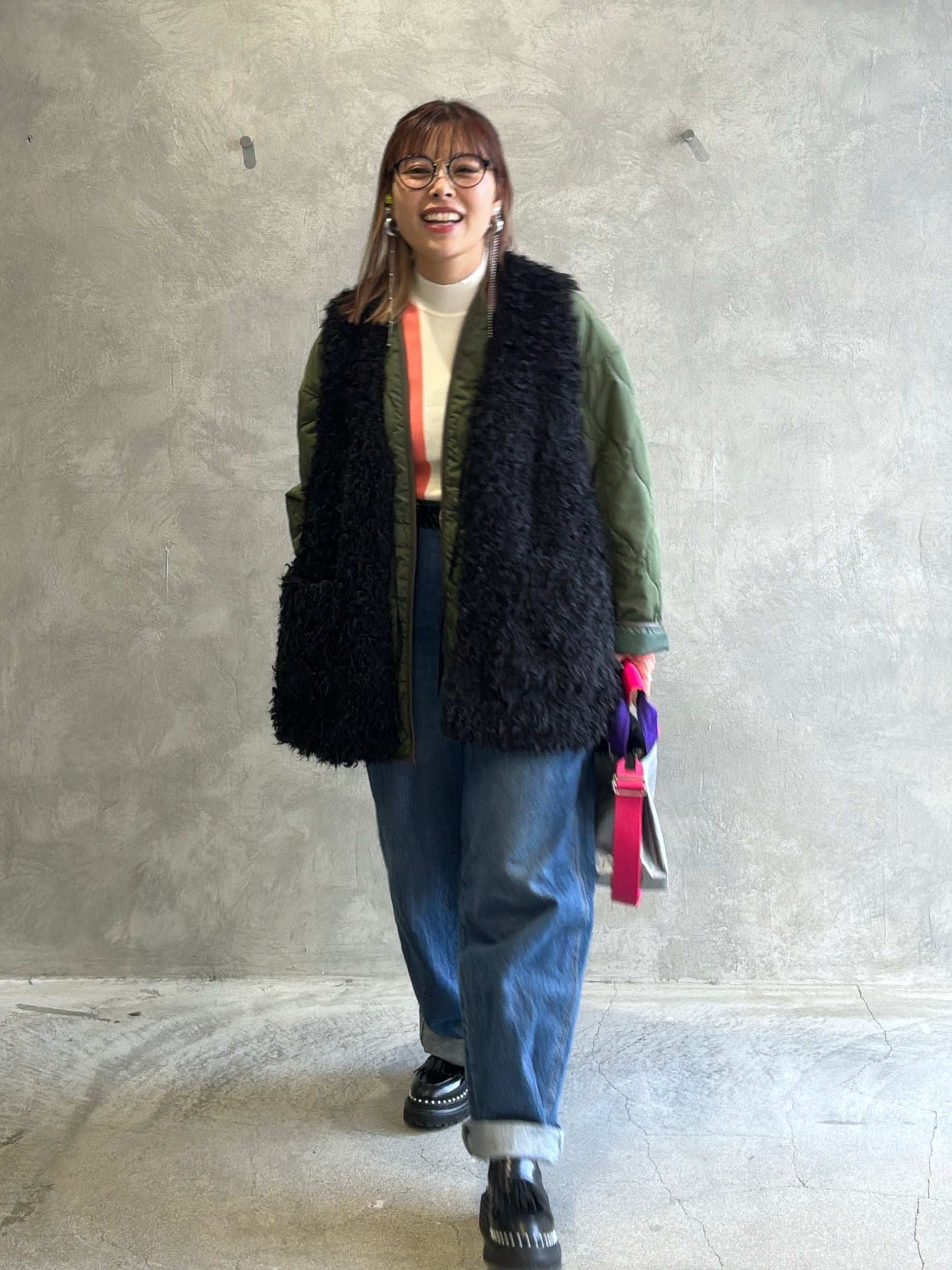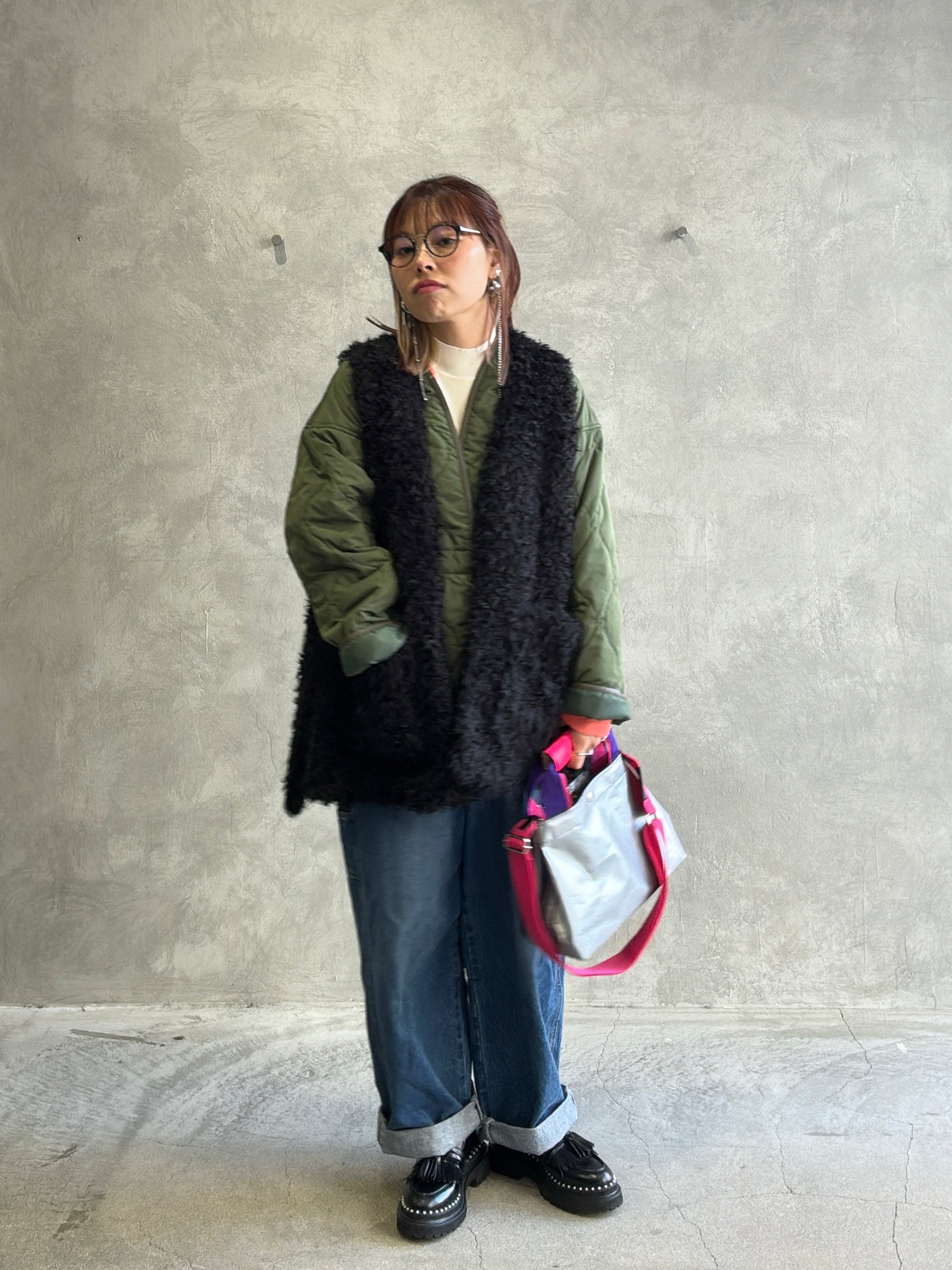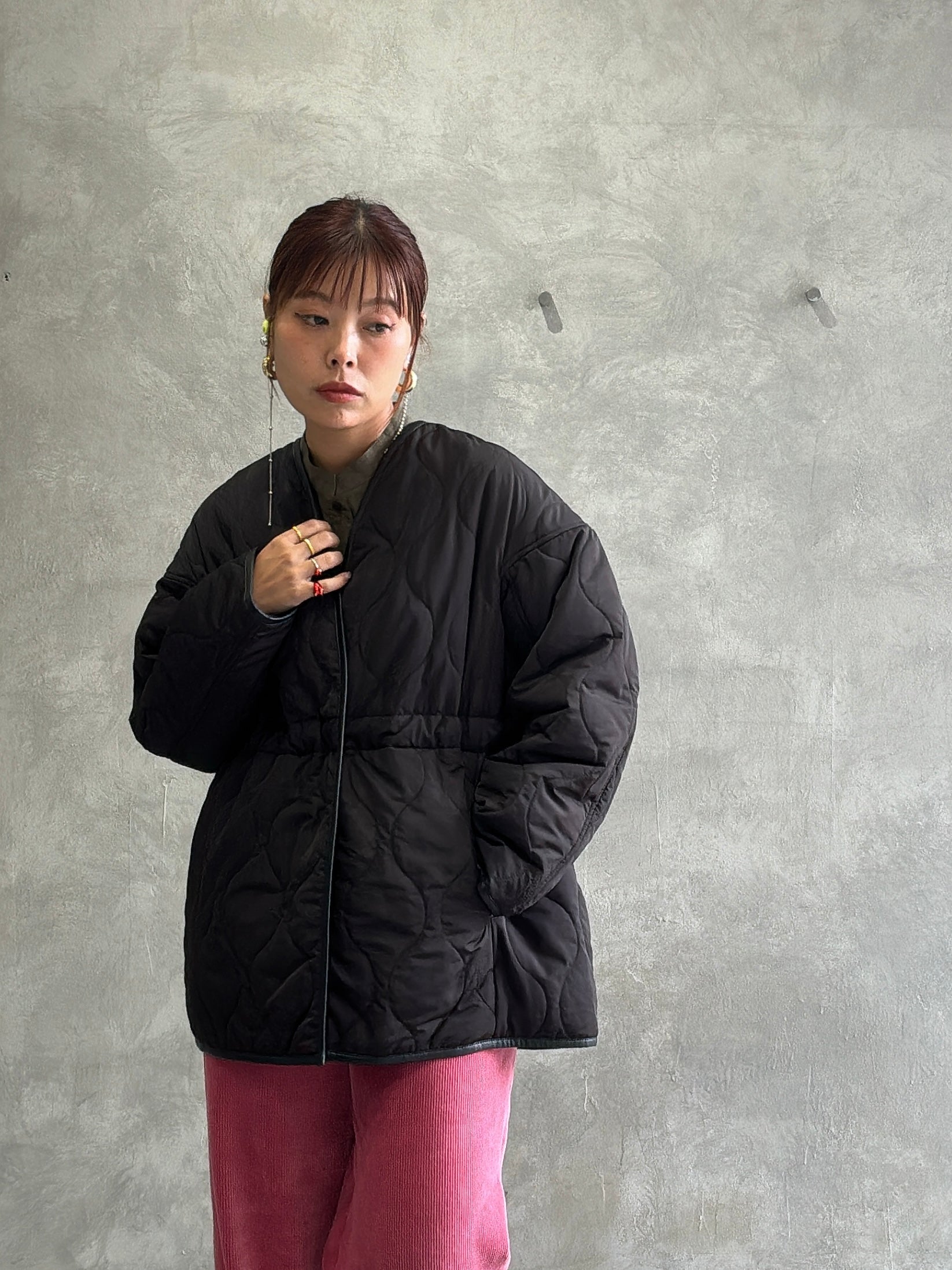 ・素材 表地:ポリエステル100%、中綿:ポリエステル100%、パイピング布:ポリウレタン55%、コットン45%、裏地:ポリエステル100%
