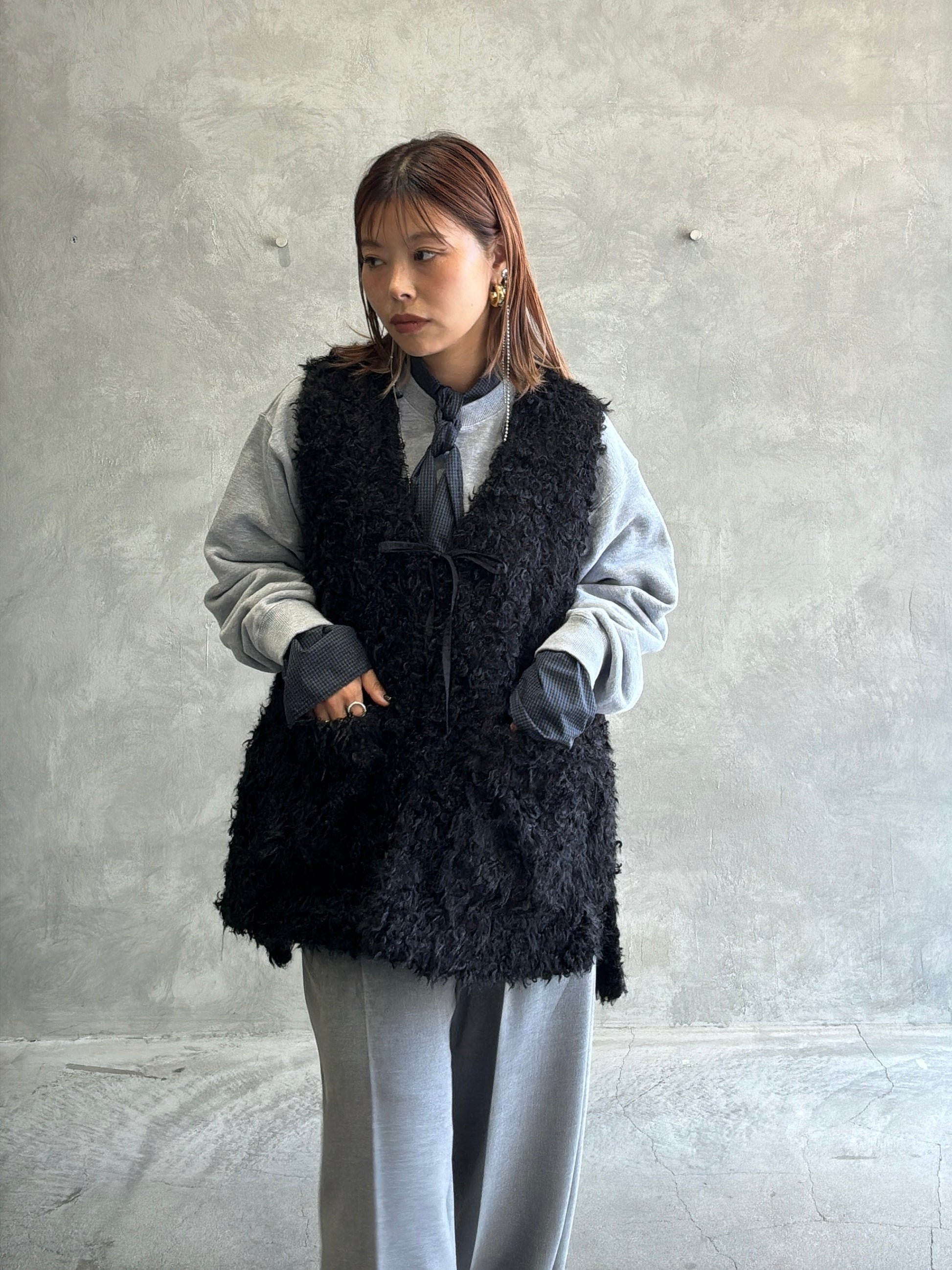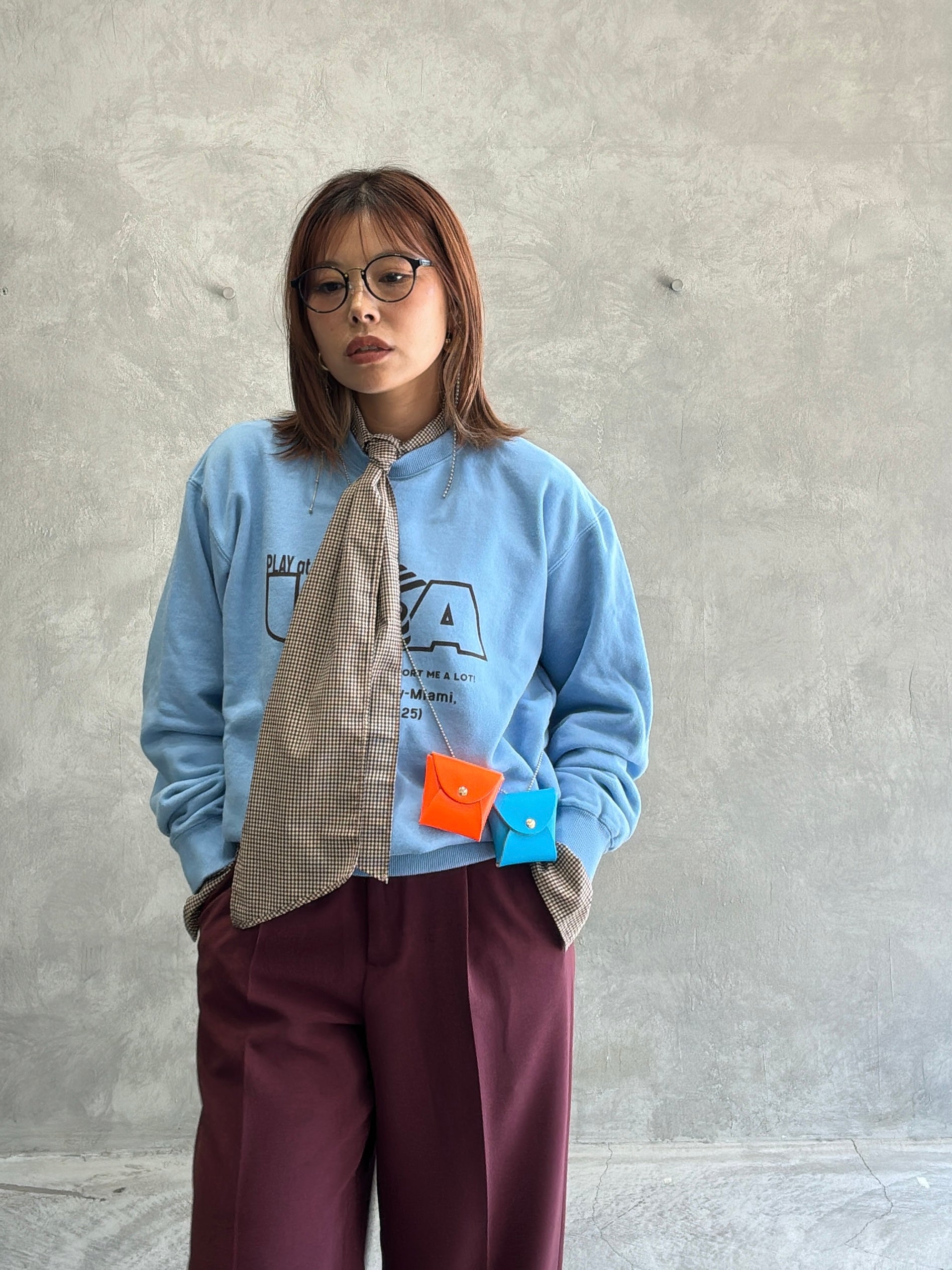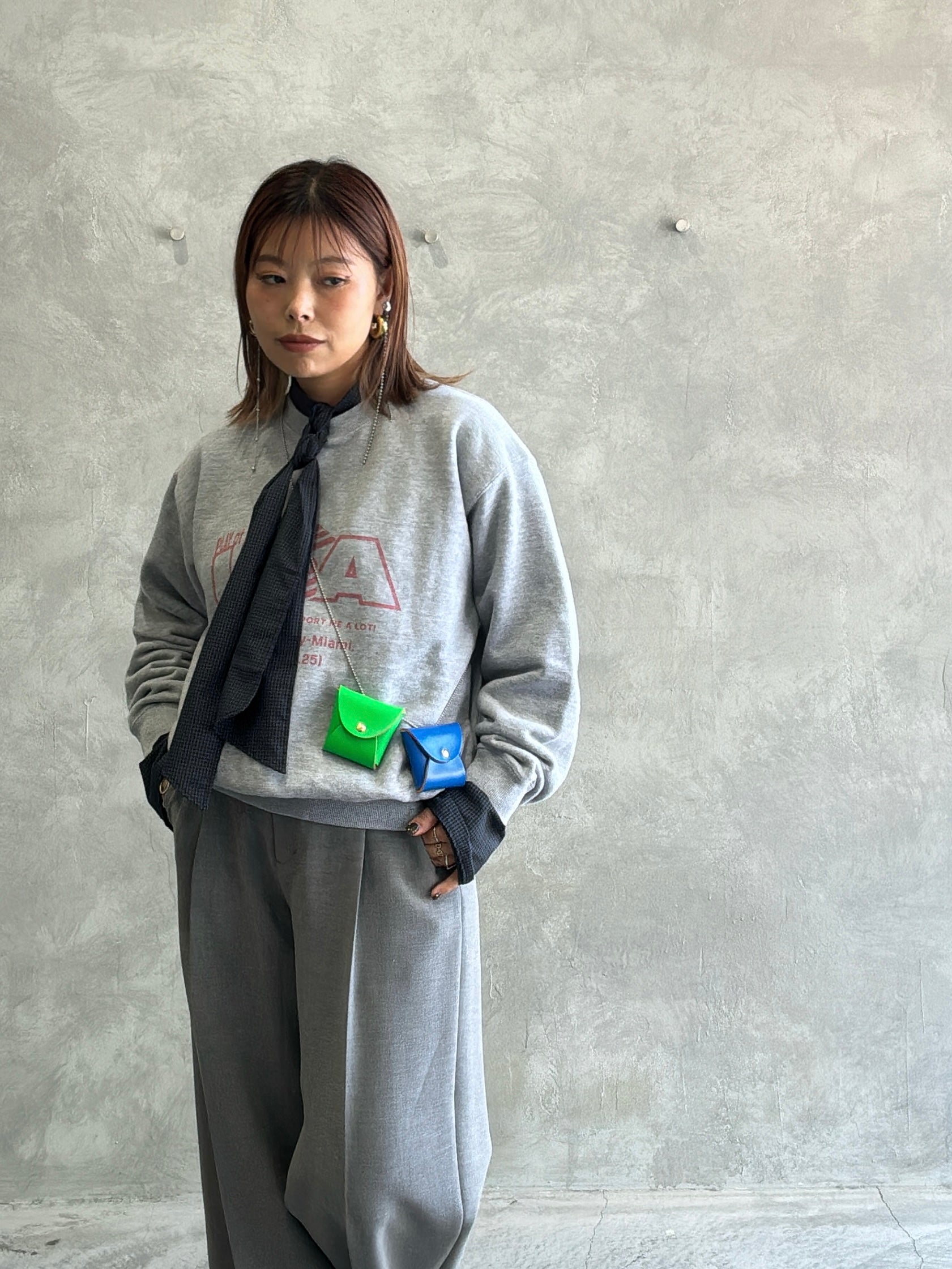 コチラのシャツ、可愛い気がするなとチェックしてたんですが、タイ付きはちょいとラブリーになる?もしくはビジネスっぽくなるんじゃないか?と思ってたんですが、これめっちゃ可愛かったです。今回のコレクションの推しアイテムトップ3に入るくらいめちゃくちゃ可愛いです。ニットやスウェットとの重ね着に使いたいアイテムです。シャツ自体も重ね着を想定して、つるっと薄手の素材感になっていて、カフス部分もレイヤードして袖口を折り返すことを想定して生地を重ねず、分厚さを軽減しているこだわり。最高です。
