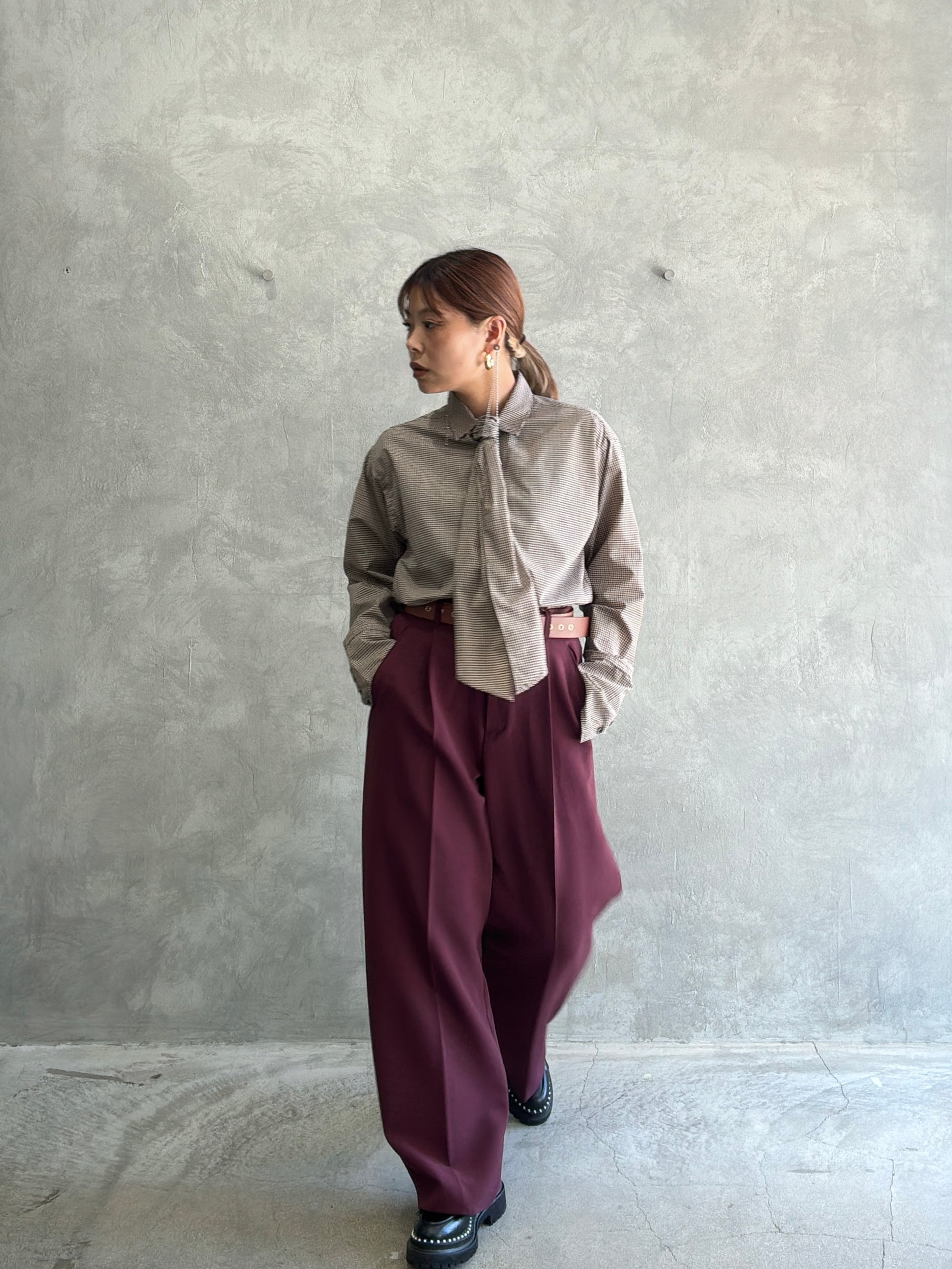 個人的にはこのシャツにニットを重ね着して、タックパンツを履いてマニッシュなコーデをしたいと思ってます。