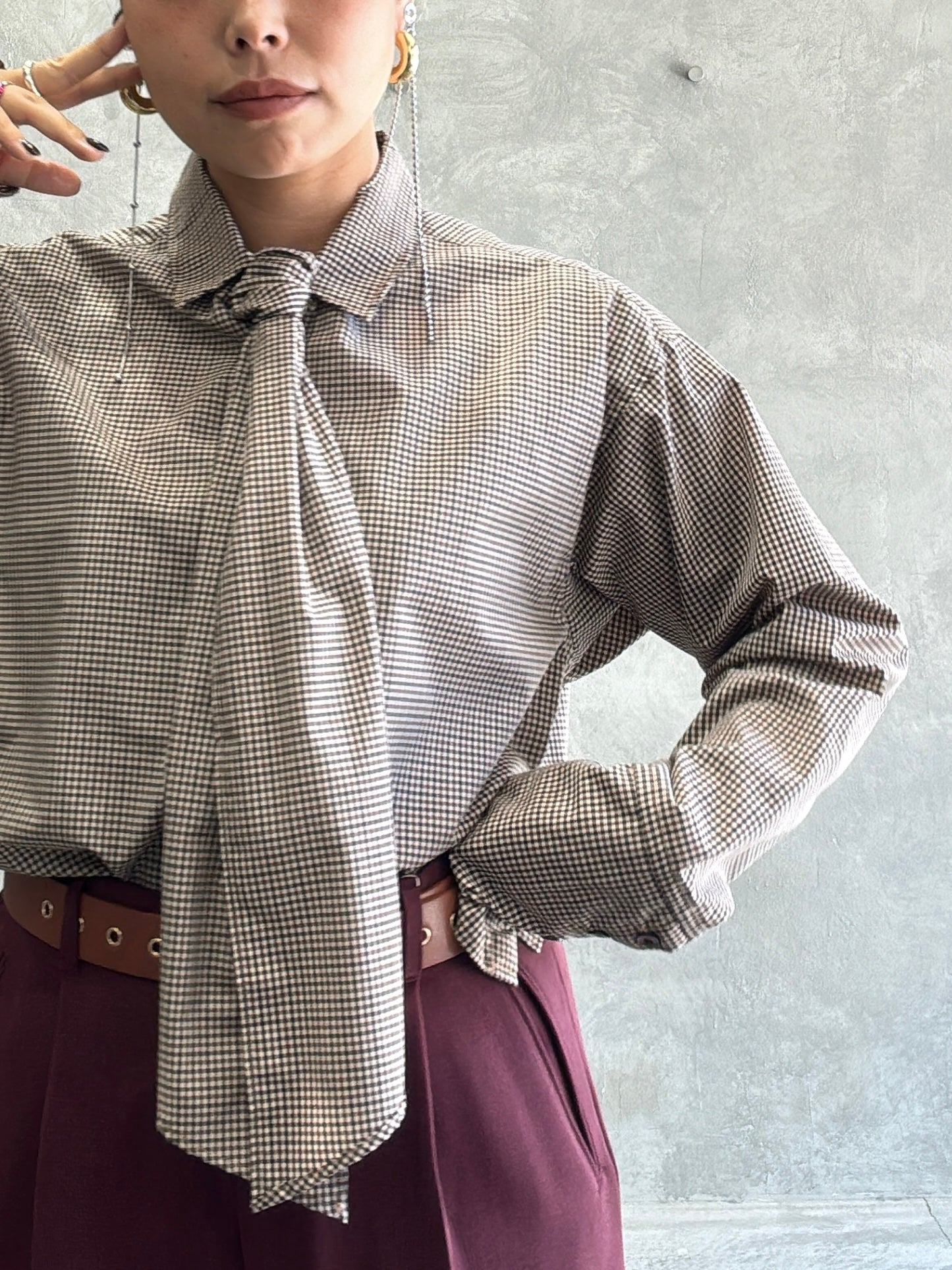 タイ付きチェックシャツ/LE MÉLANGE