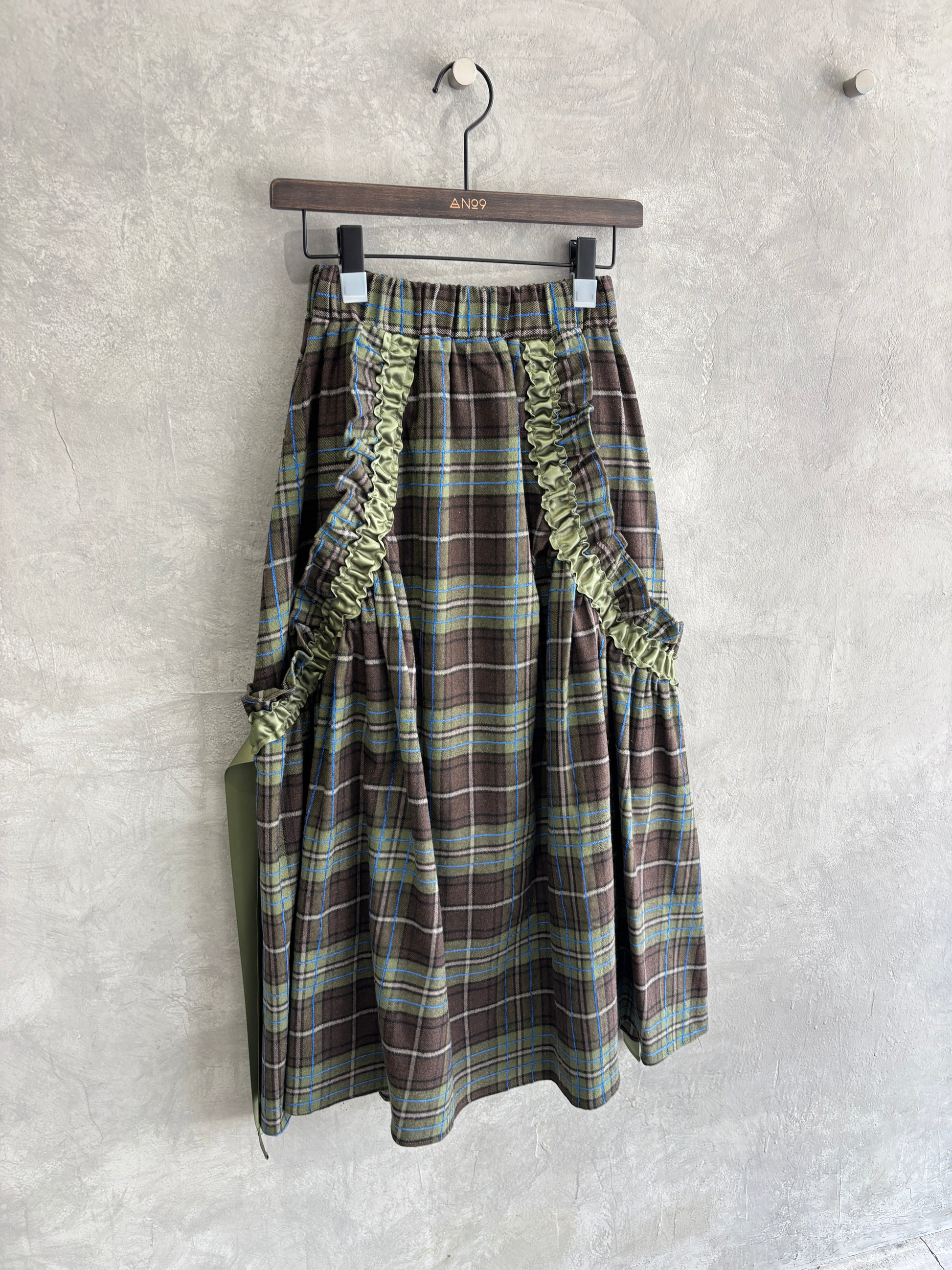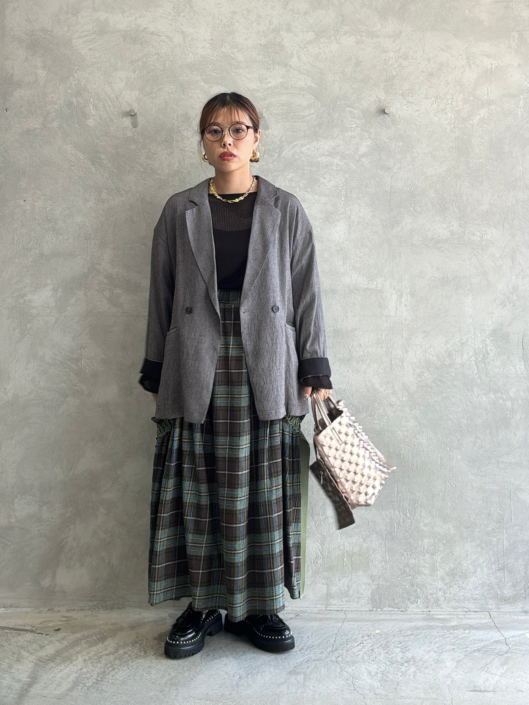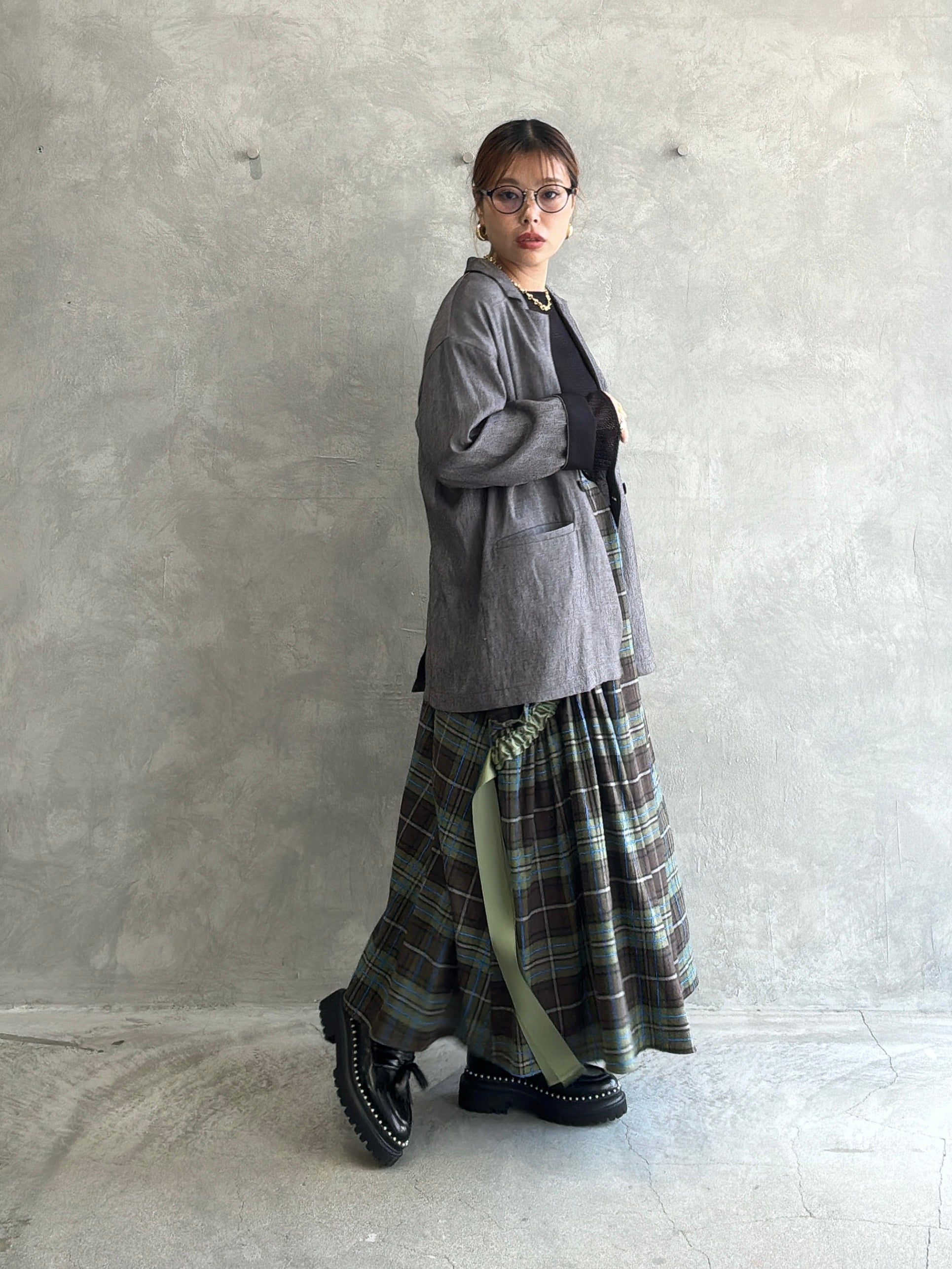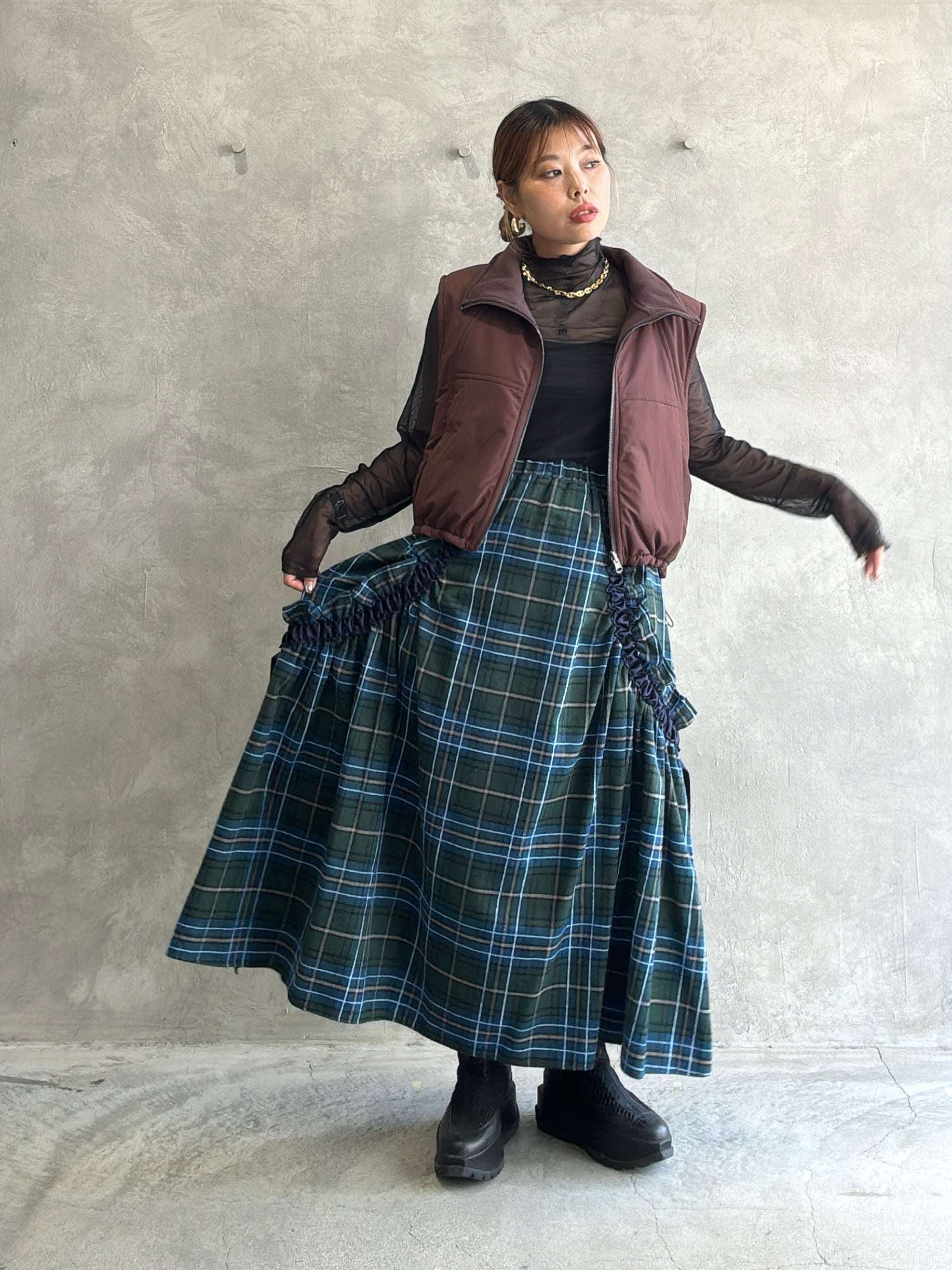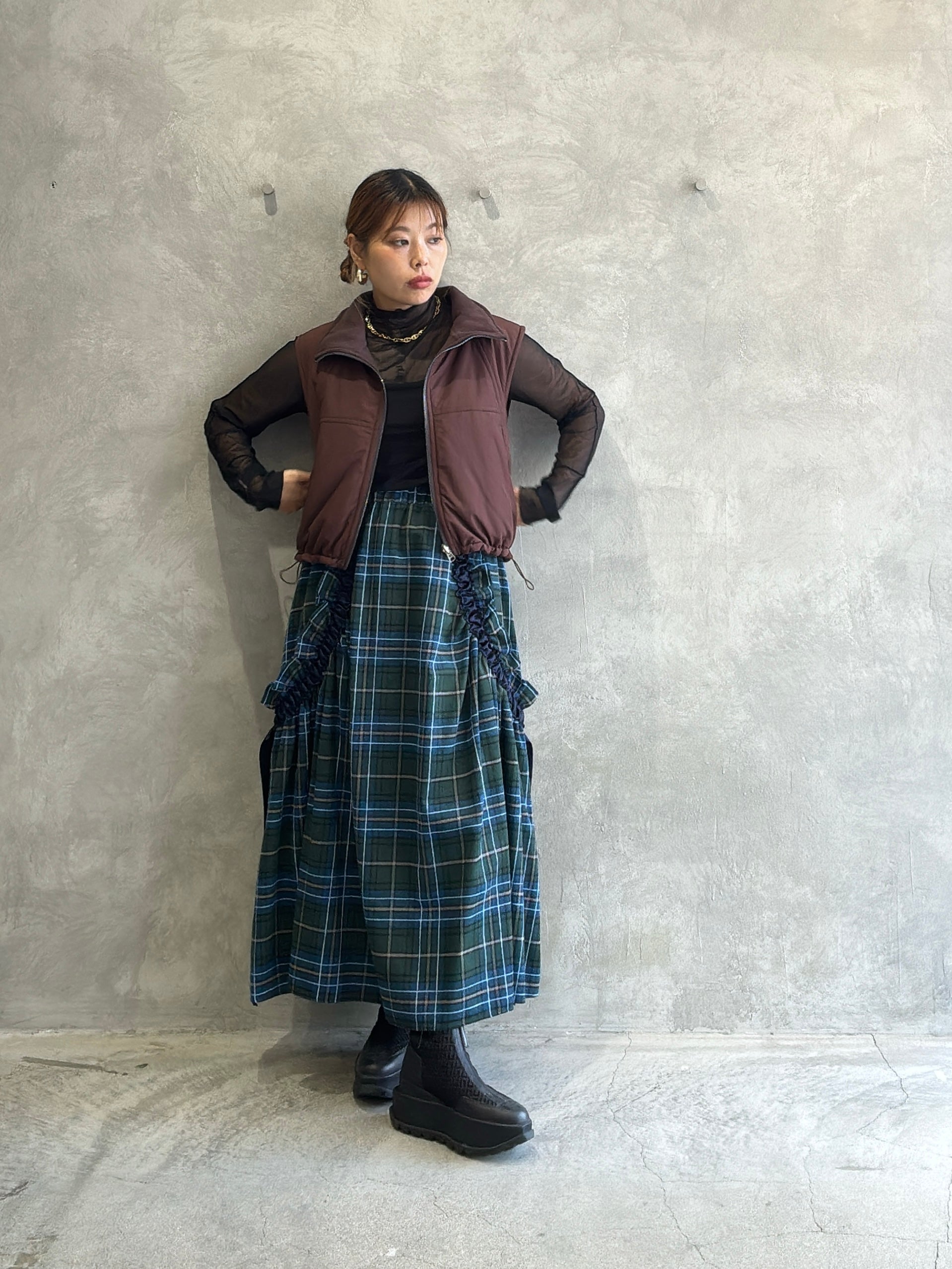 こちらは新しくお取り扱いを始めるブランドさんのアイテムで、ちょっとガーリーな雰囲気が強めなんですが、秋冬にはこれくらい主役感のあるスカートを履きたい!と思ってセレクトしました。
