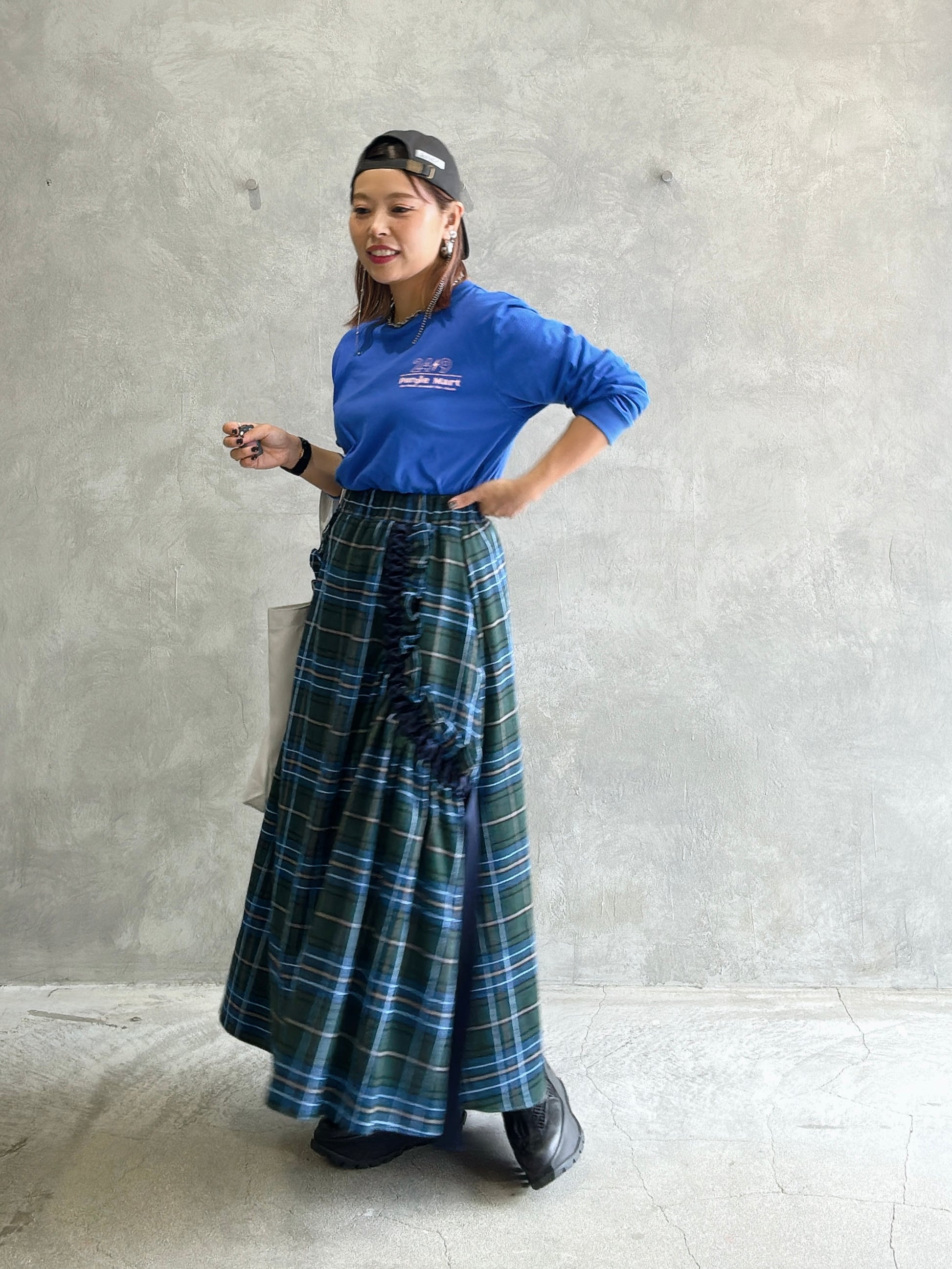 秋冬はレイヤードも楽しめる季節なので、このスカートを主役にコーデを組むとテンションが一気に上がるはず。存在感はありつつも、意外と手持ちのアイテムと合わせやすい一枚です。