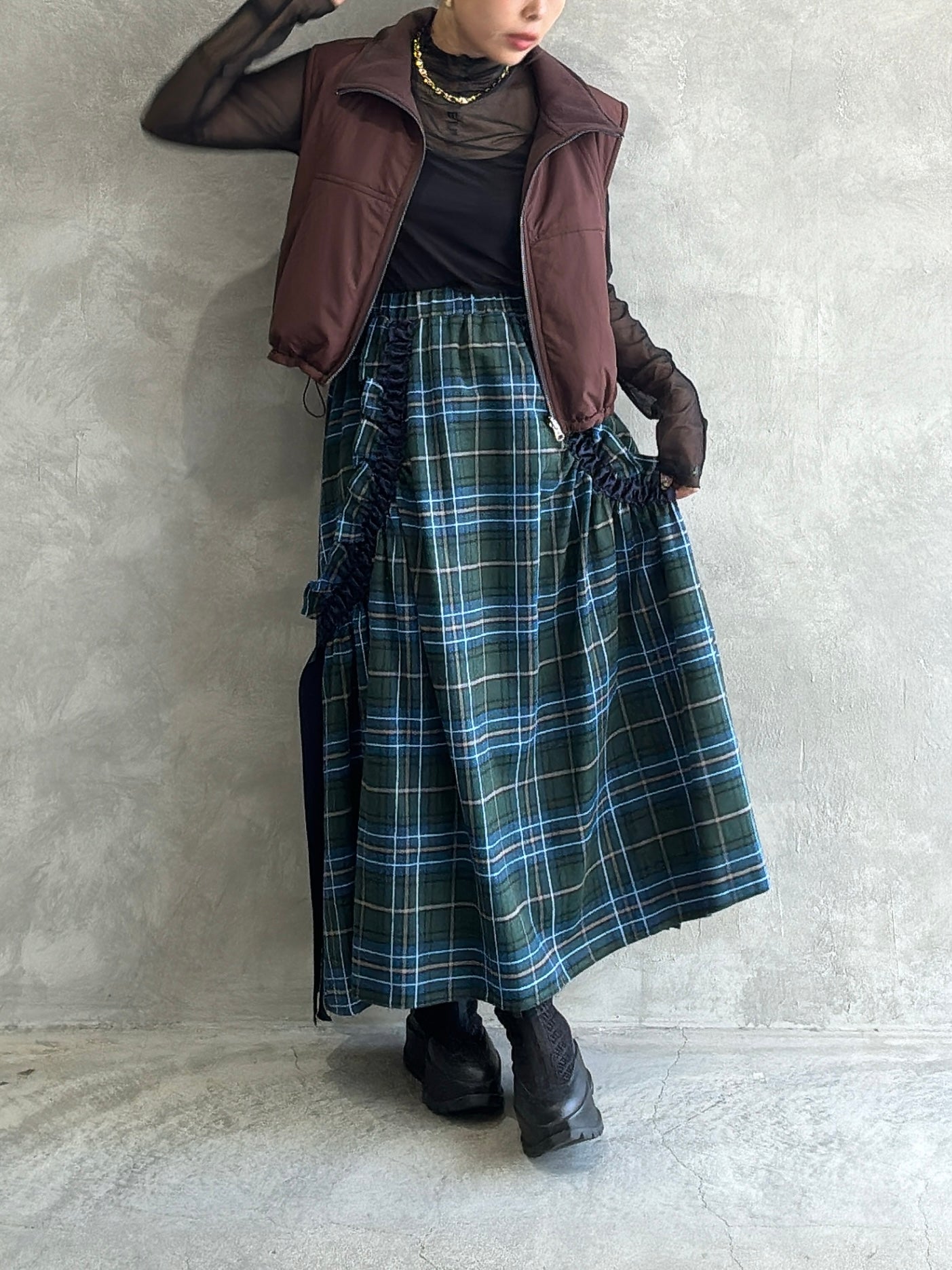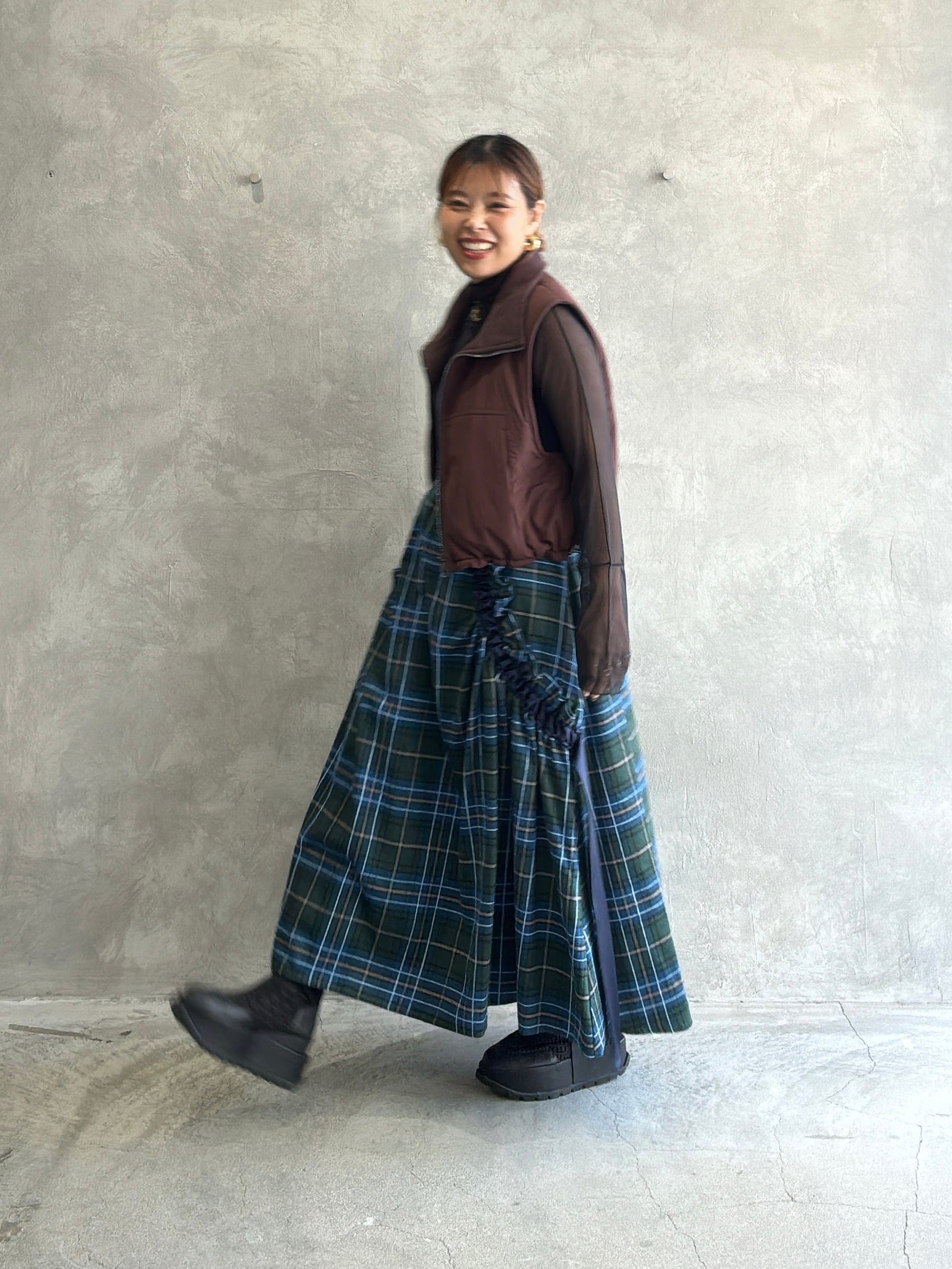 秋冬にぴったりな、インパクト大のチェックスカートです。