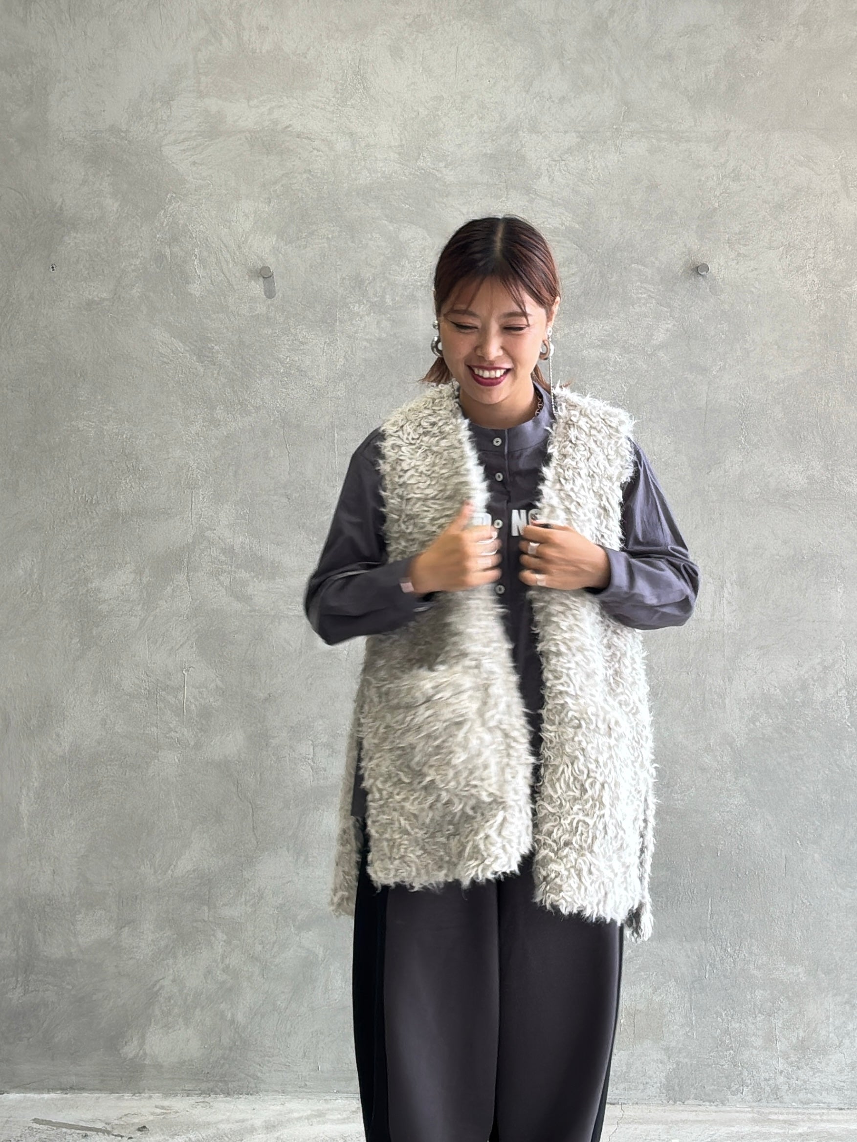 毎年秋冬には定番アイテムとなっているファーベスト、いろんなブランドさん・メーカーさんから展開されていますが、シアンさんのファーベストはくるくるとカールしたファーが立体的でニットのような、ファーのような独特の風合いがめちゃくちゃ可愛いです。