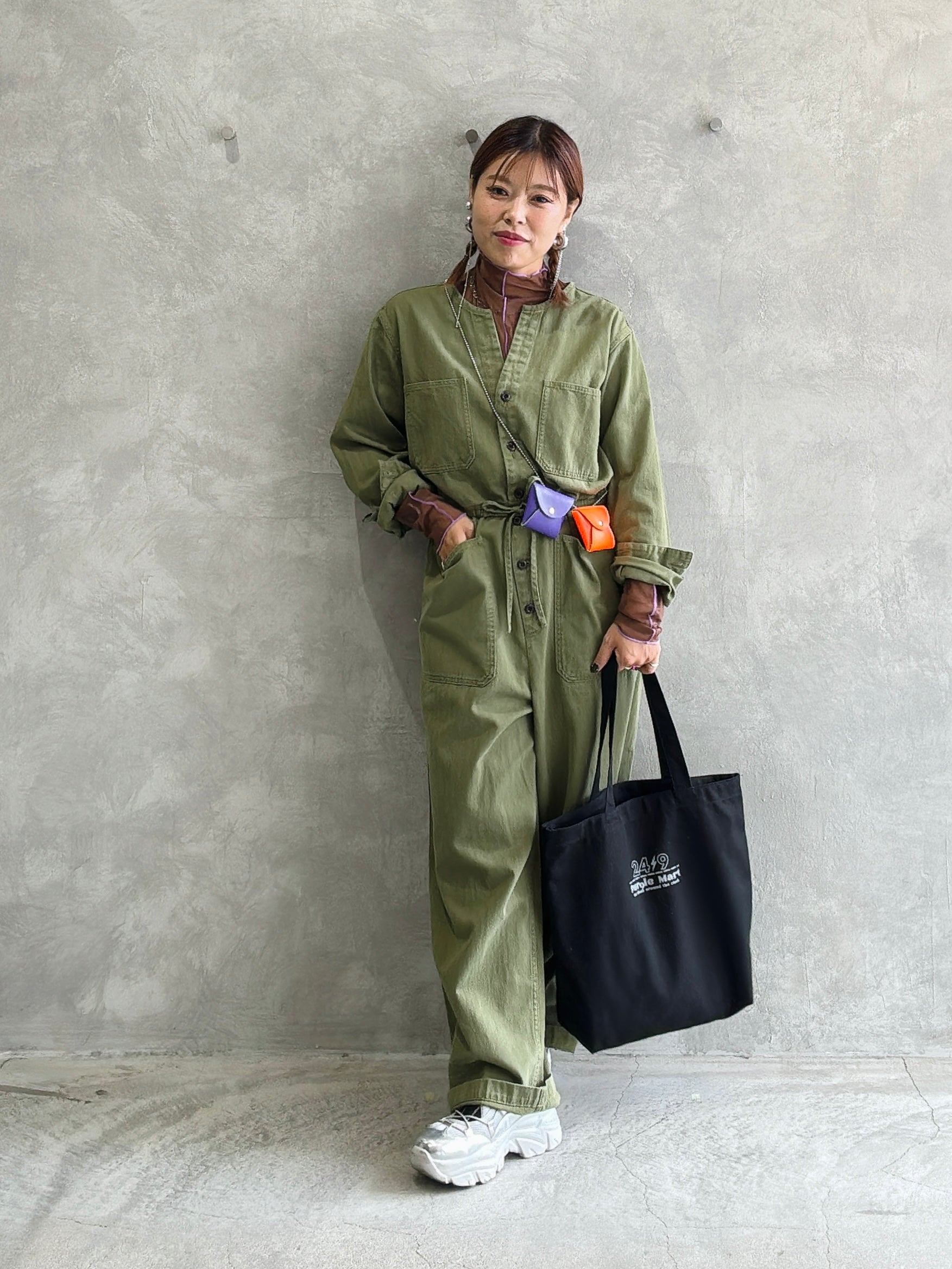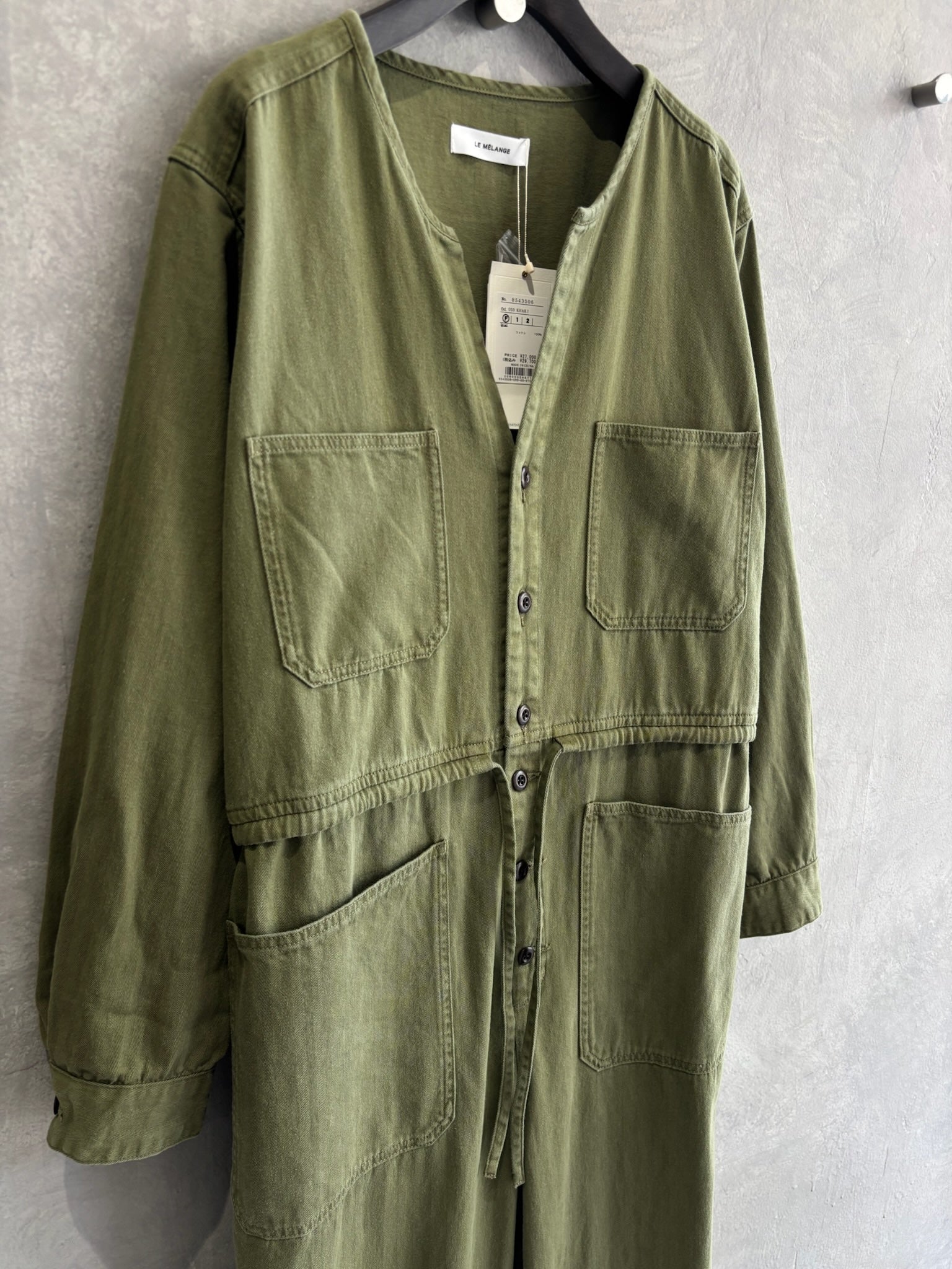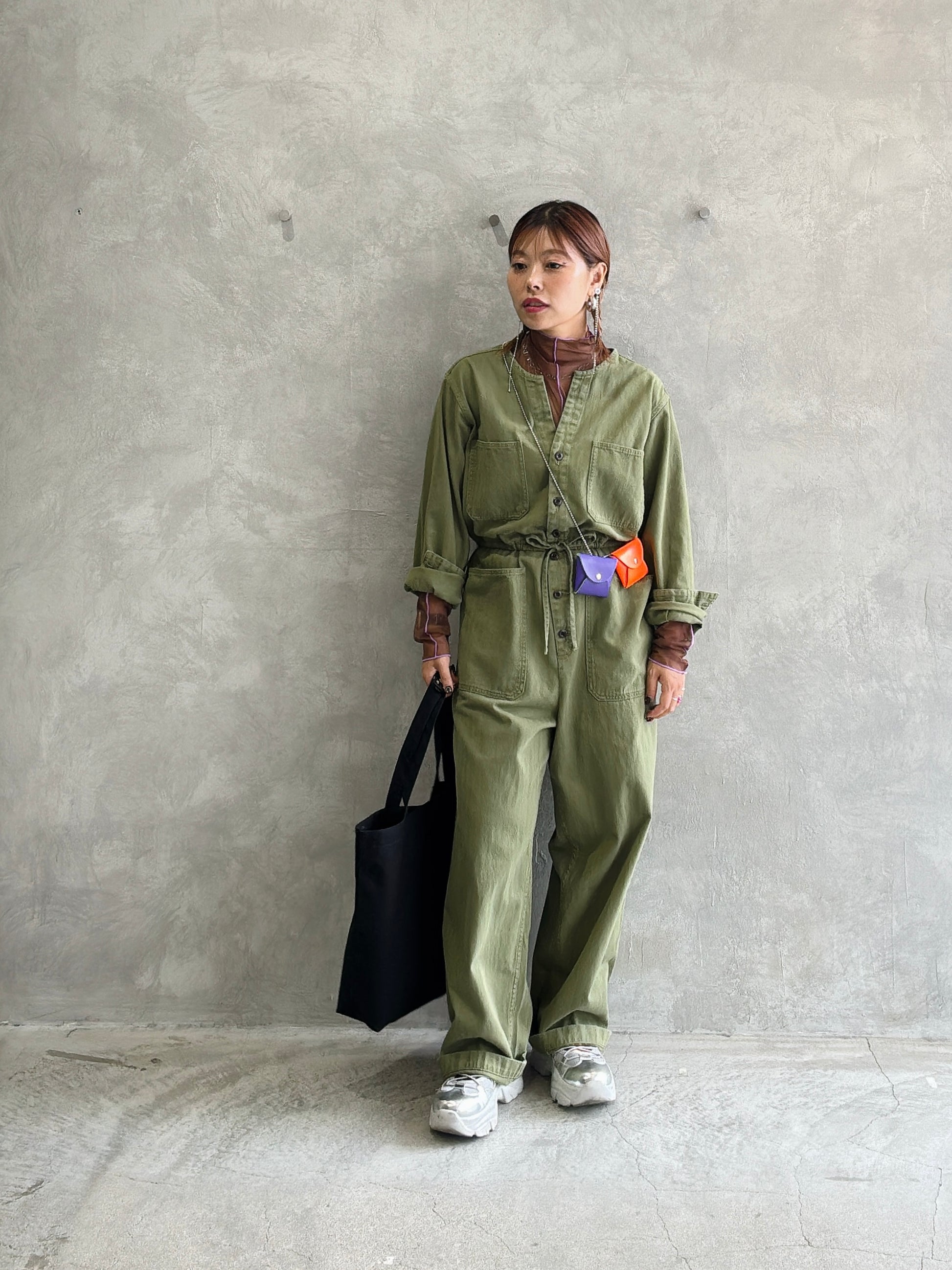 着用すると、身体の7割〜8割を覆うツナギ系のアイテムは細かなシルエットやパターン一つで全然雰囲気が変わるんですが、このツナギは細部にまでこだわってデザインされているので、ツナギ好きさんには間違いなく刺さるアイテム。そしてツナギはなんかカジュアルすぎて苦手・・・という方にはチャレンジするならこのツナギがおすすめです。