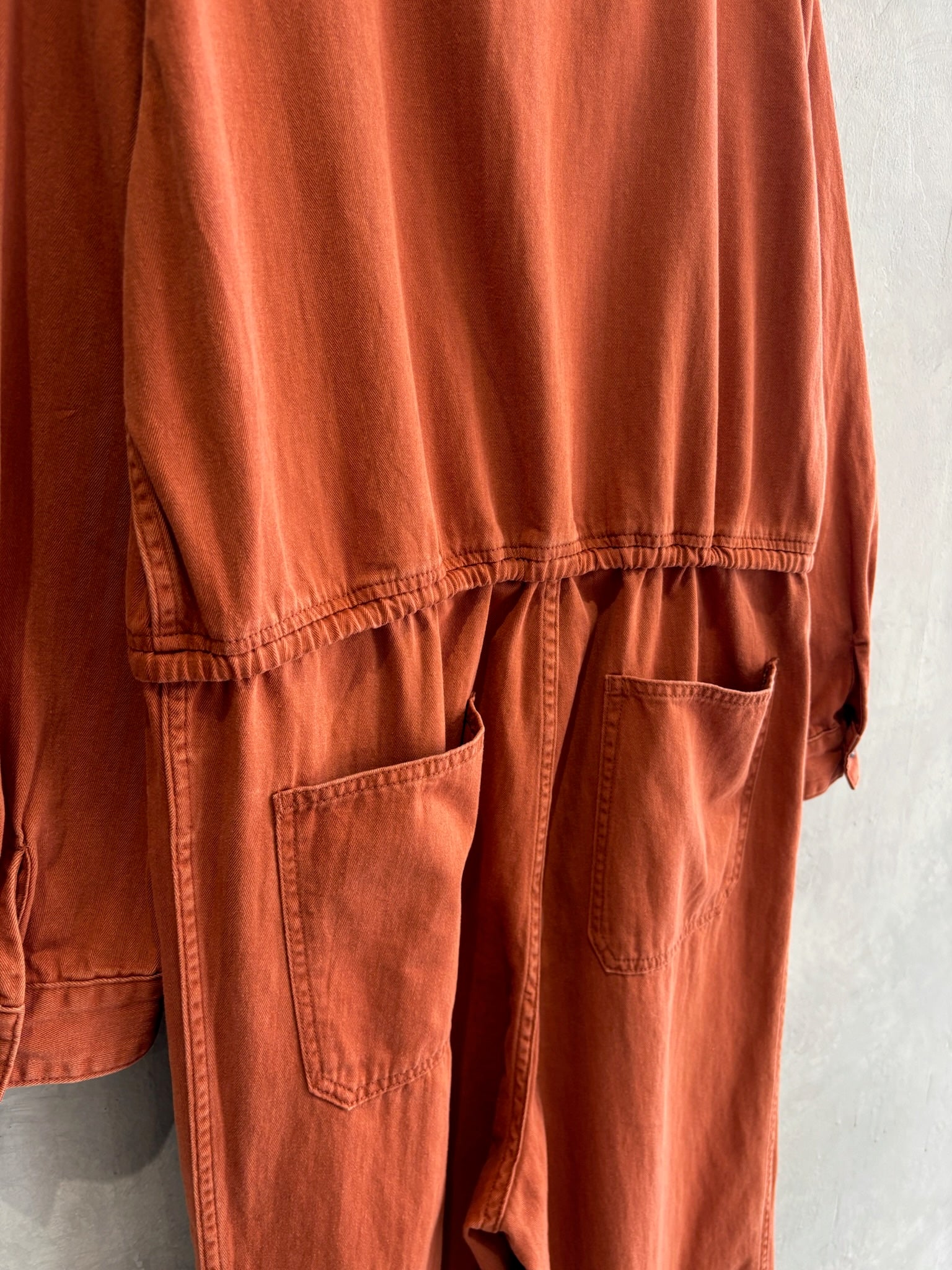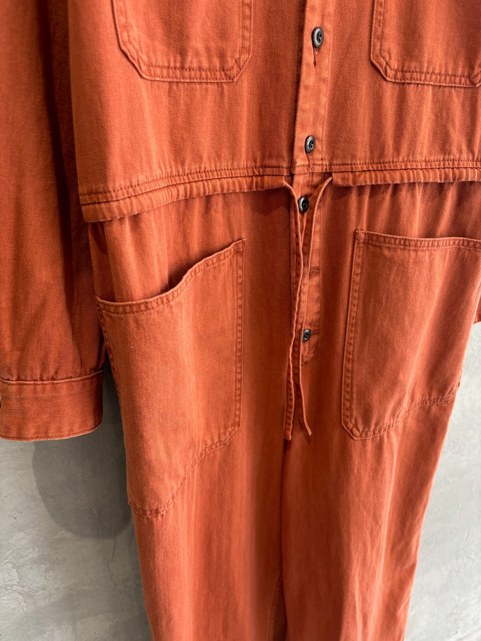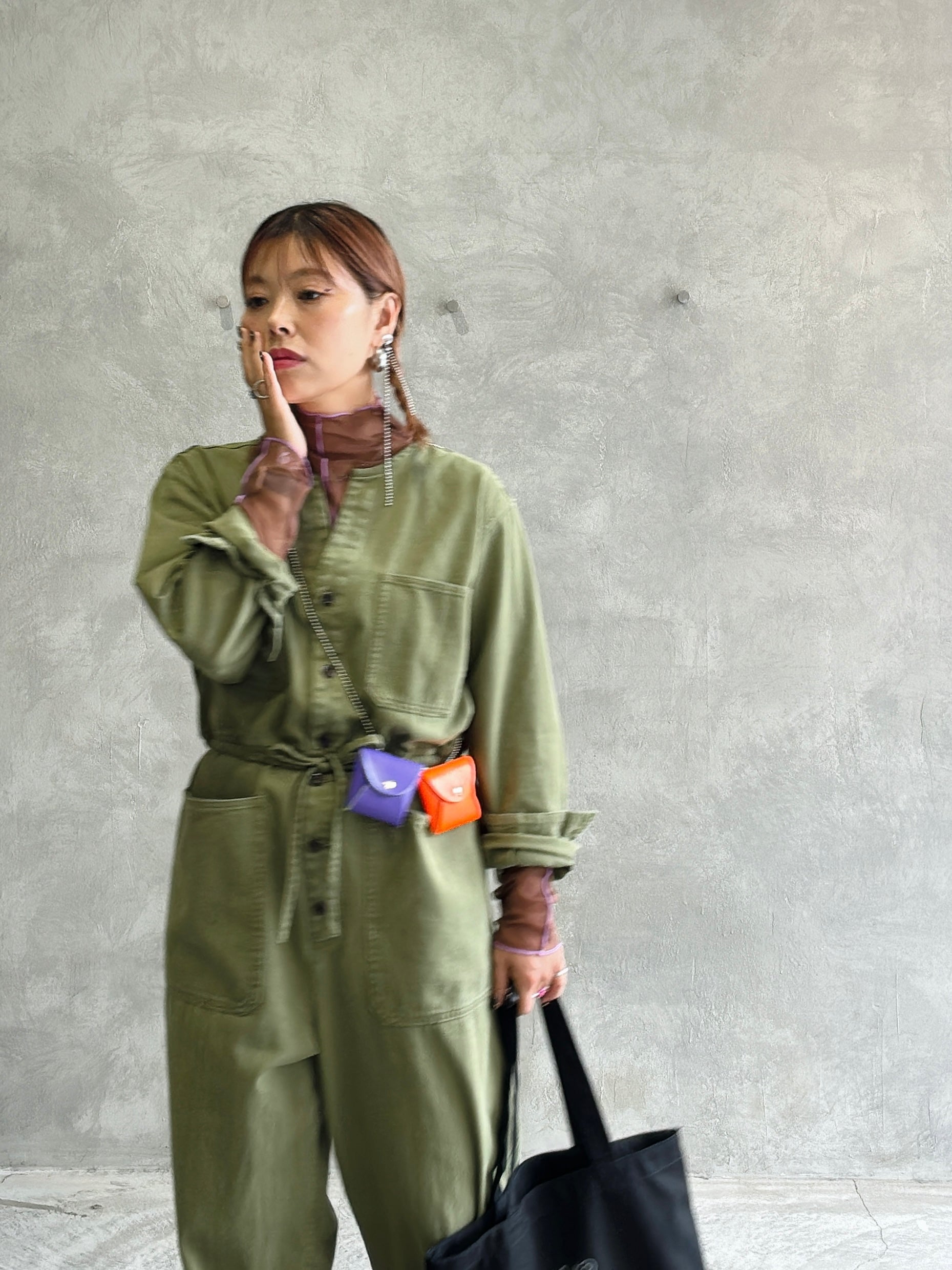 着用すると、身体の7割〜8割を覆うツナギ系のアイテムは細かなシルエットやパターン一つで全然雰囲気が変わるんですが、このツナギは細部にまでこだわってデザインされているので、ツナギ好きさんには間違いなく刺さるアイテム。そしてツナギはなんかカジュアルすぎて苦手・・・という方にはチャレンジするならこのツナギがおすすめです。