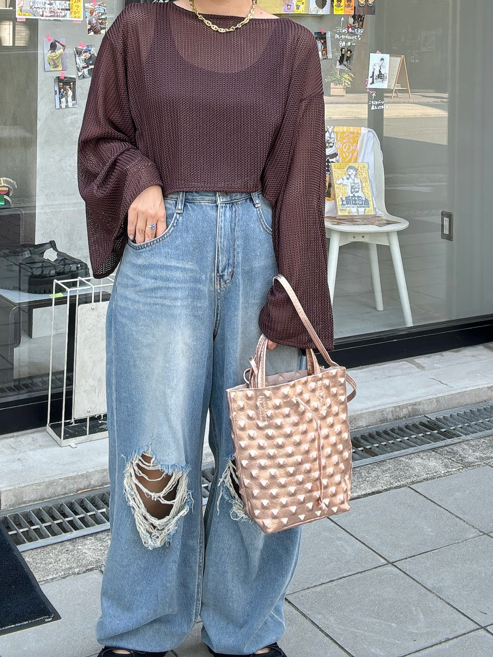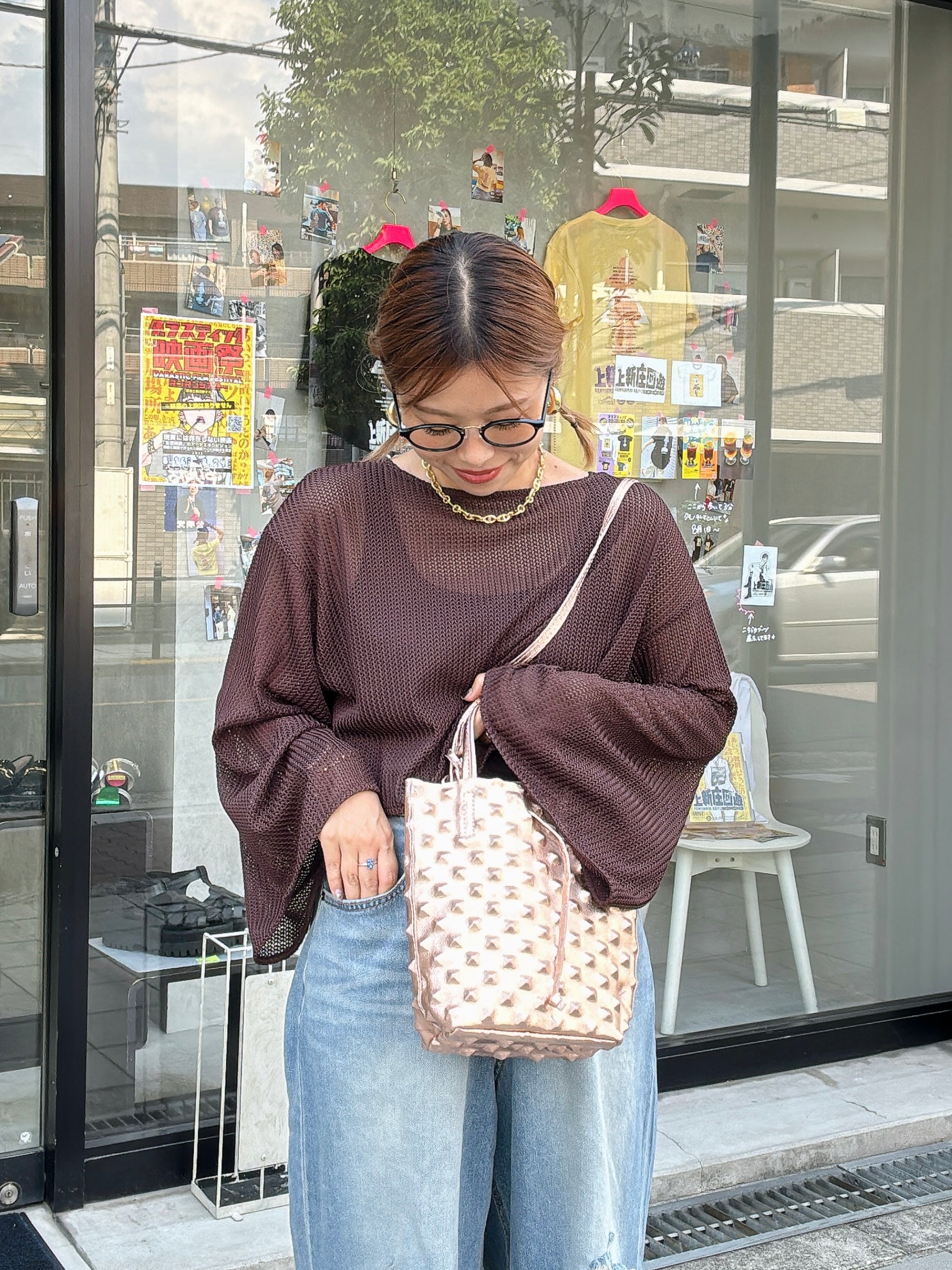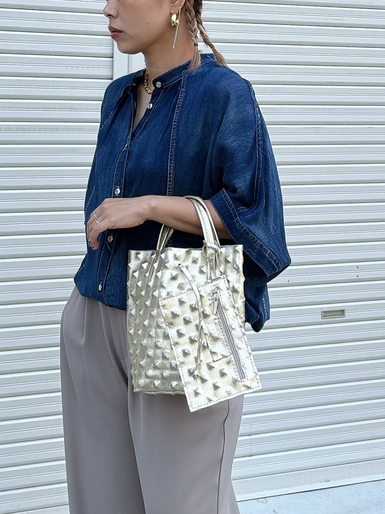 色によって凹凸の見え方が違っていて、ひとつひとつ表情があるのもこのバッグの面白さ。スタッズの立体感がはっきり出ているものもあれば、光の加減でさりげなく感じられるものもあって、それぞれのカラーごとに楽しんでいただけると思います。