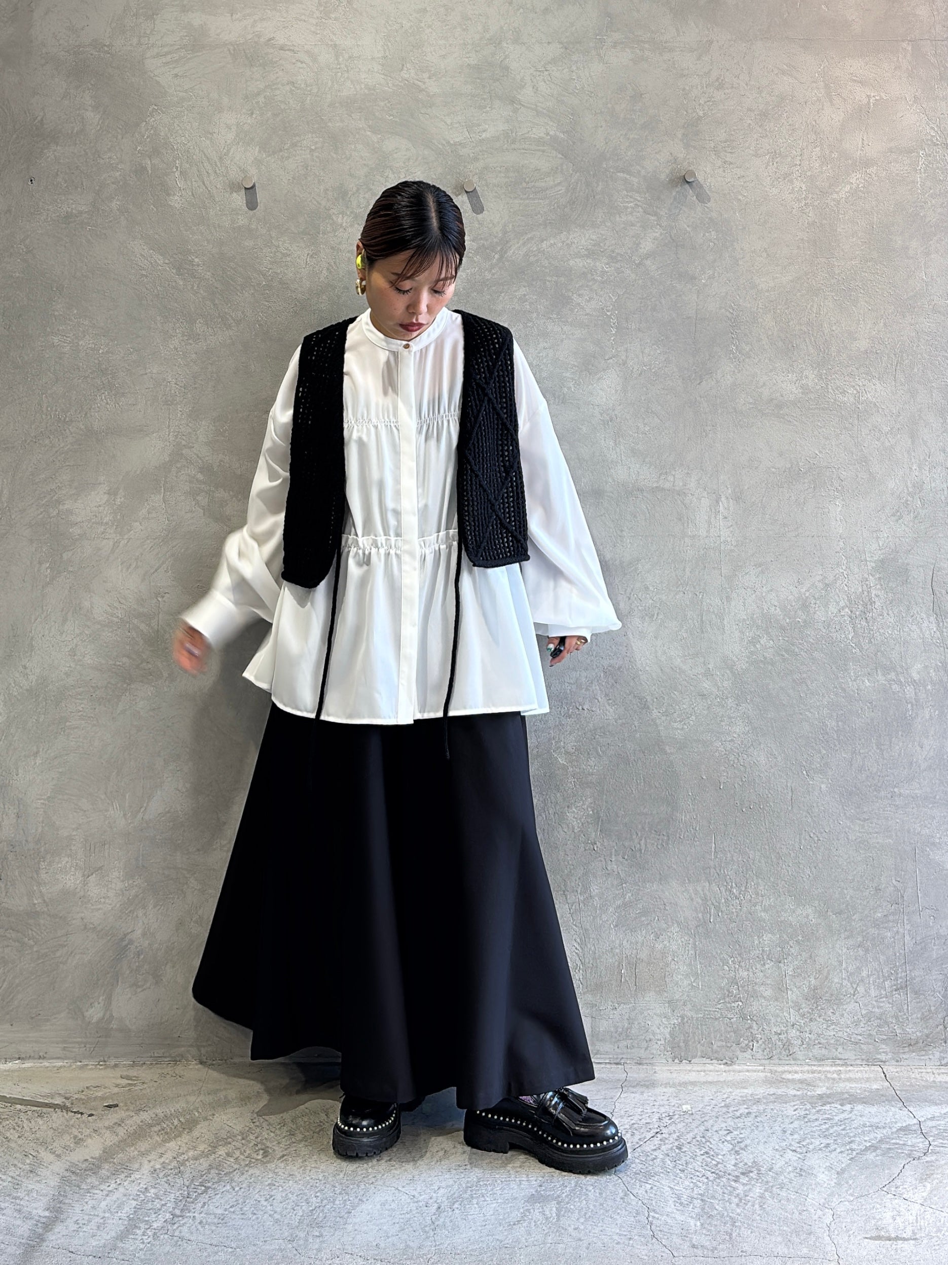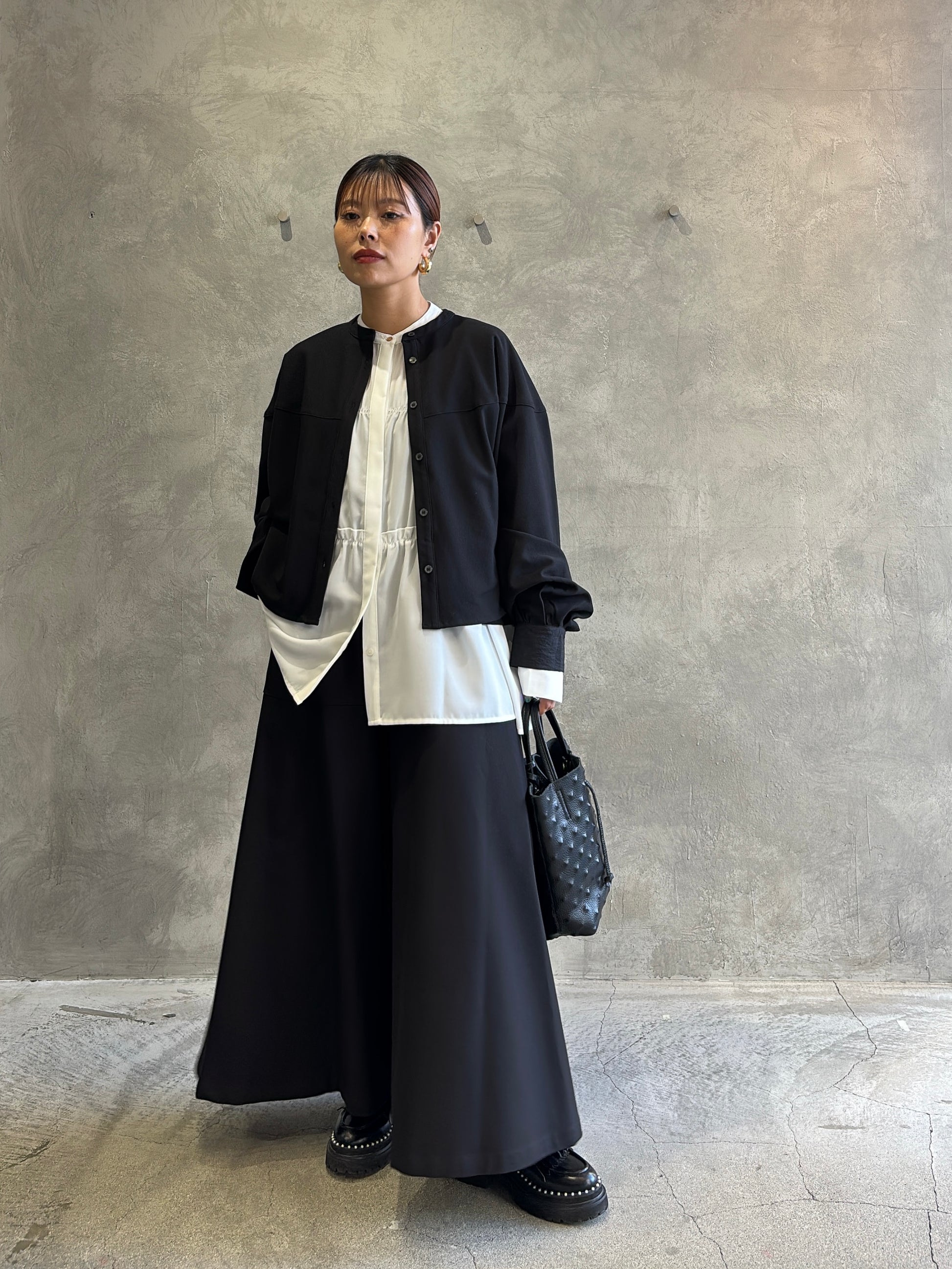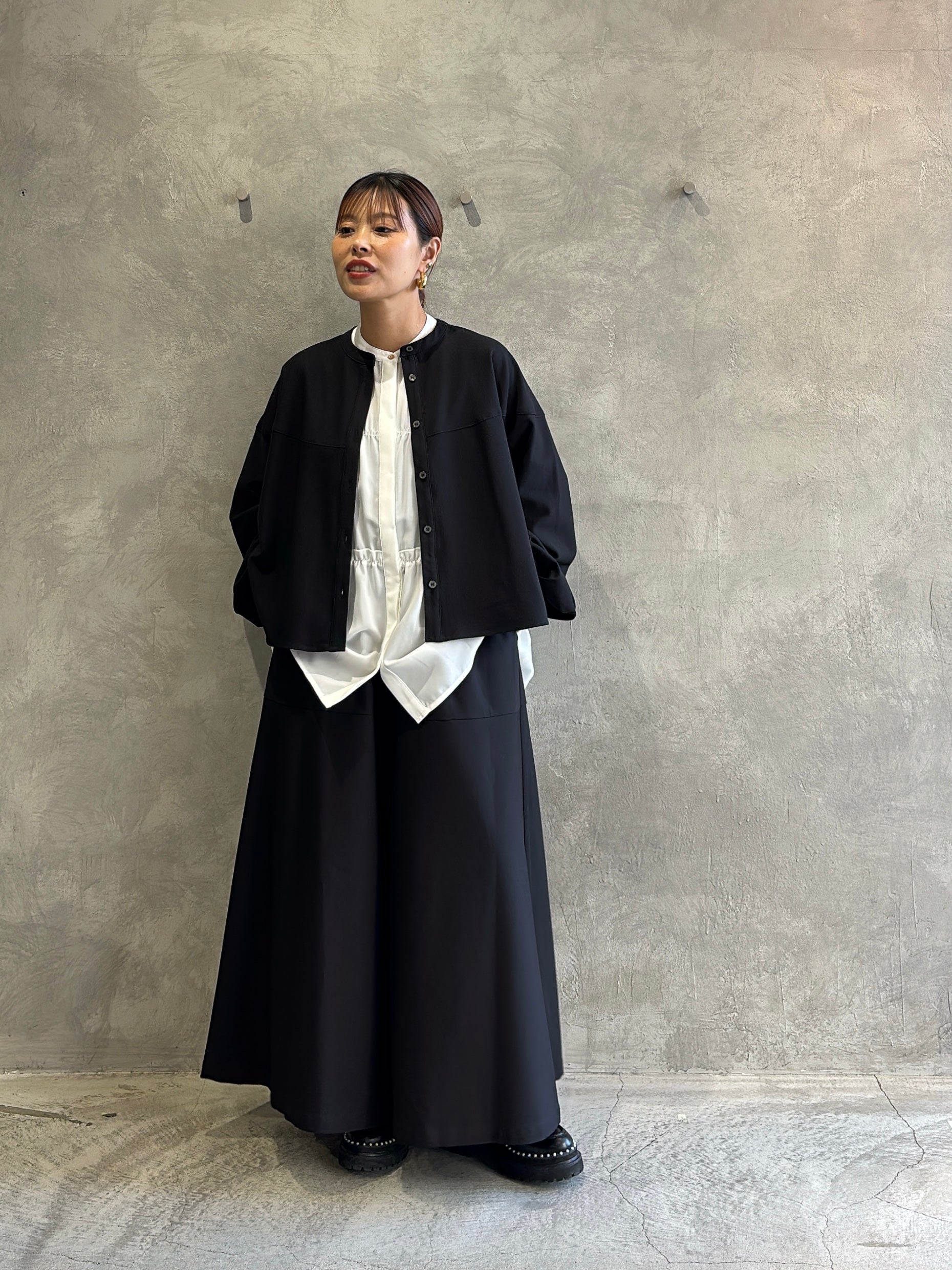 ショート丈トップスや、コンパクトなニット、さらにはティアードブラウスとの相性も◎。