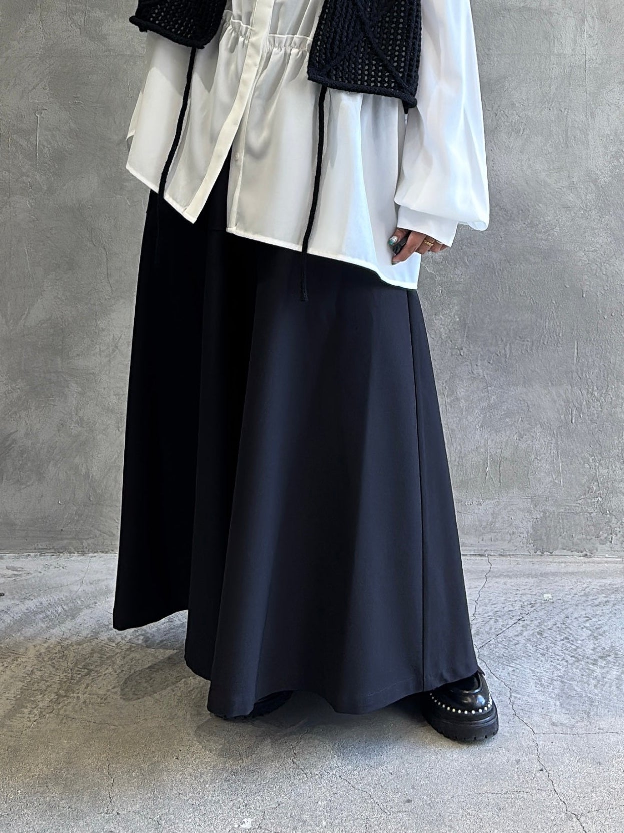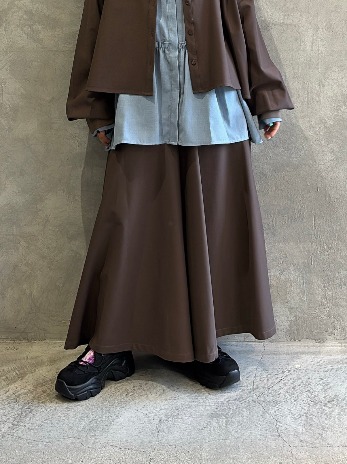 シルエットはガウチョパンツというよりは、もはやAラインスカートのよう。
