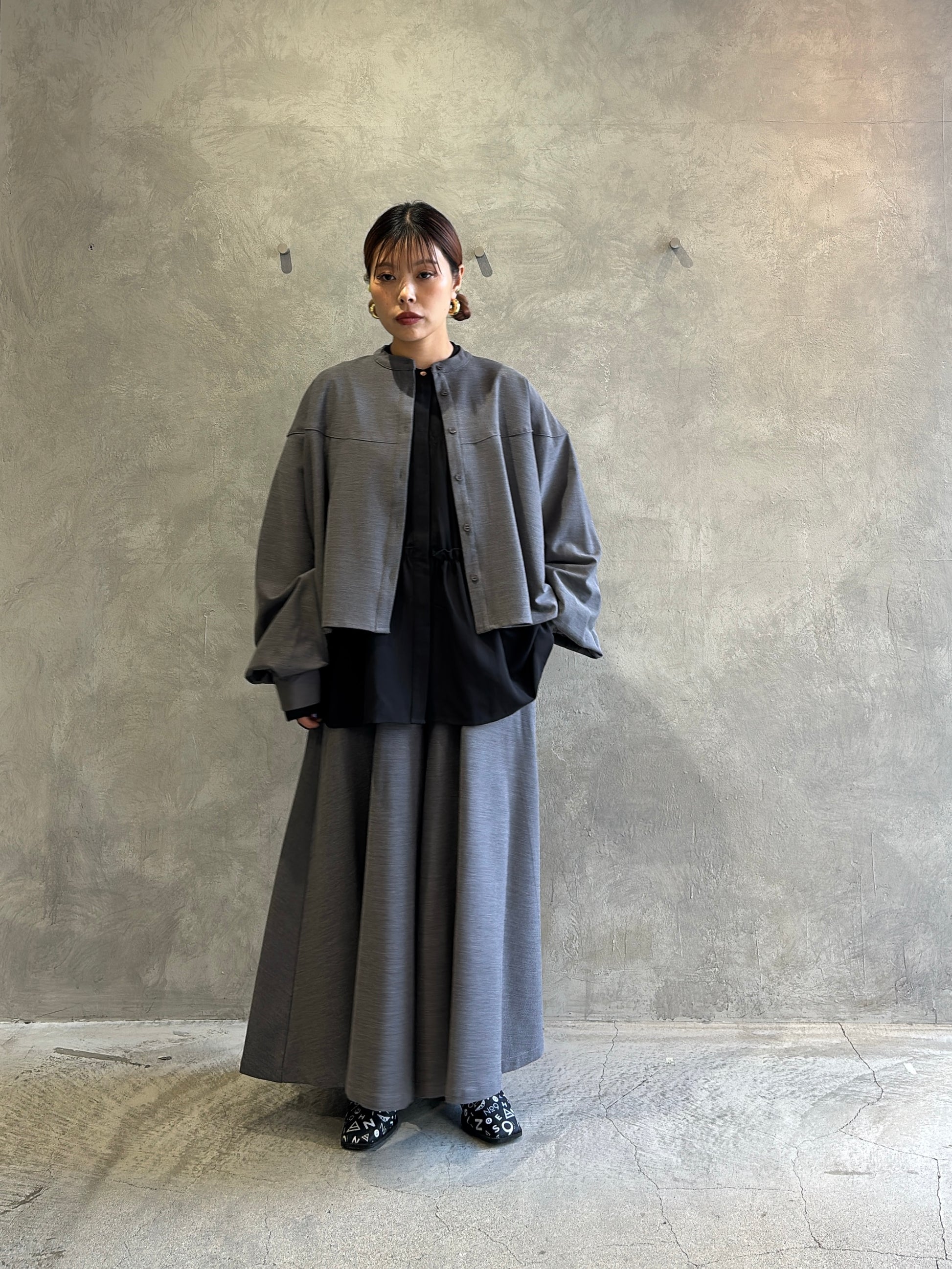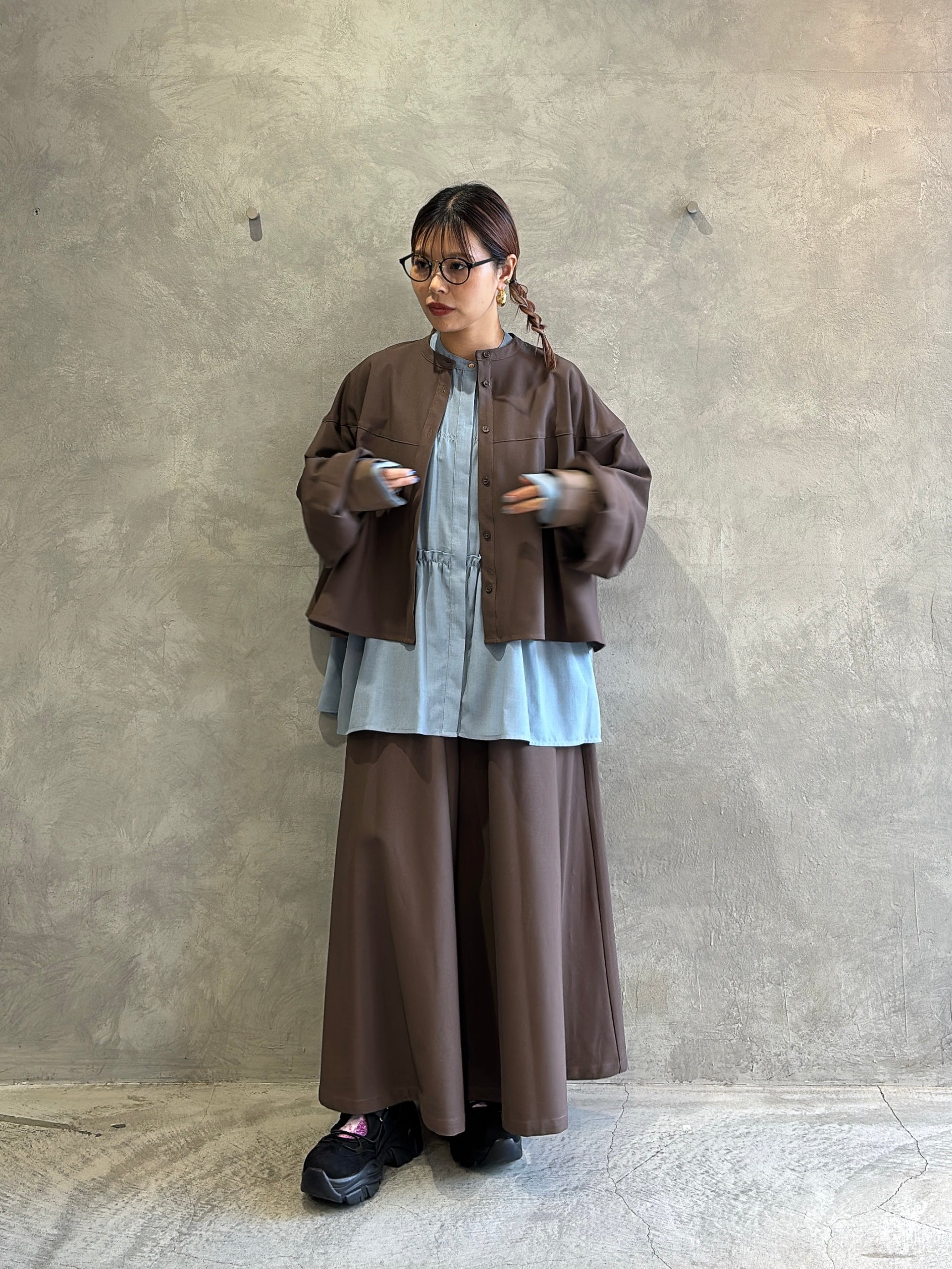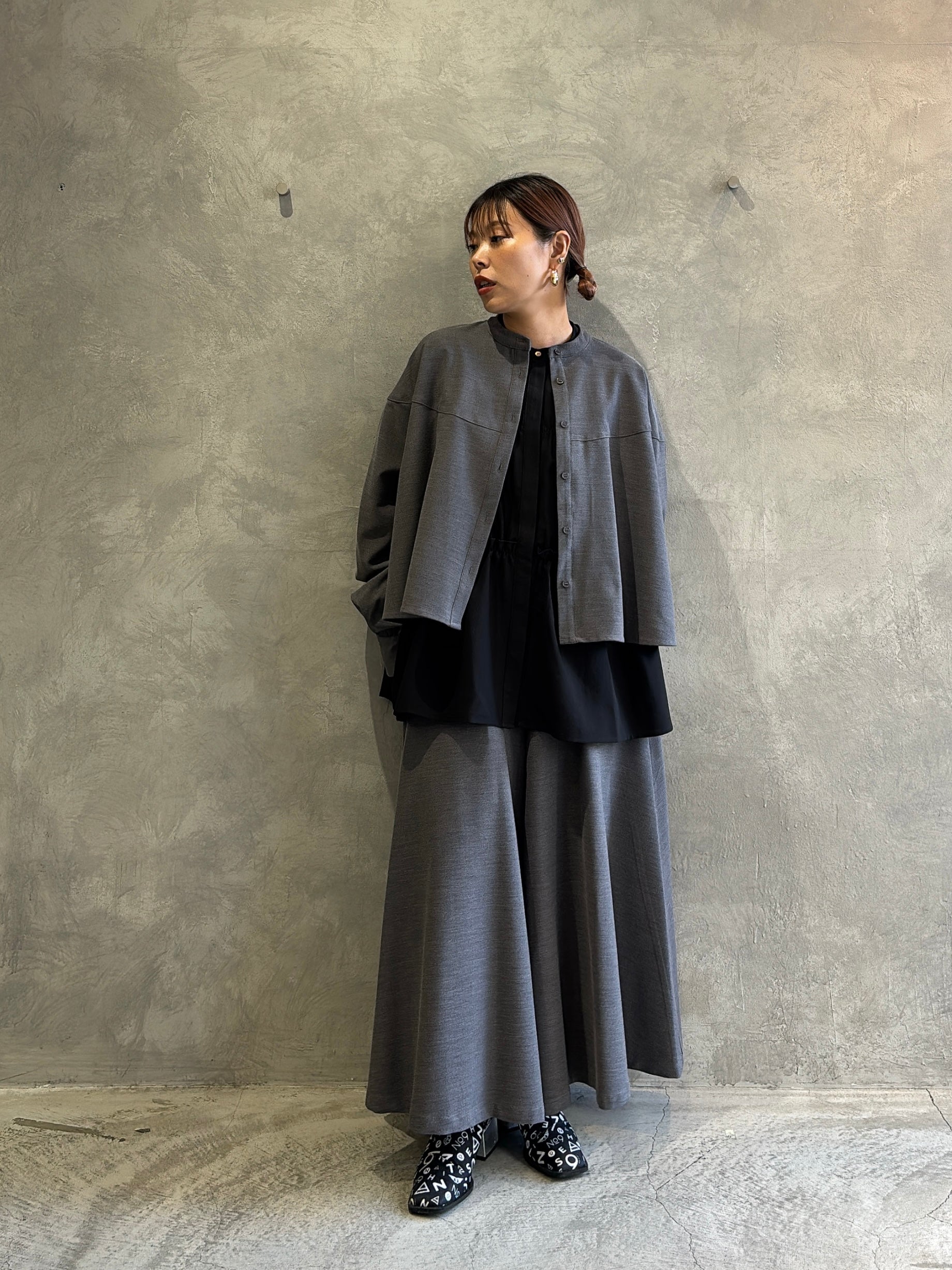 今回のCYAN TOKYOの展示会で、ティアードブラウスに並ぶほど心をつかまれたのがこのガウチョパンツ。ヒラミ的にも“かなりのヒットアイテム”で、色違いで揃えたくなるくらいの推しパンツです。