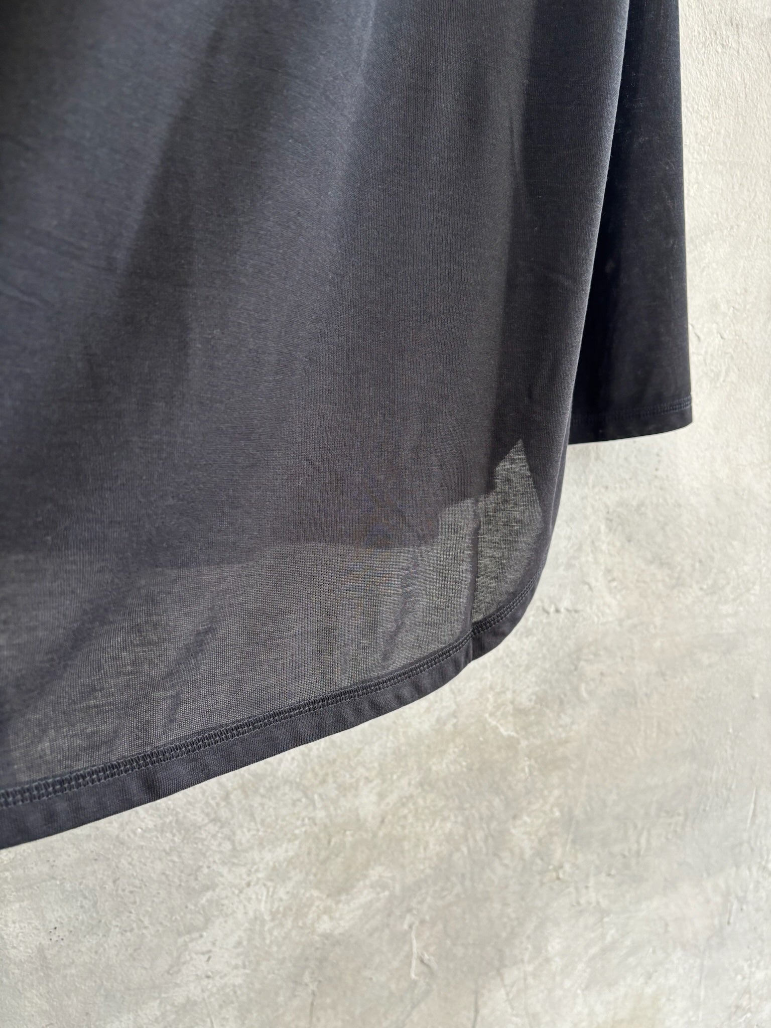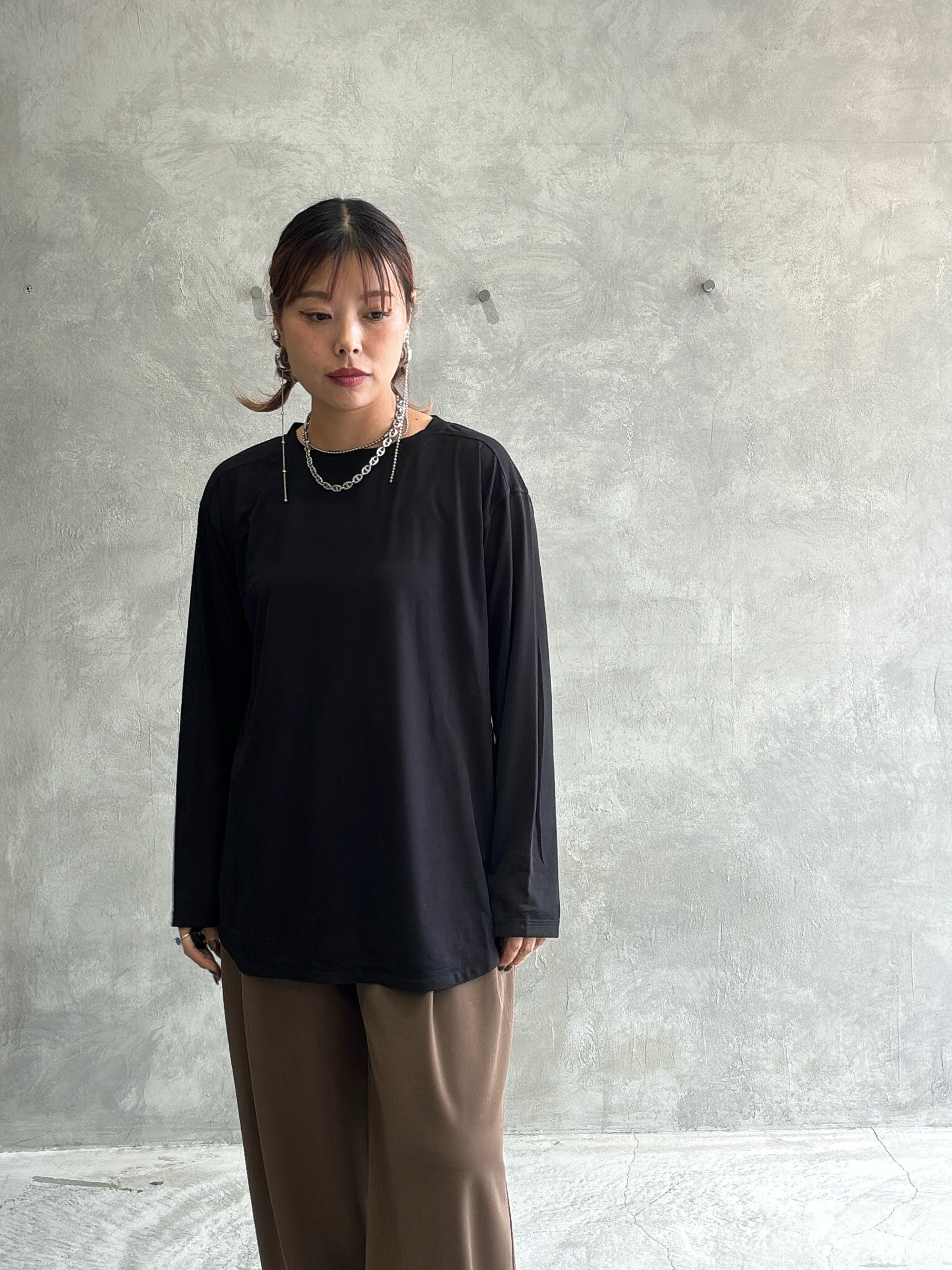 一見シンプルな薄手のロンTですが、着回し力がとにかく抜群。1枚でトップスとして着ても可愛いですし、ベストやカーディガン、ジャケットなどのインナーとしても活躍します。丈感が少し長めなので、「もう少し裾が欲しいな」というときに重ねて使うのも◎。