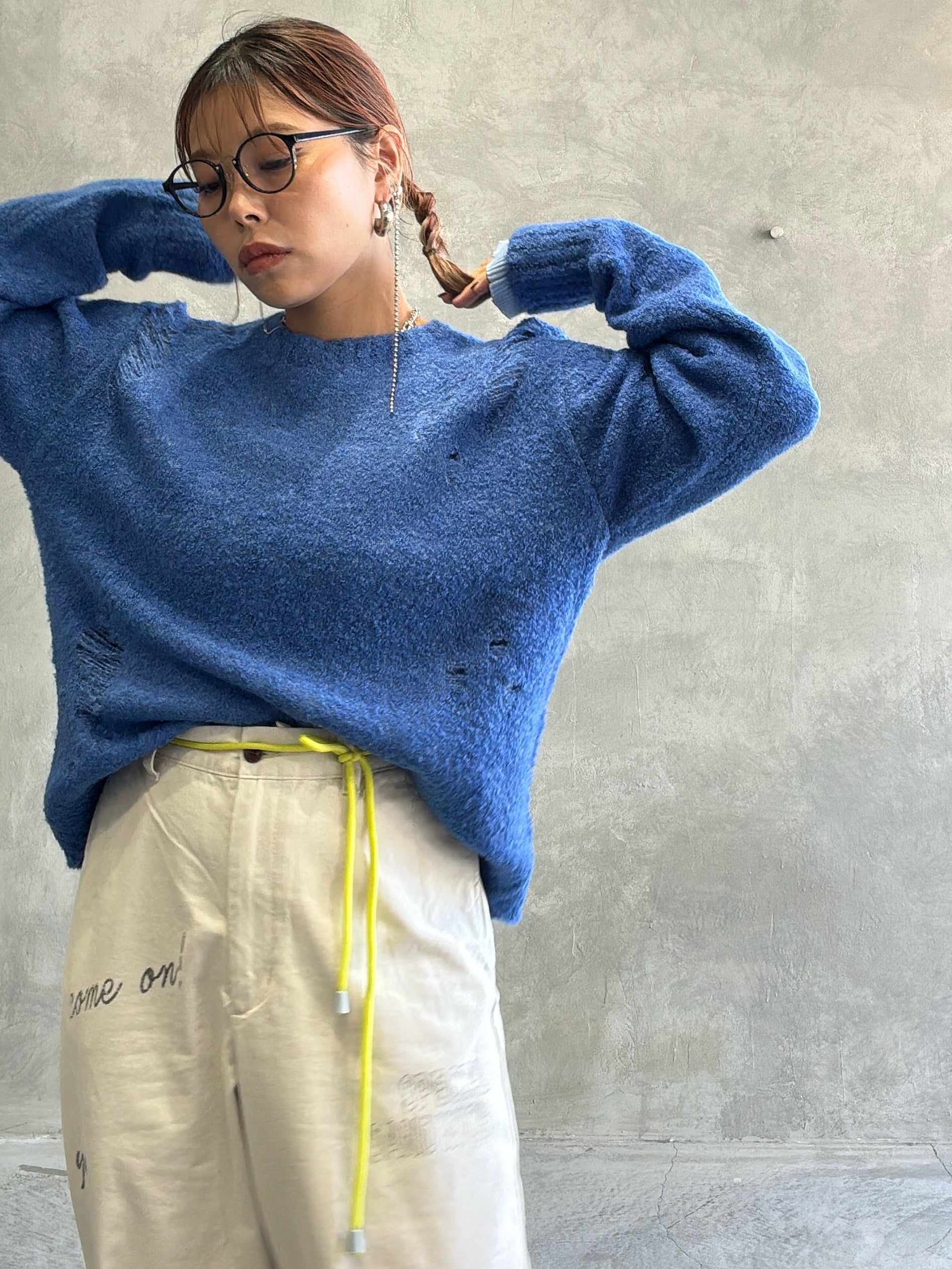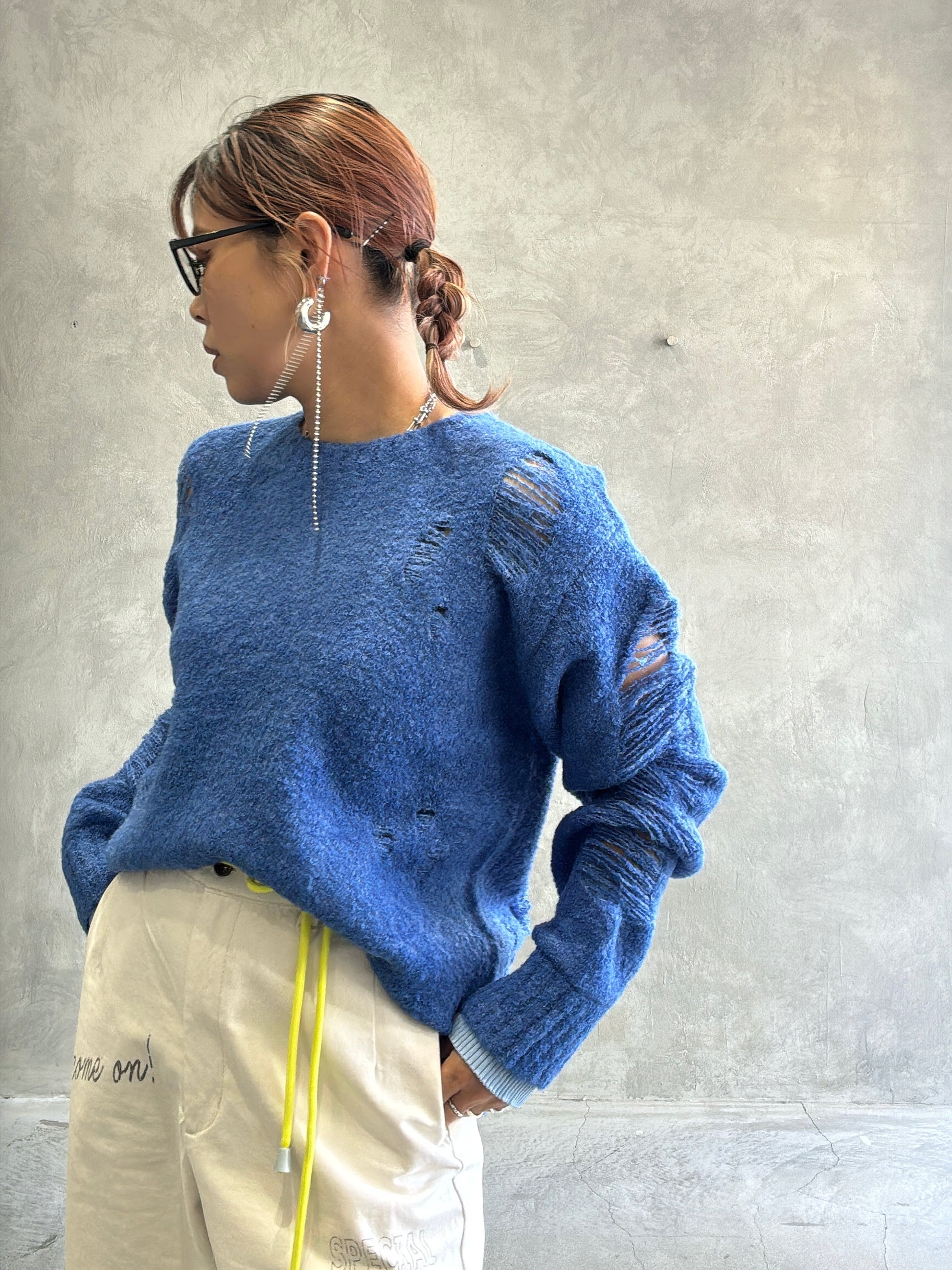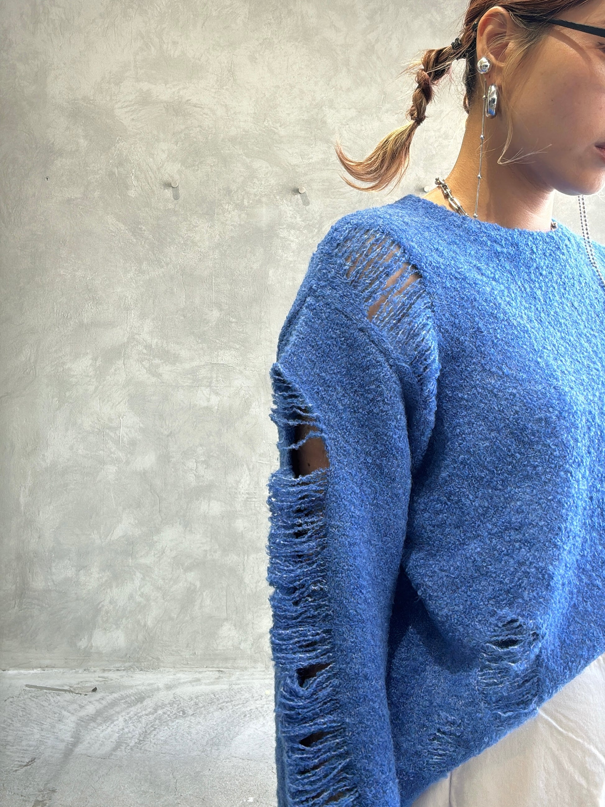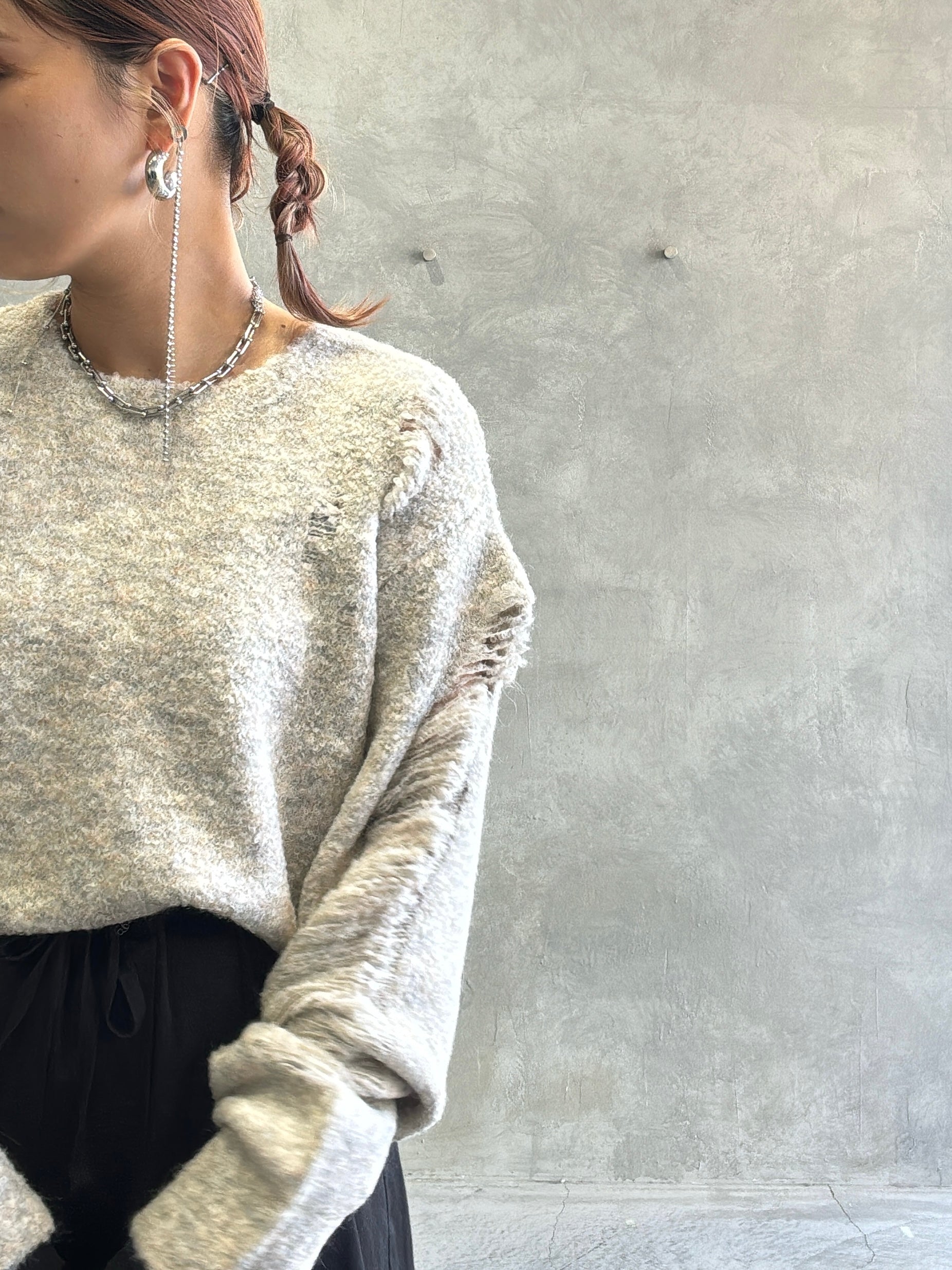 新しいジャンルの“上品なダメージニット”といった印象です。