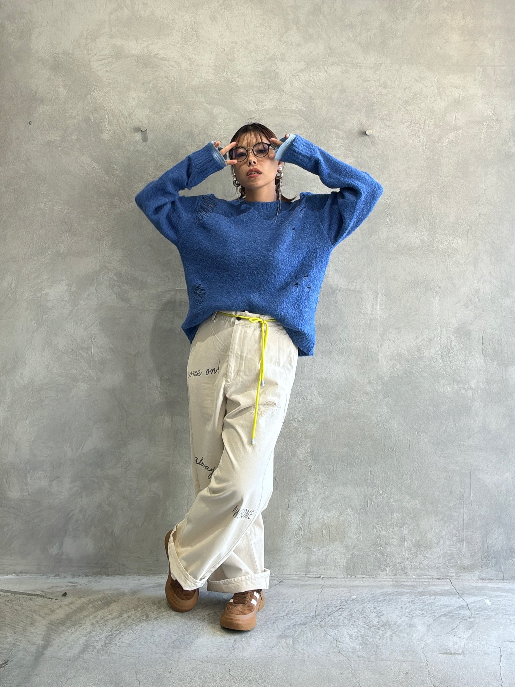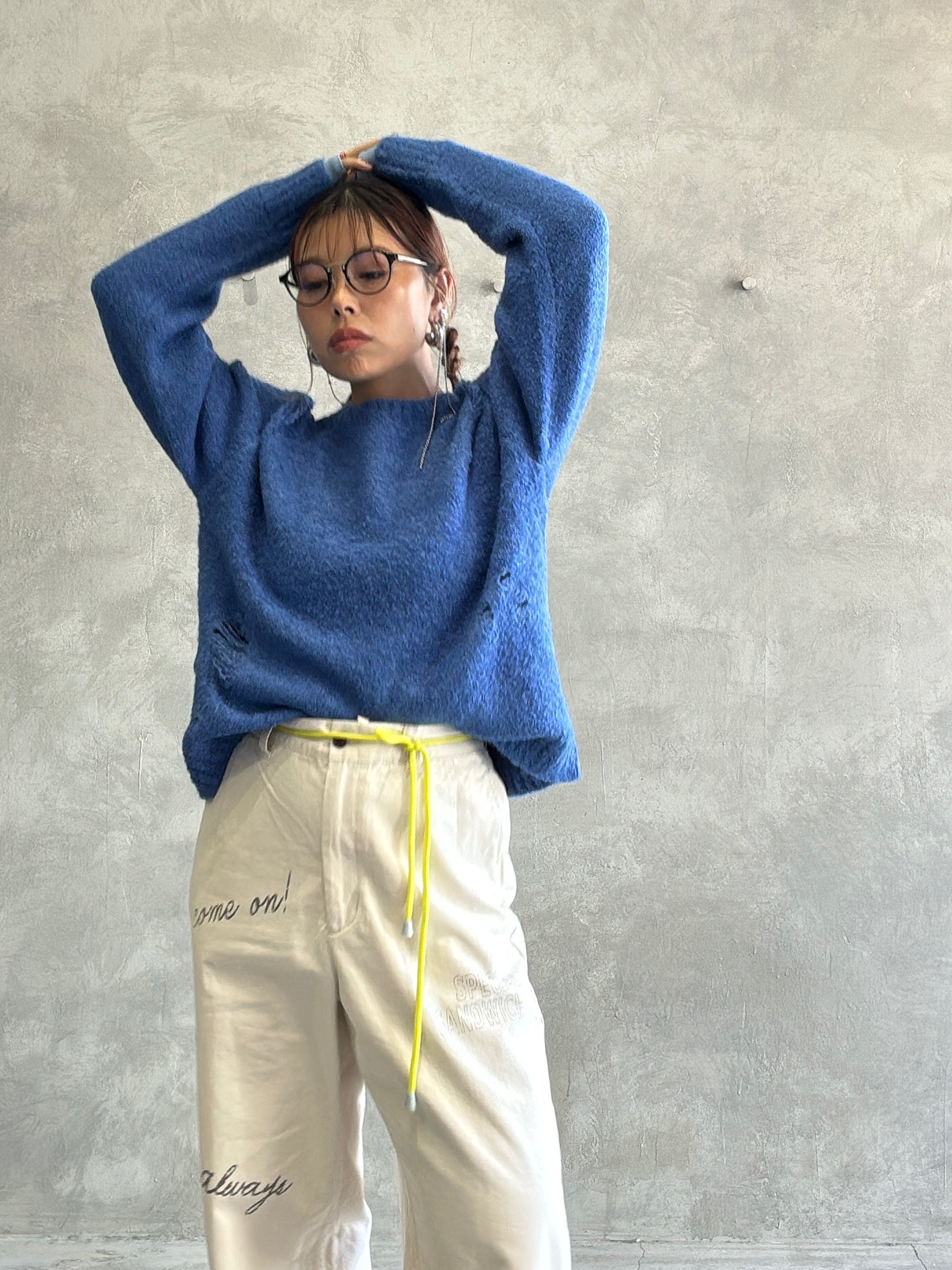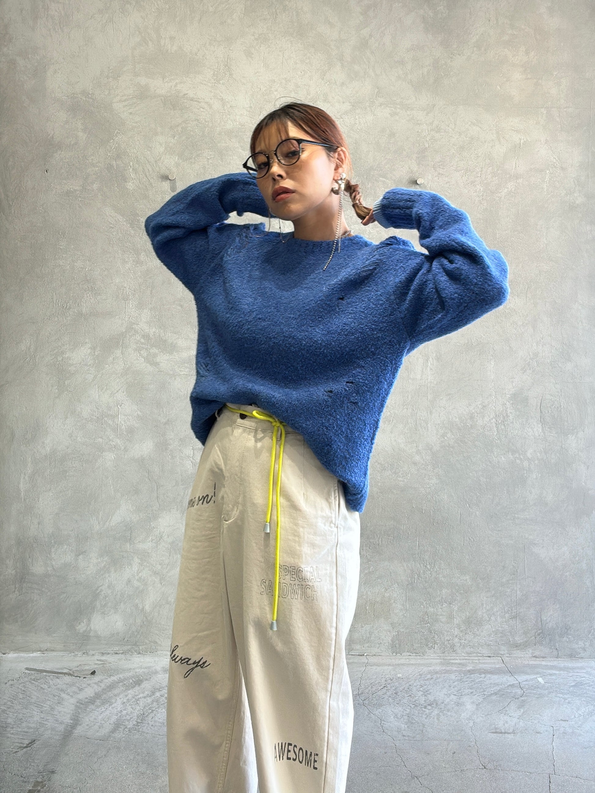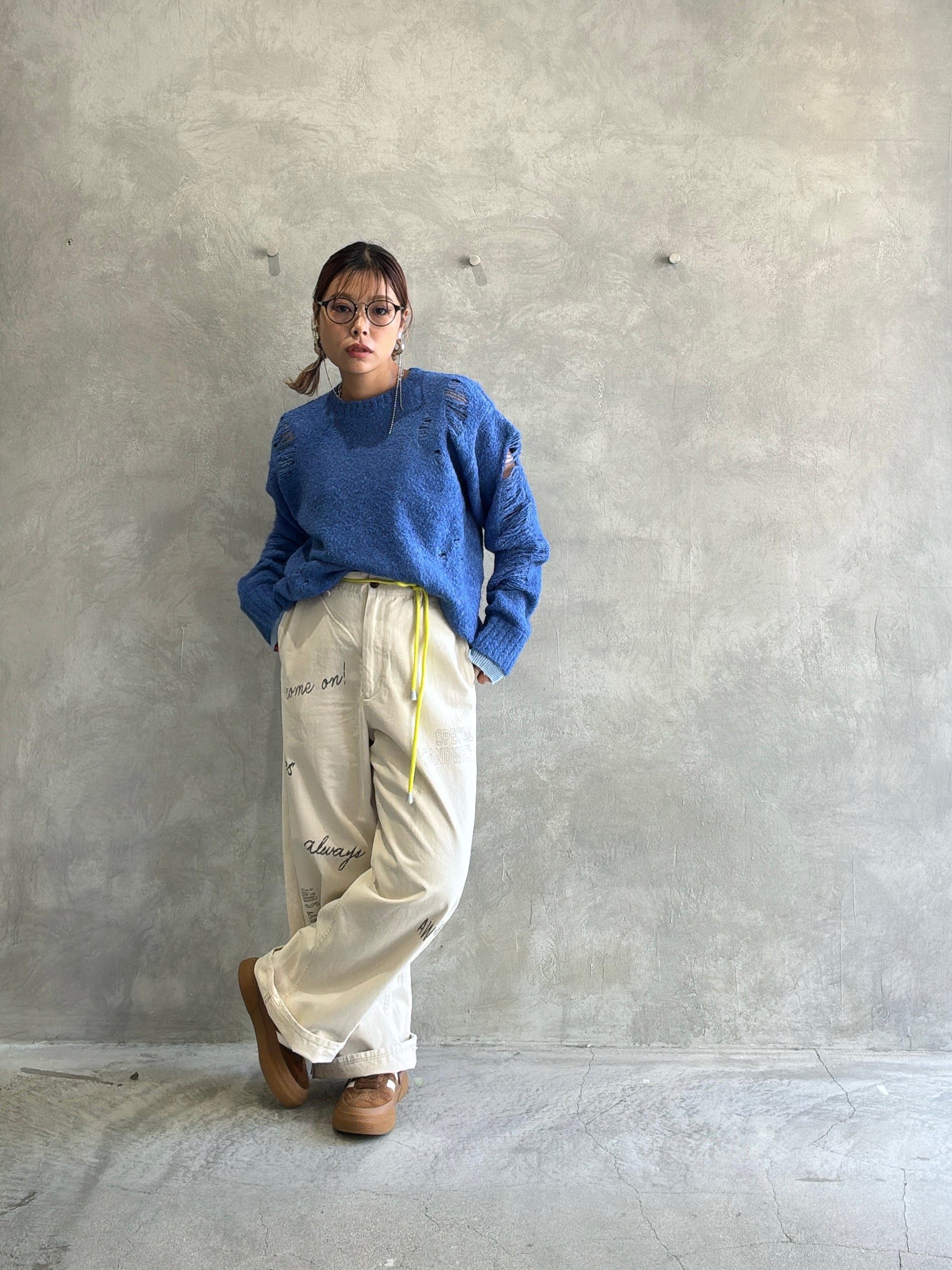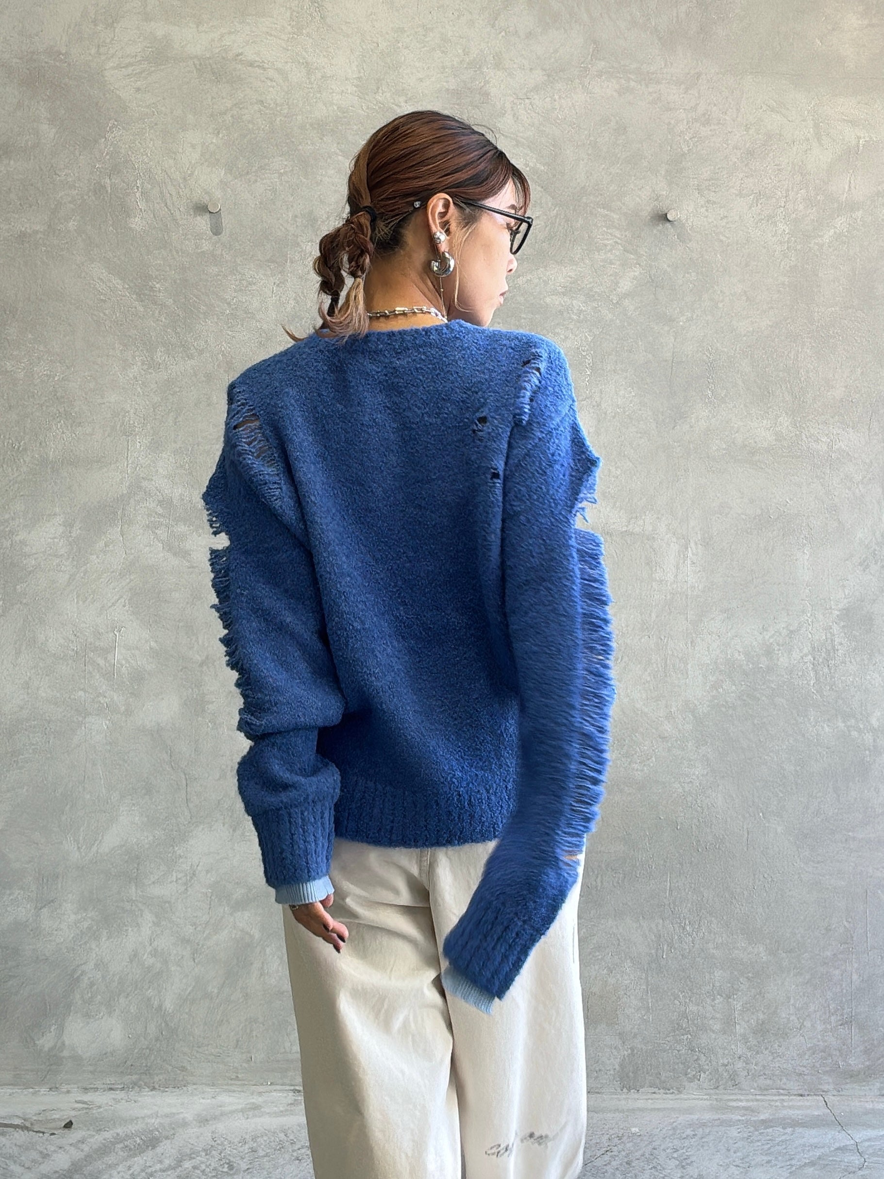 新しいジャンルの“上品なダメージニット”といった印象です。