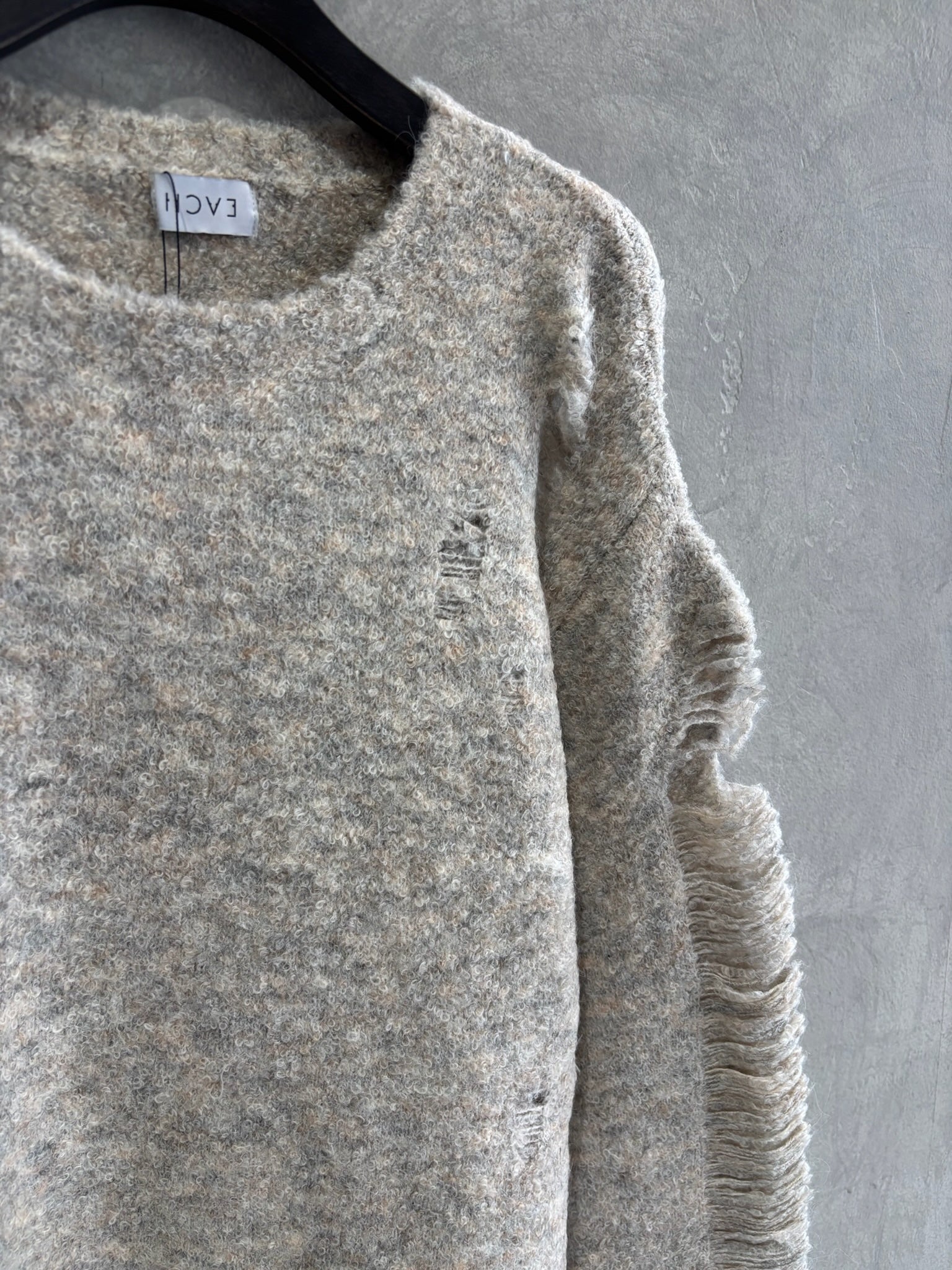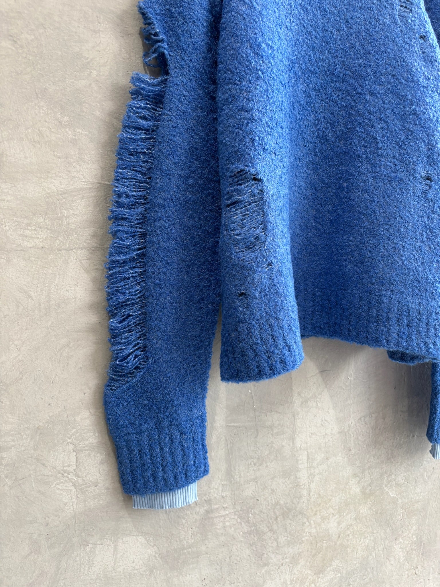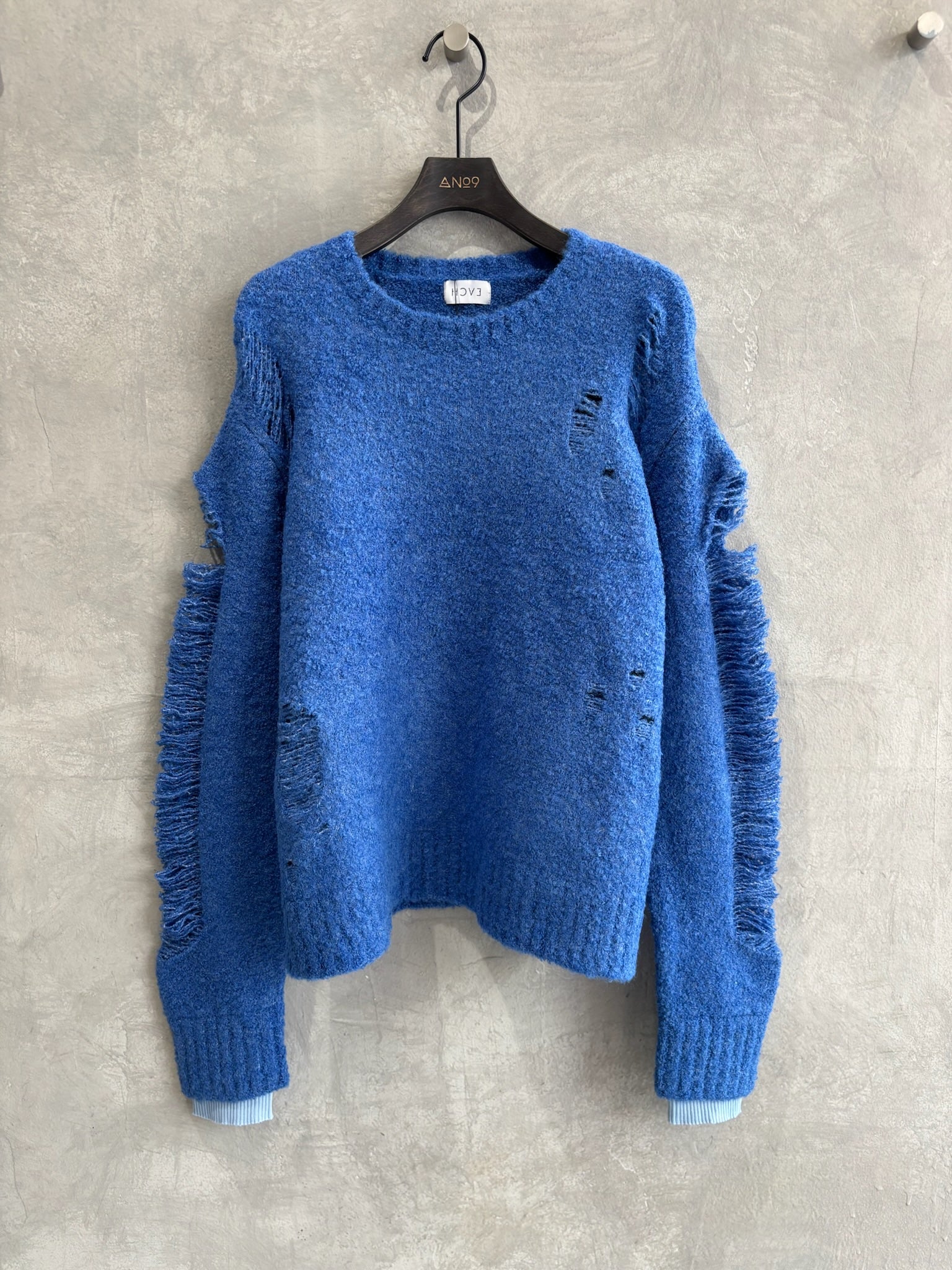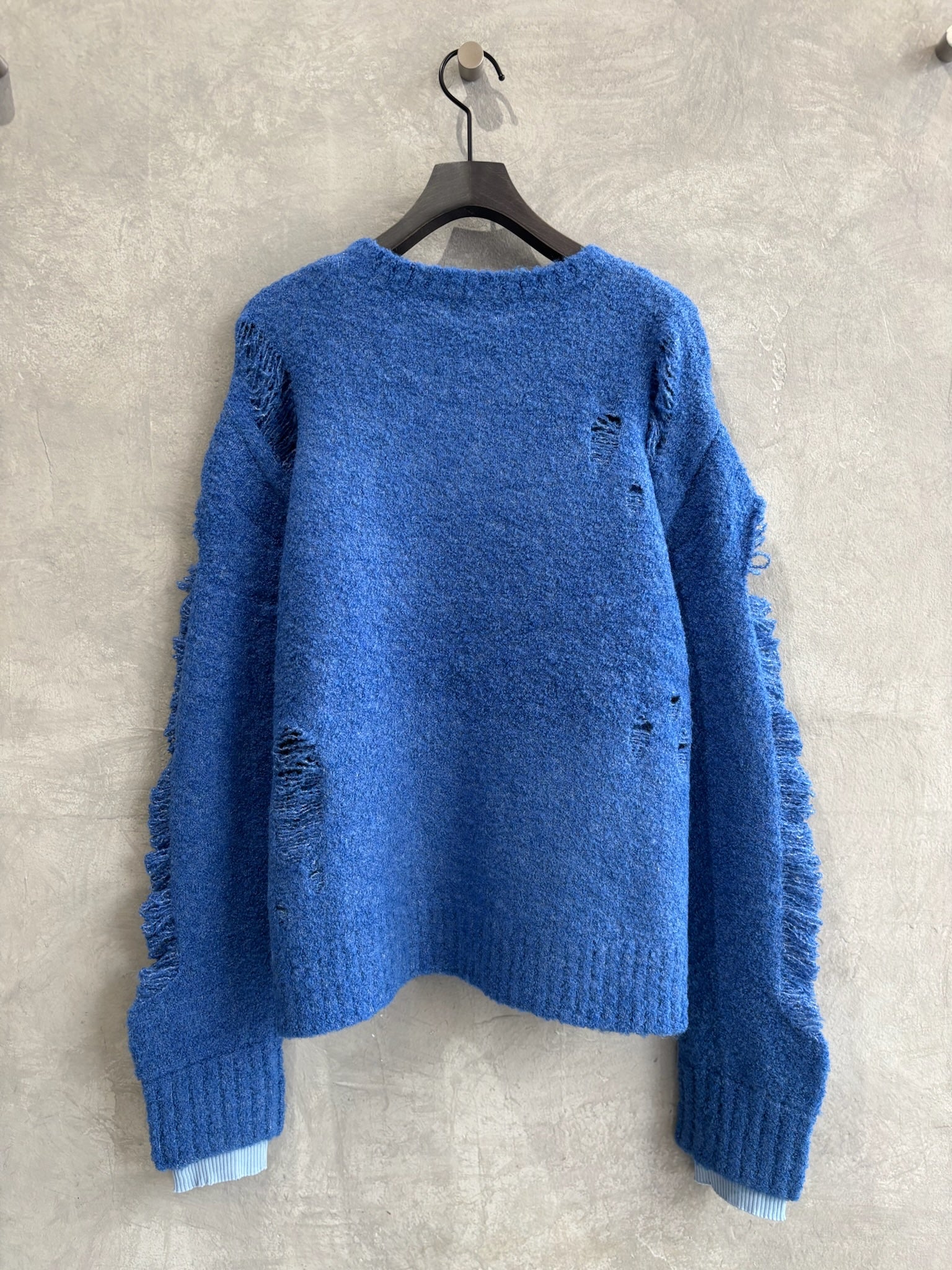 新しいジャンルの“上品なダメージニット”といった印象です。