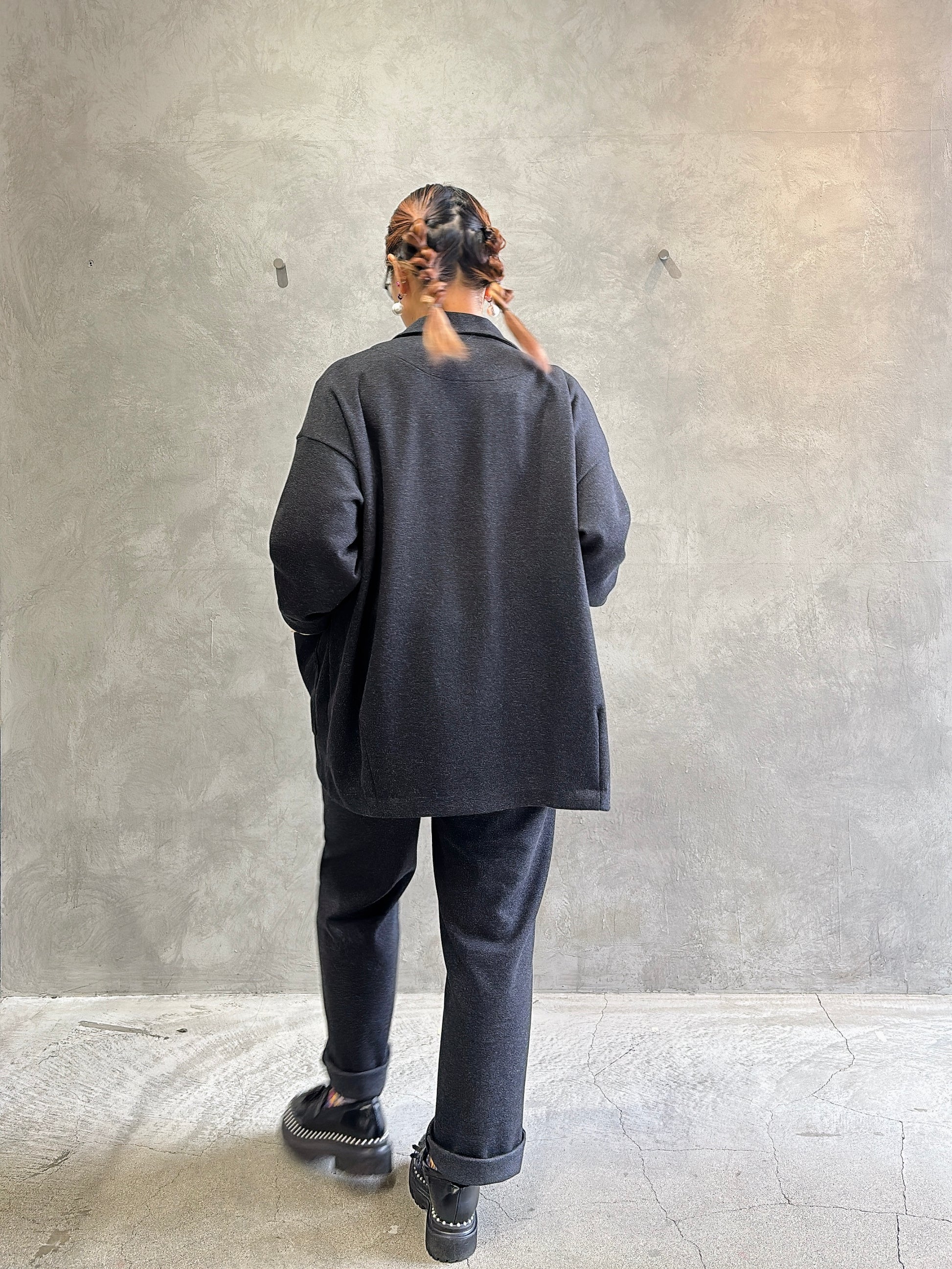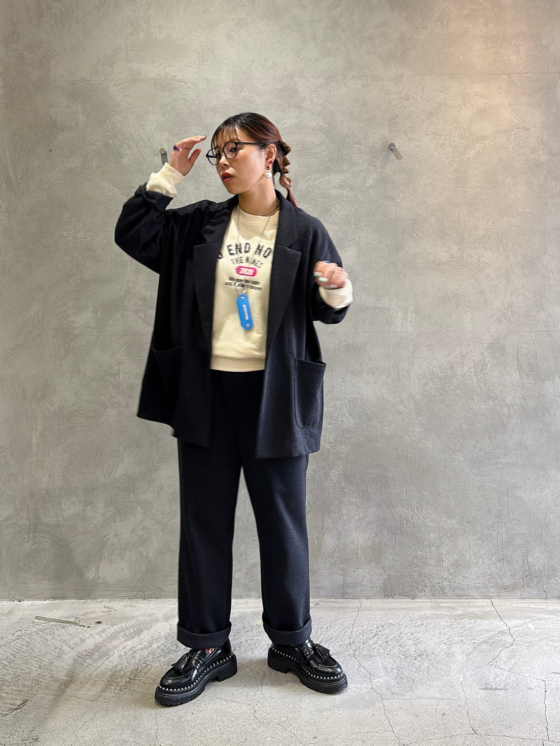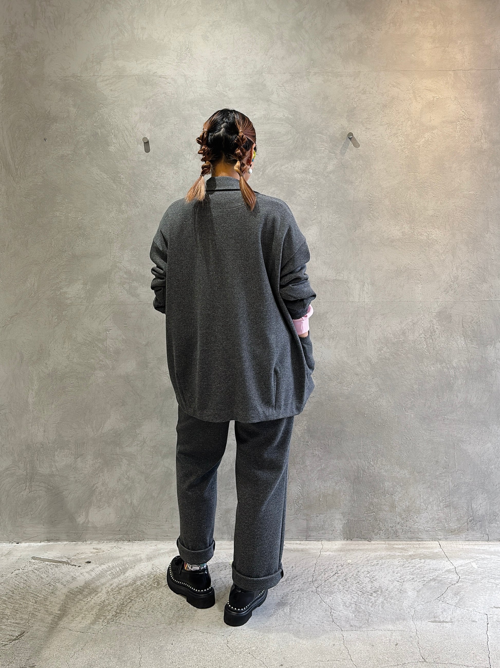 同素材のウールタックパンツと合わせて、中にはあえてスウェットを仕込むスタイリングがおすすめ!