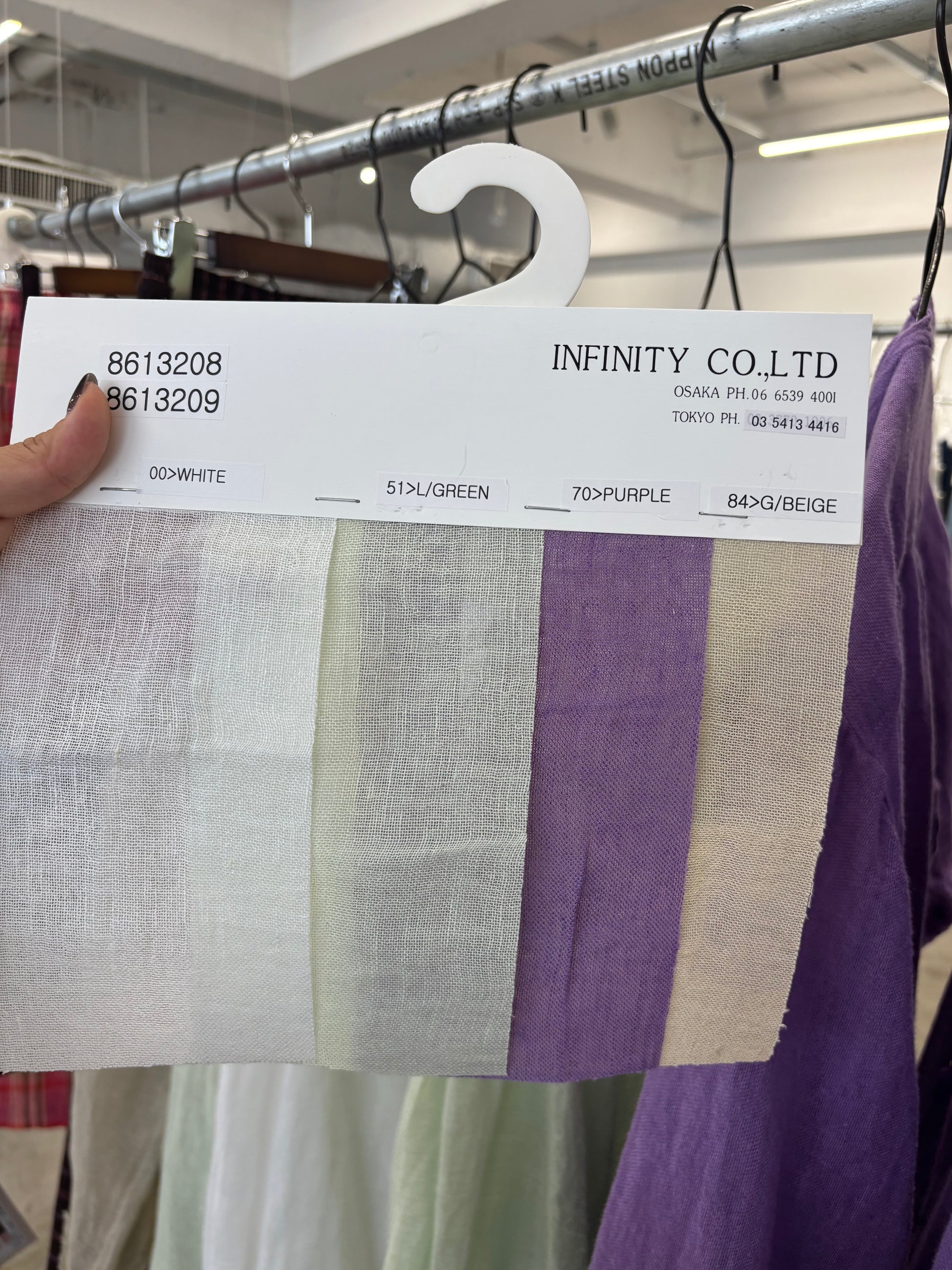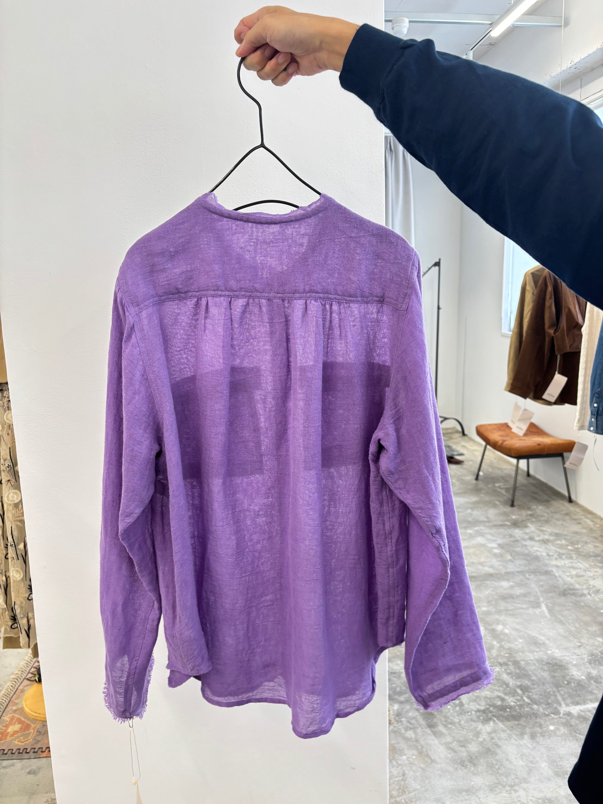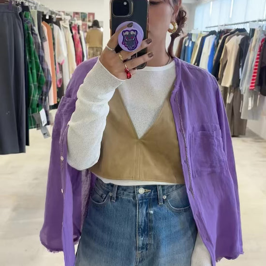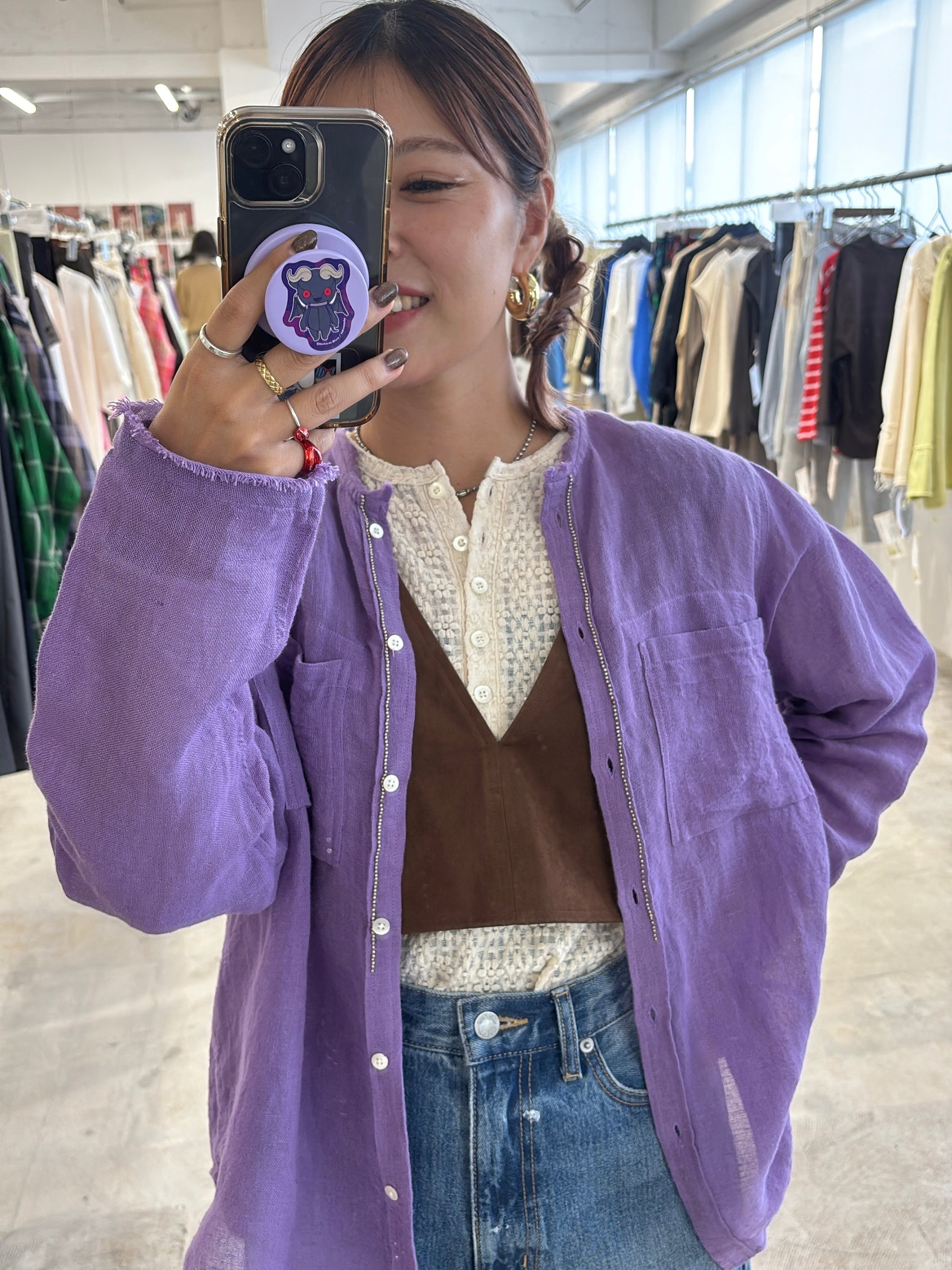 カラーは秋冬に登場していたような深めのパープルとは違い、今回は少しパステル寄りのやわらかいパープル。ヒラミはどちらかというとパステルカラーが得意ではないんですが、このリネンコットンの軽やかな生地感のおかげで、甘さが出すぎず程よい抜け感に仕上がっていました。