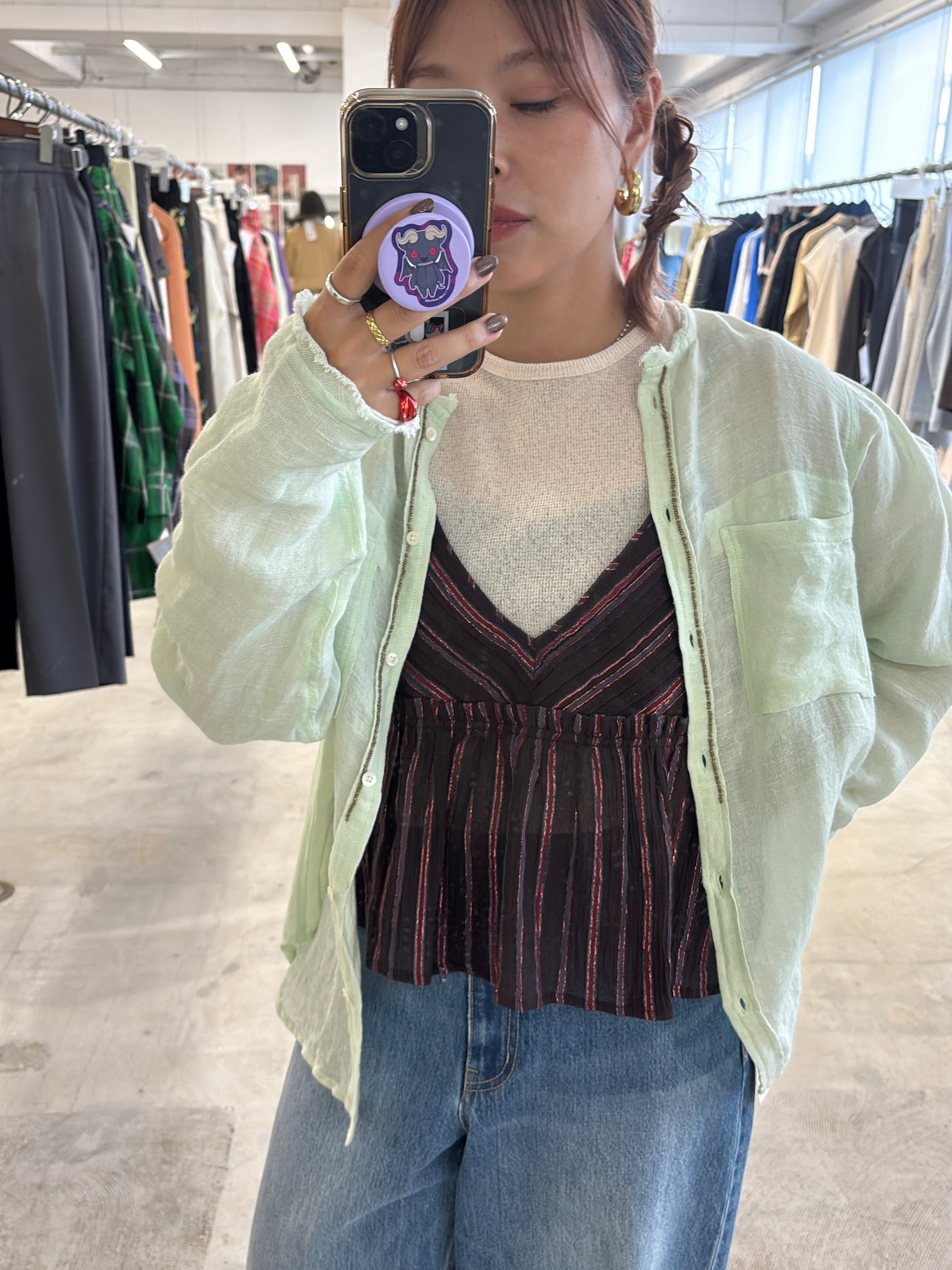 軽く羽織ってもかわいいし、このシャツの上からビスチェやキャミを重ねても◎