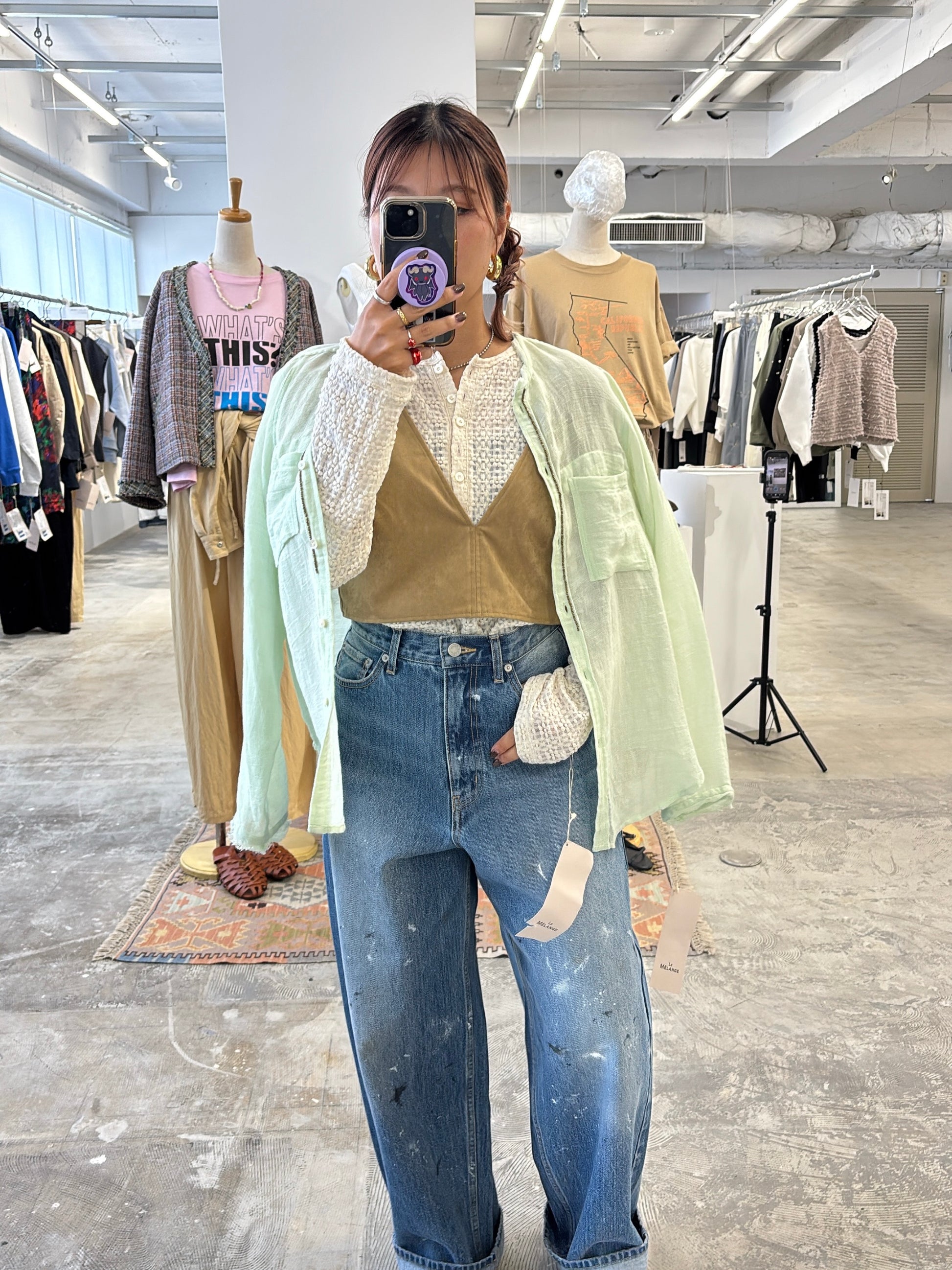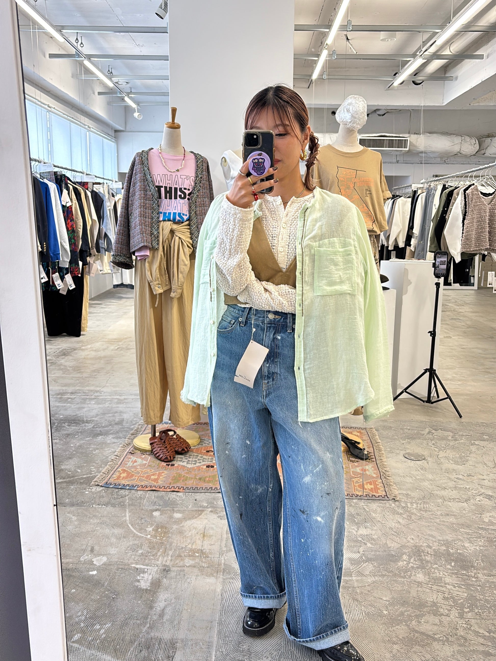 今年の春夏らしいレイヤードスタイルにぴったりなアイテムです。