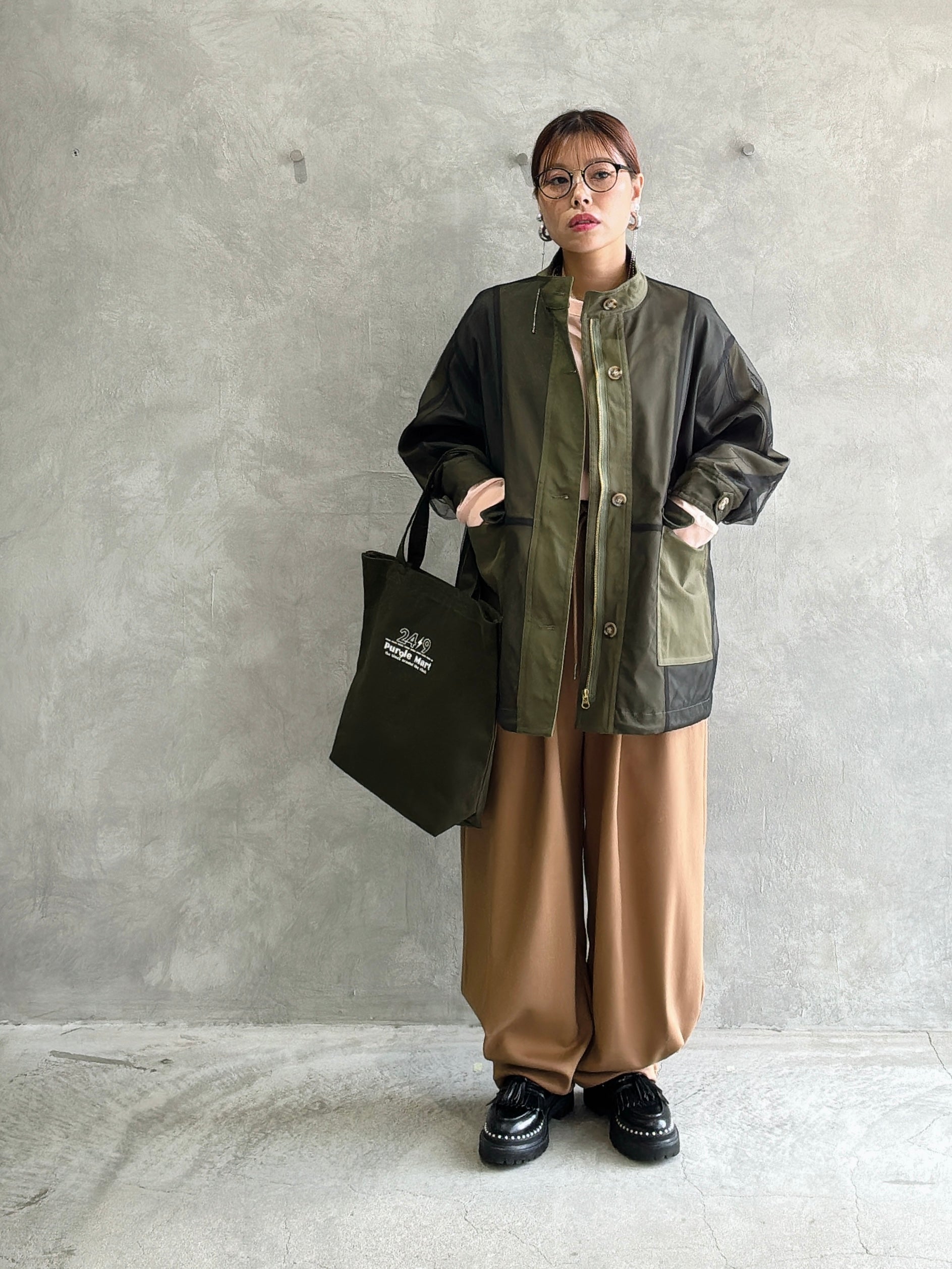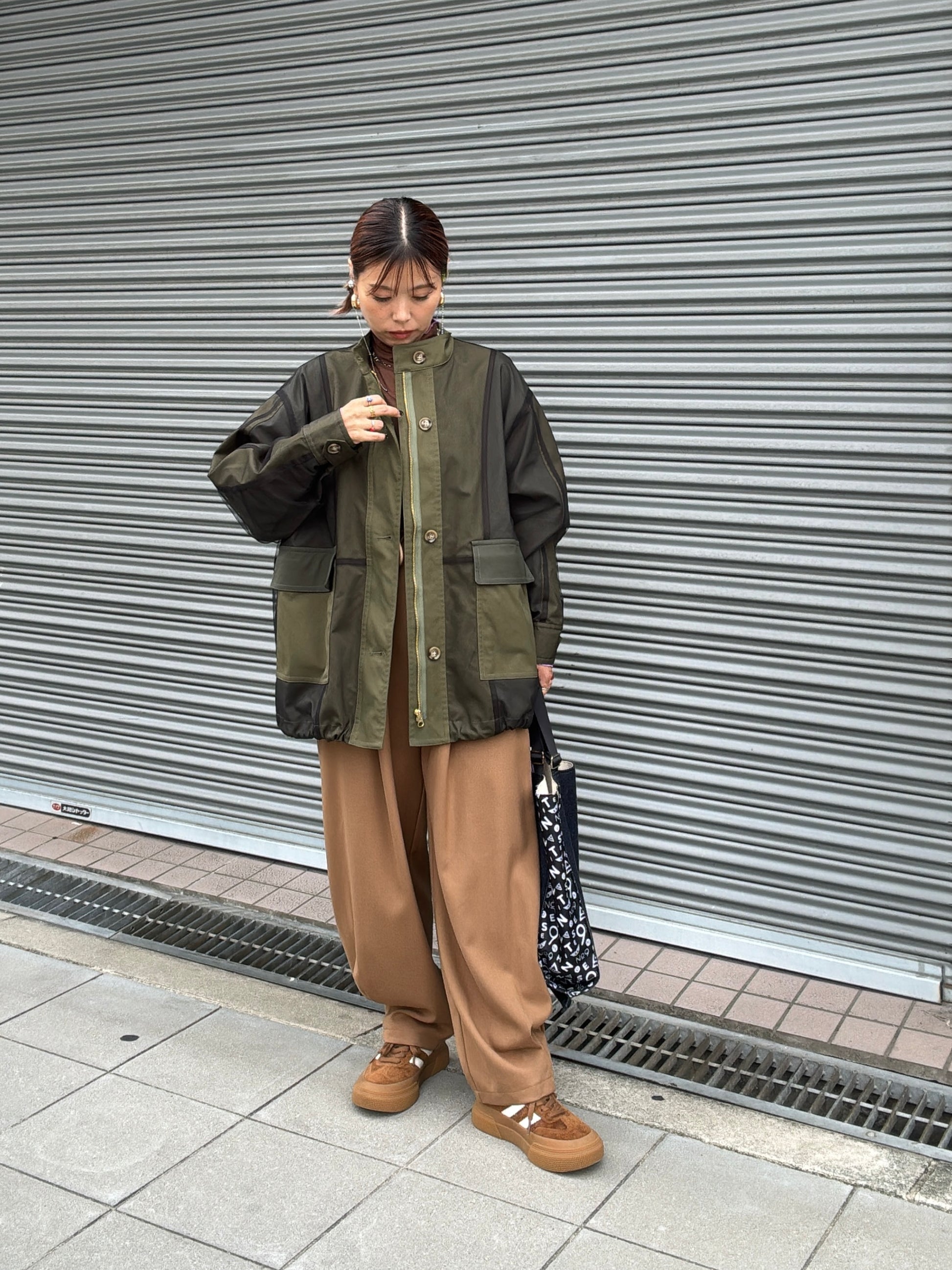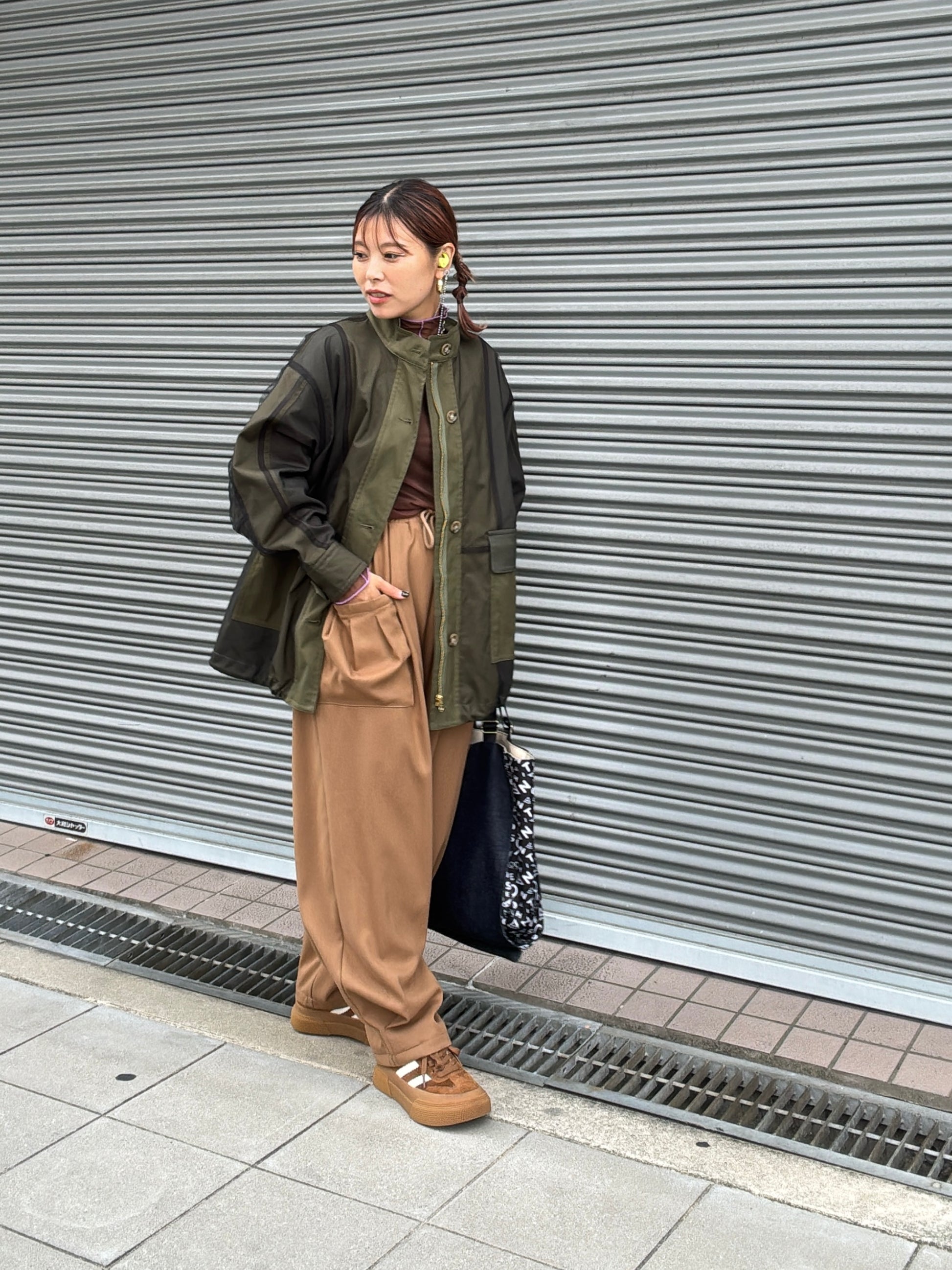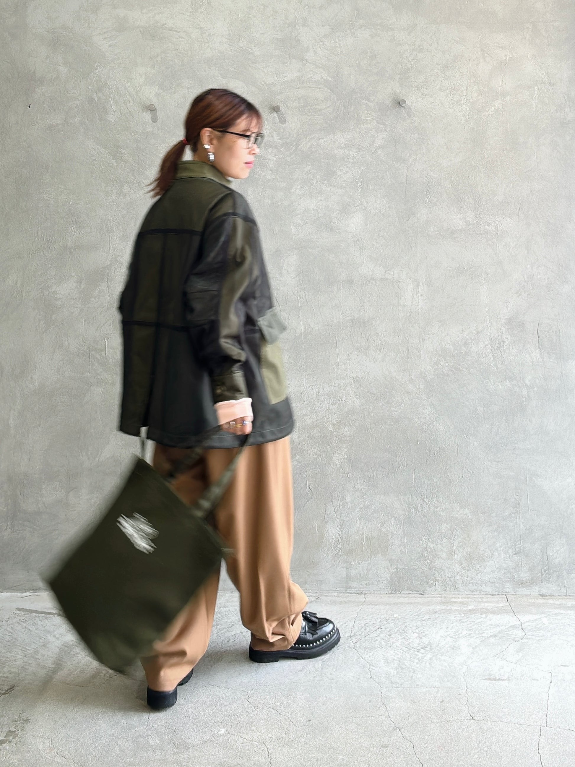 立体的なポケットと、ゆるいシルエットなのに綺麗みえするというシアンさんが大得意とするデザインの新作的なアイテムです。裾に大きく入ったタックがいい仕事してくれています。軽い履き心地でふんわりとしているのに、ウールライクな生地感が上品に見せてくれるパンツです。ヒールを合わせたら綺麗めに、ブーツやスニーカーでもペタンコパンプスでも靴によってもテイストが変わる楽しいアイテムだと思います。