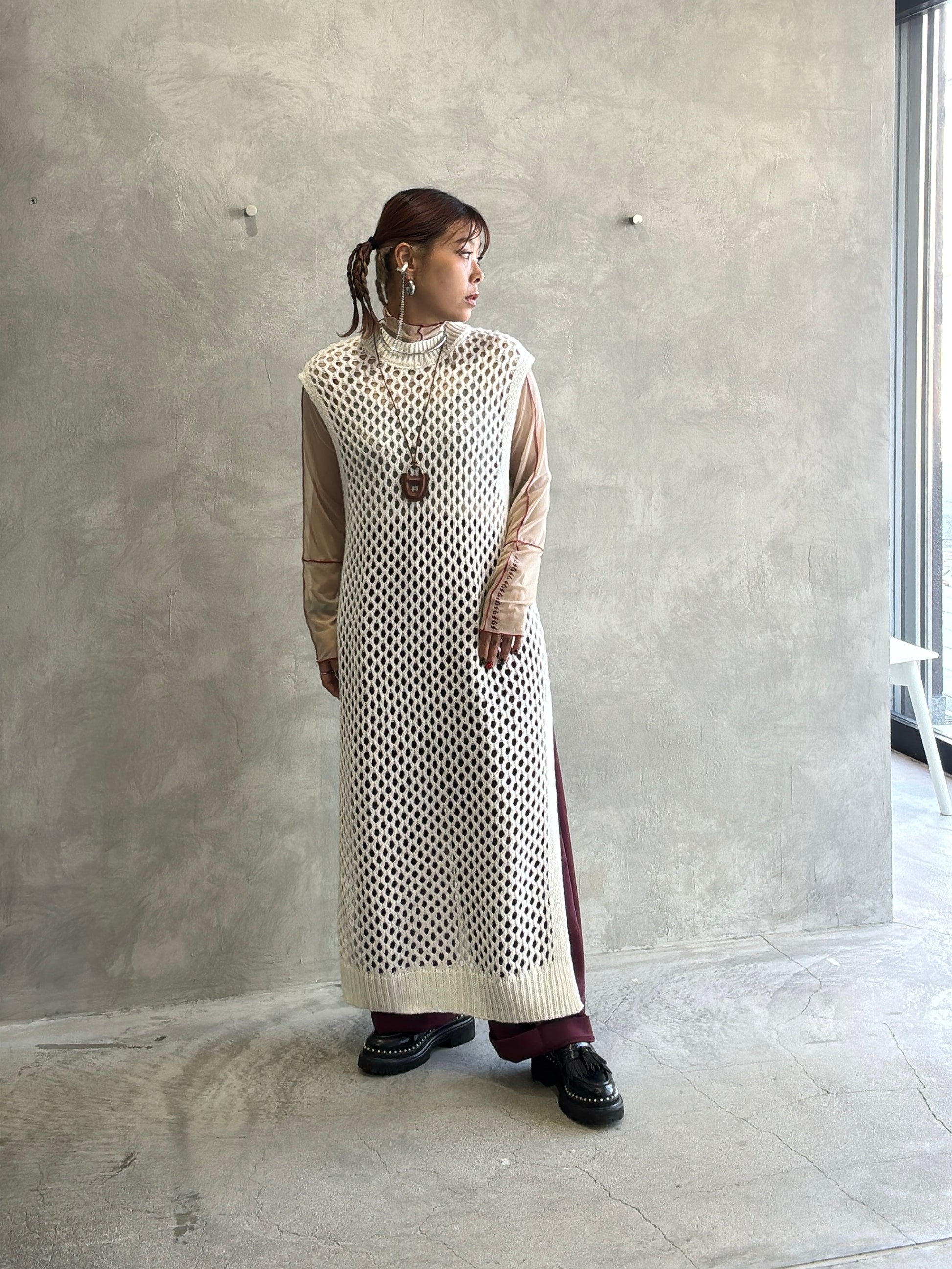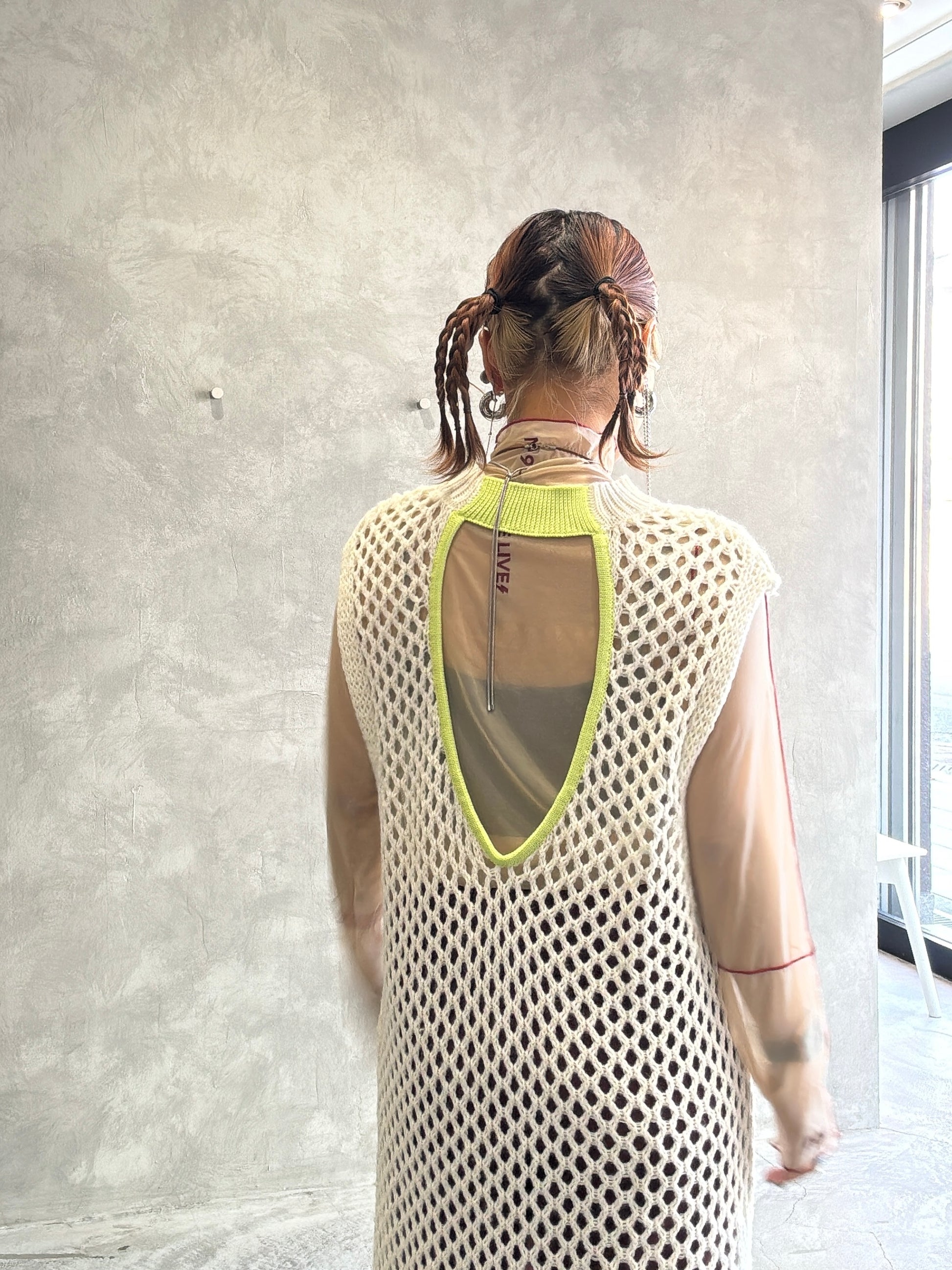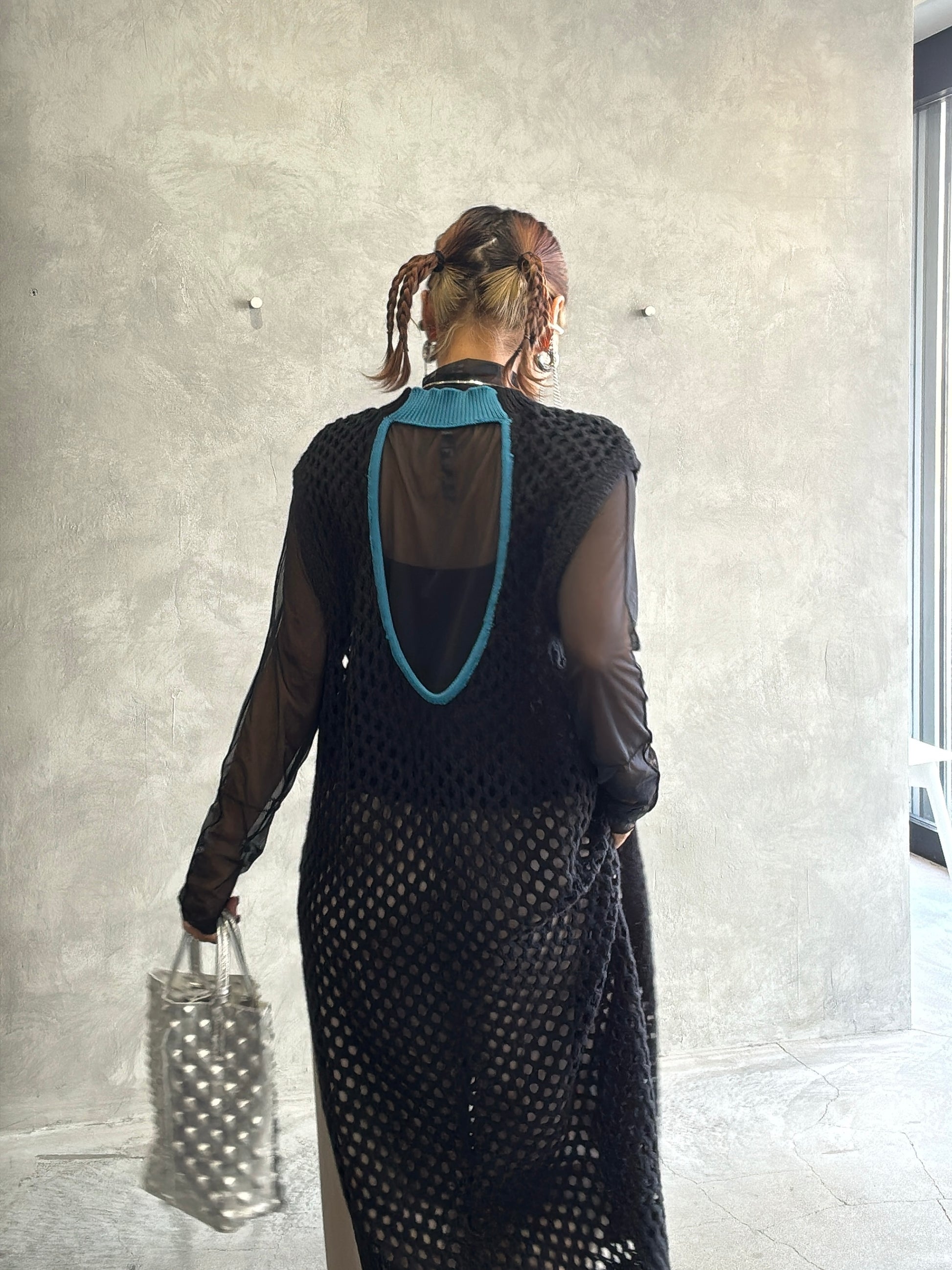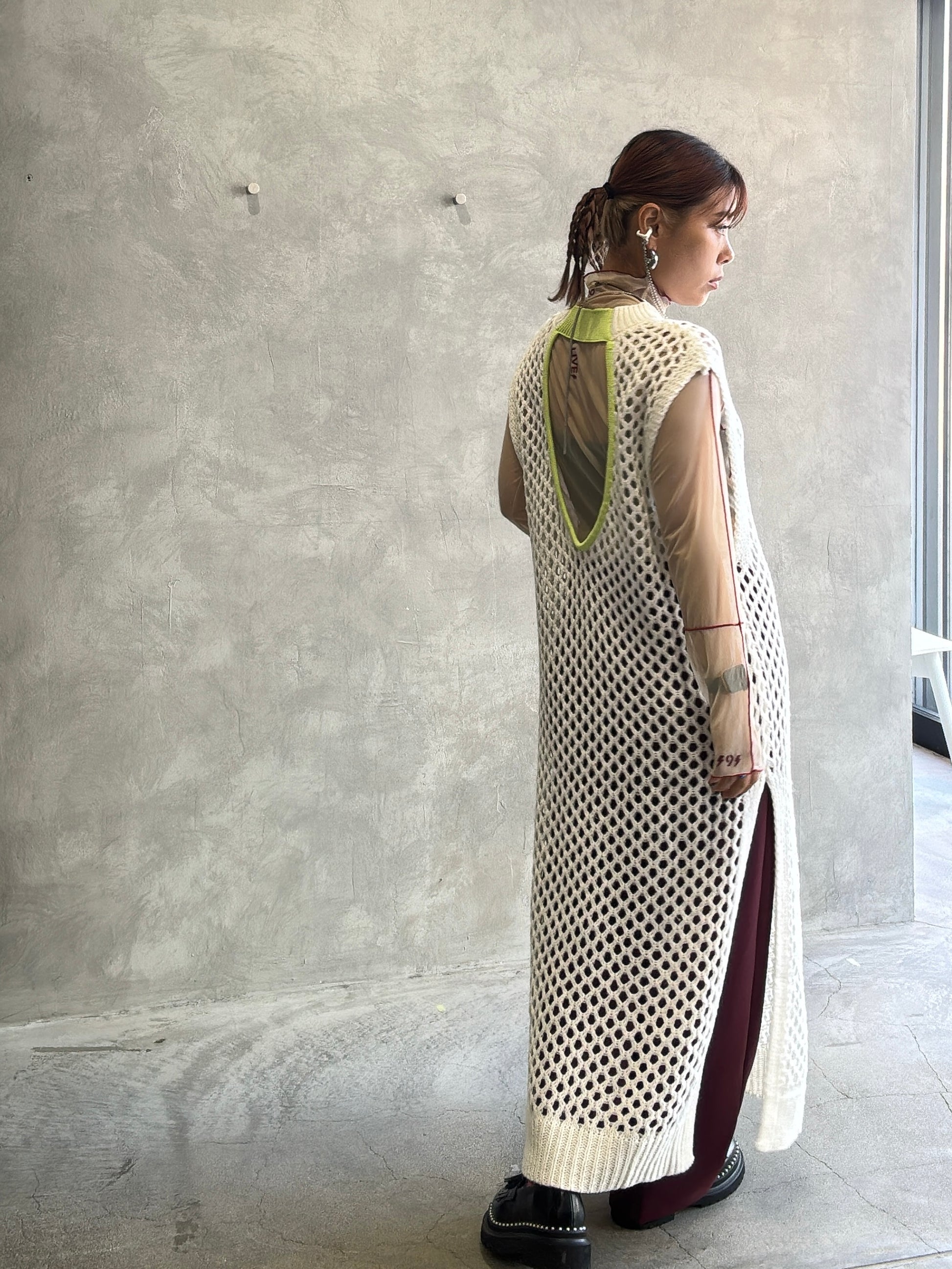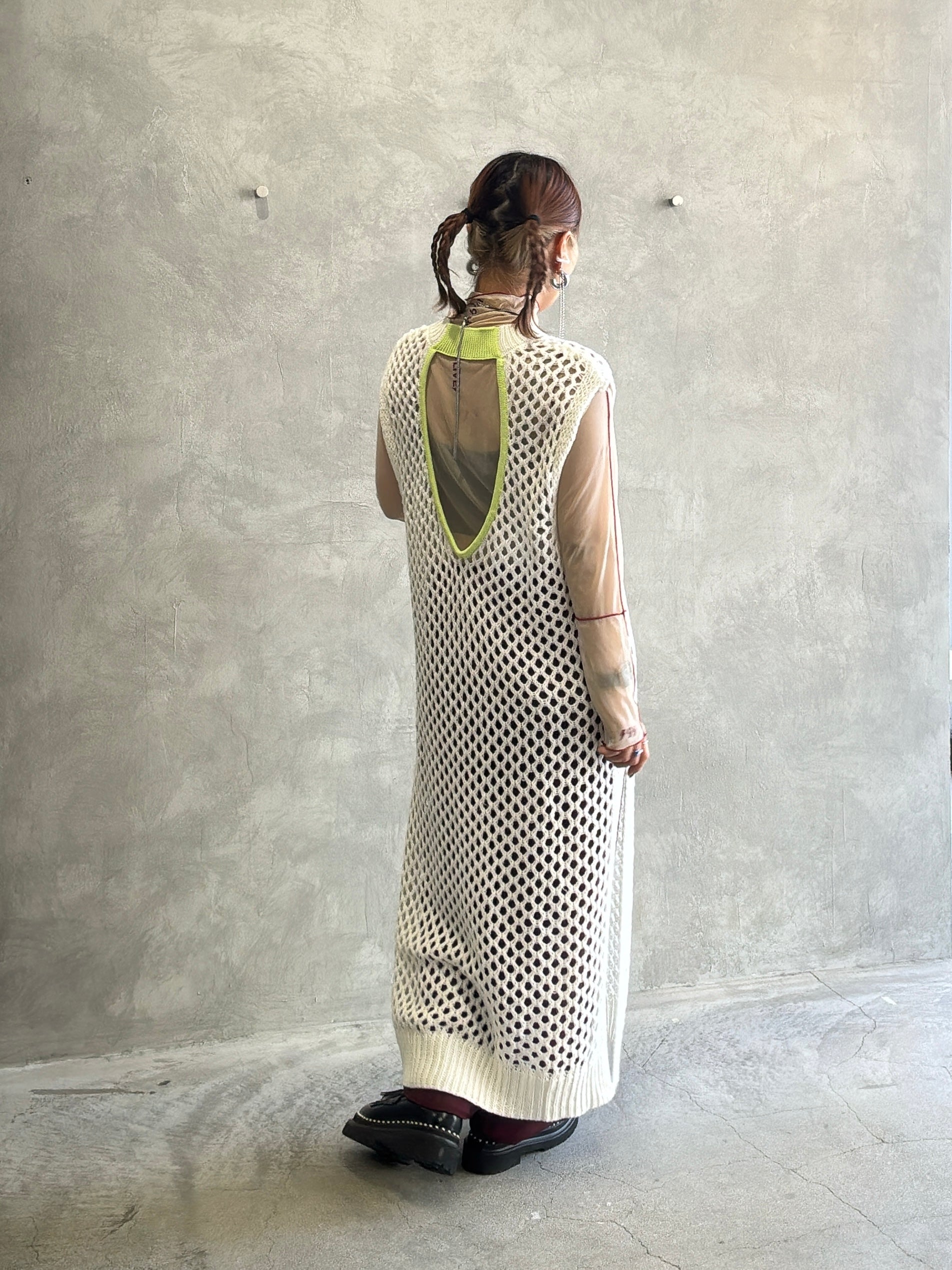 バックオープンメッシュニットワンピース/LHELBIE