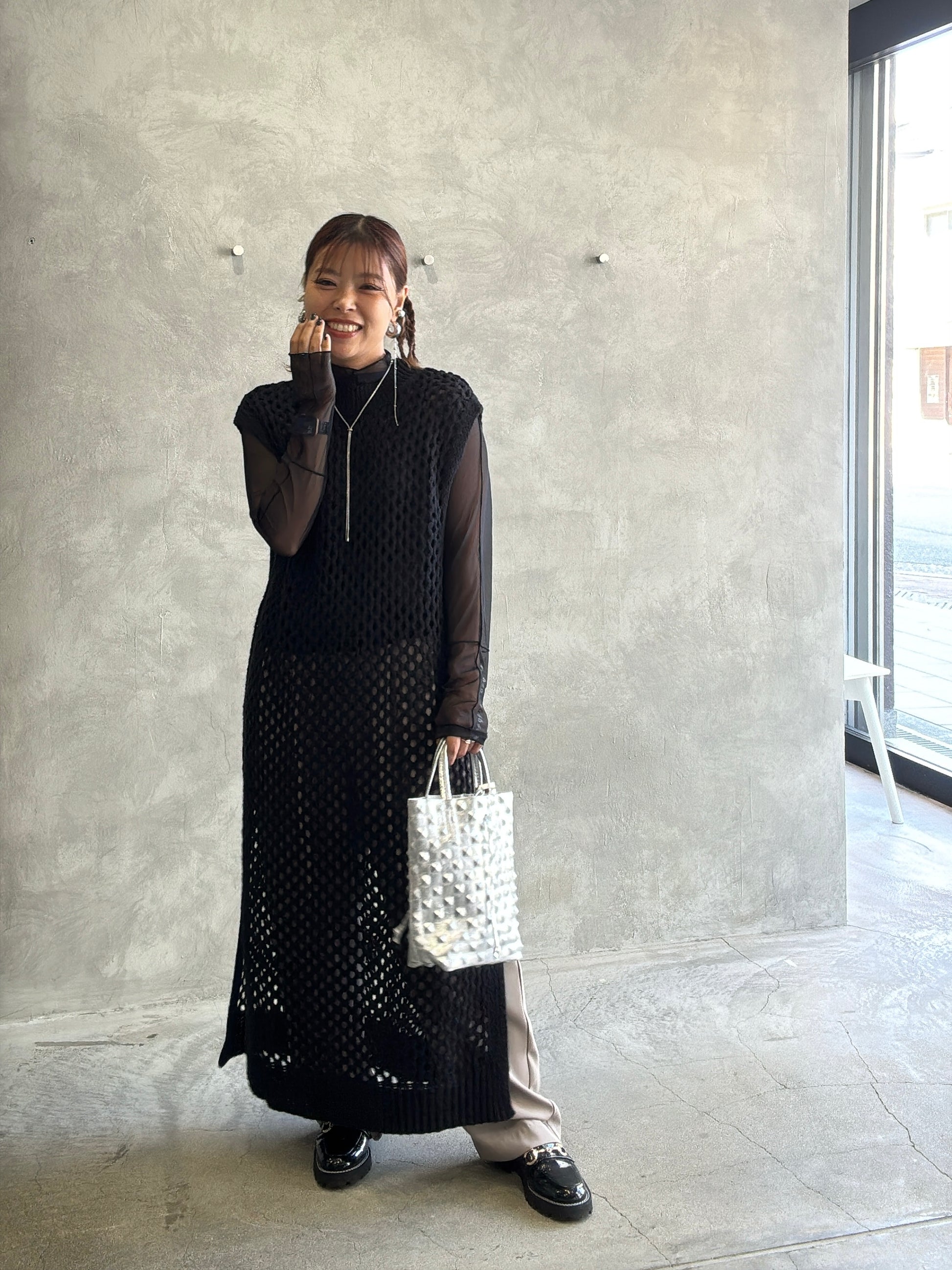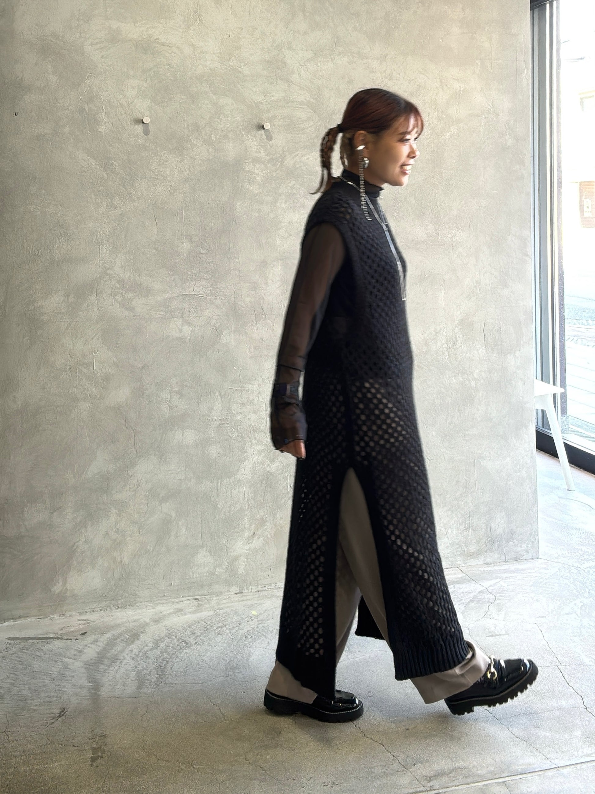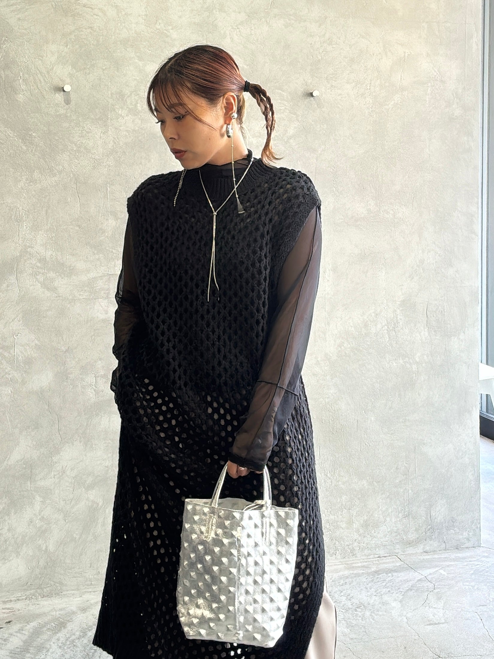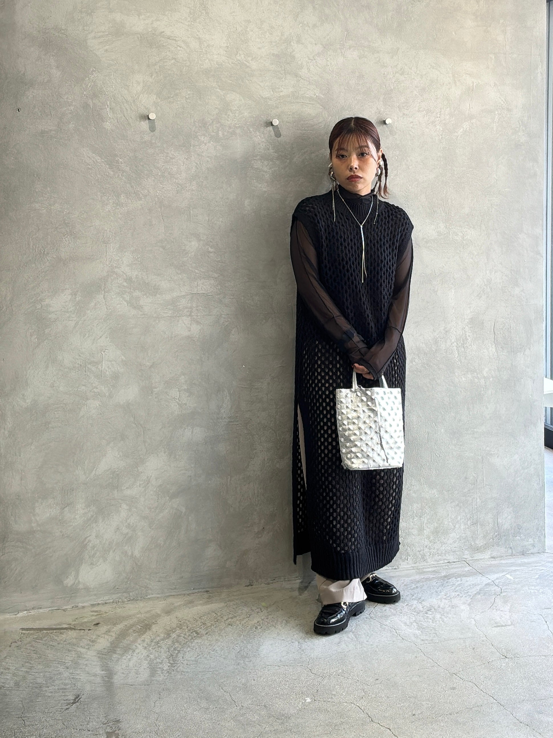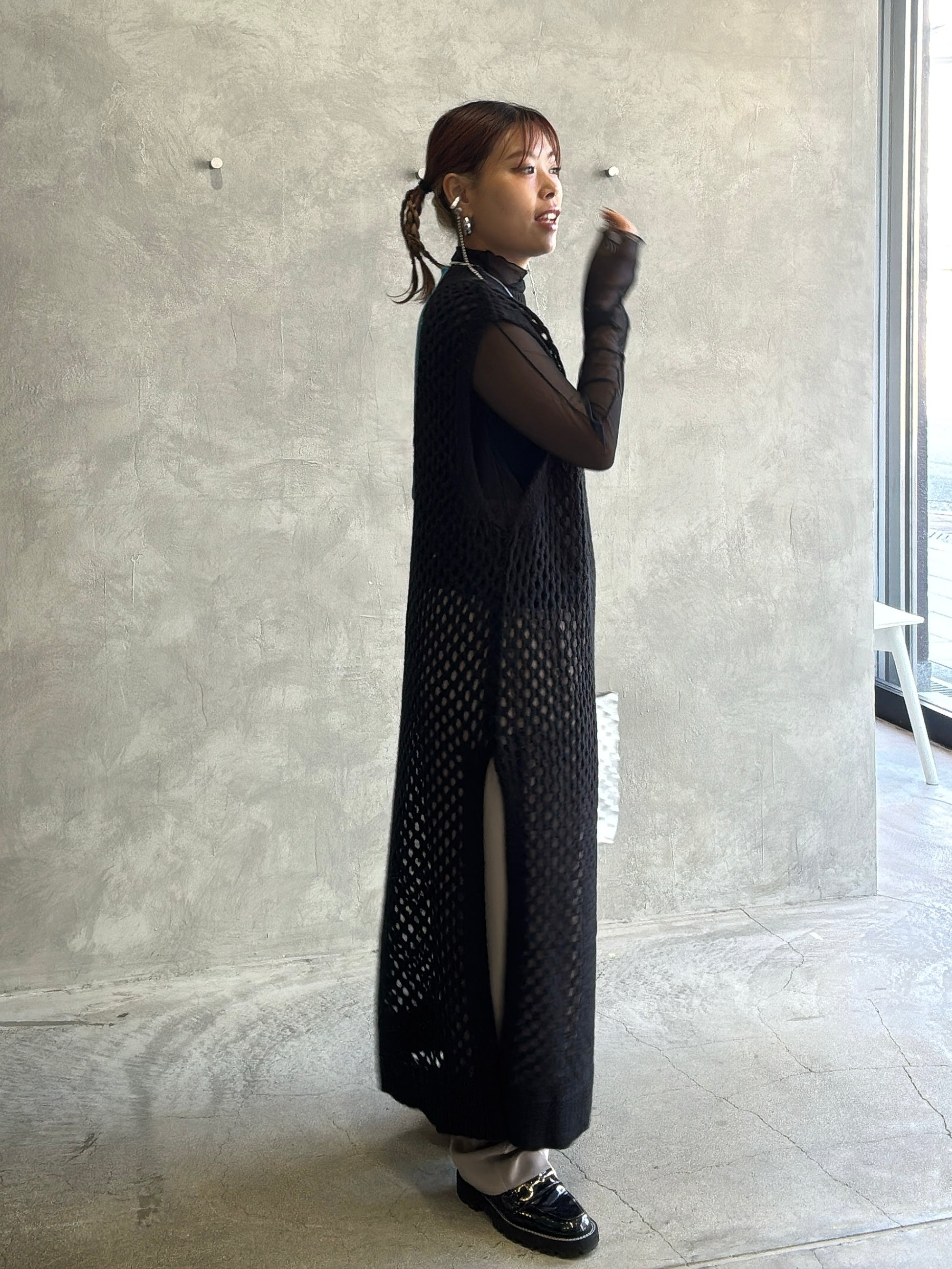 バックオープンメッシュニットワンピース/LHELBIE