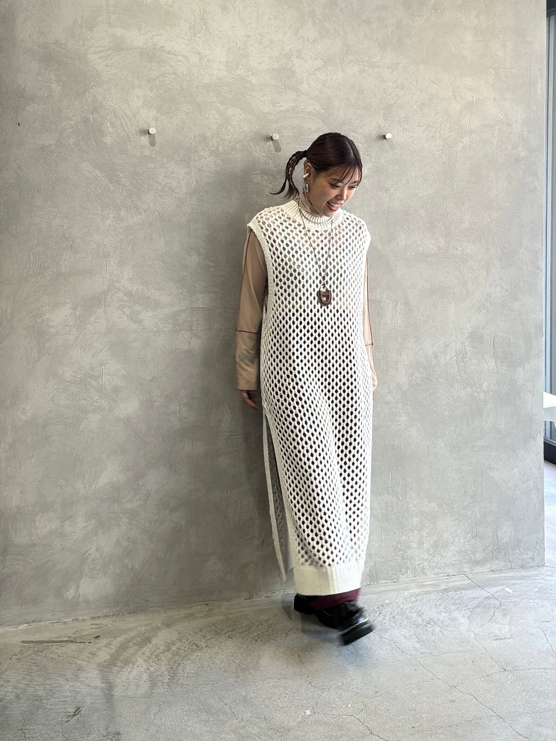 ・アイテム バックオープンメッシュニットワンピース