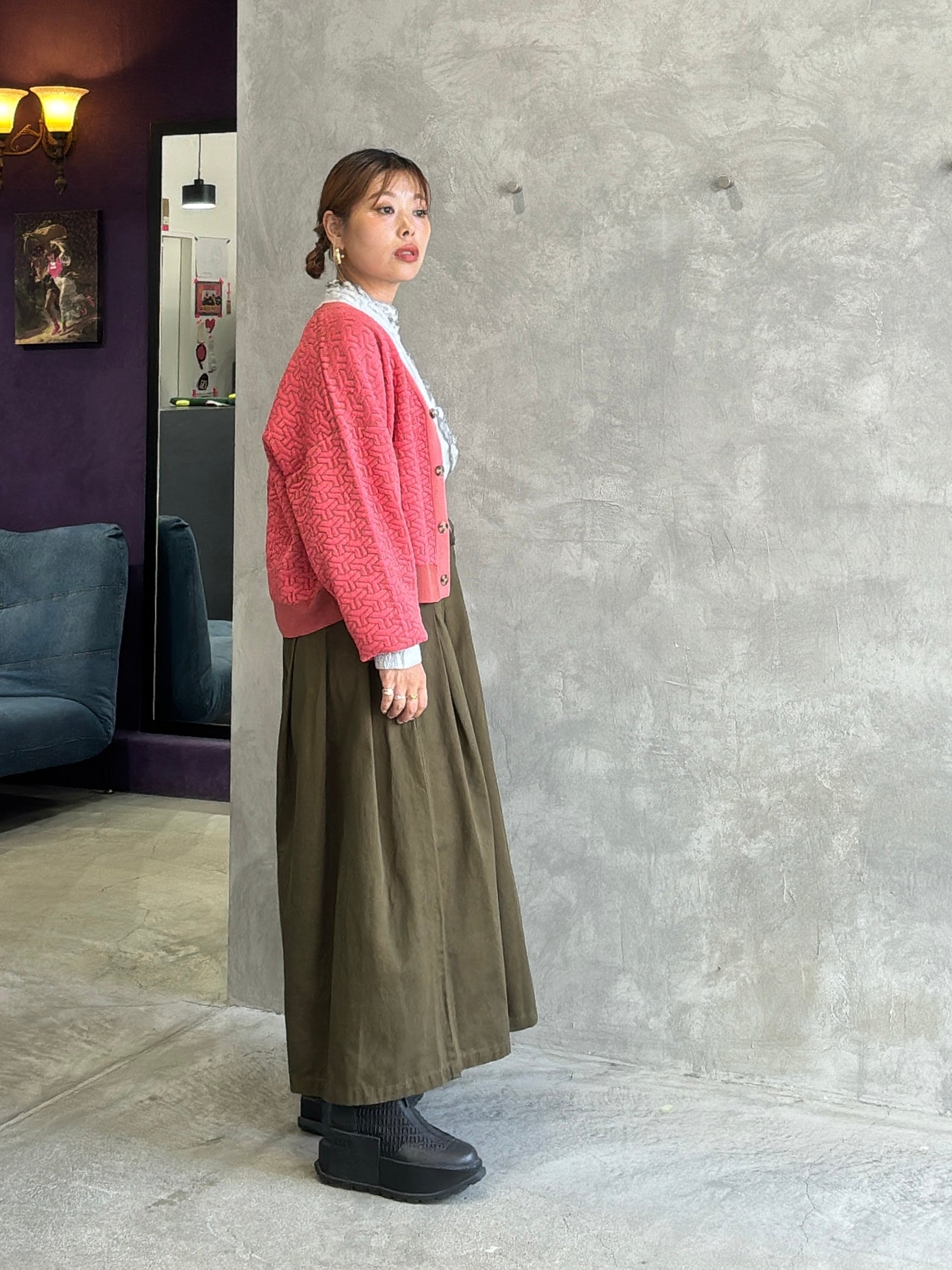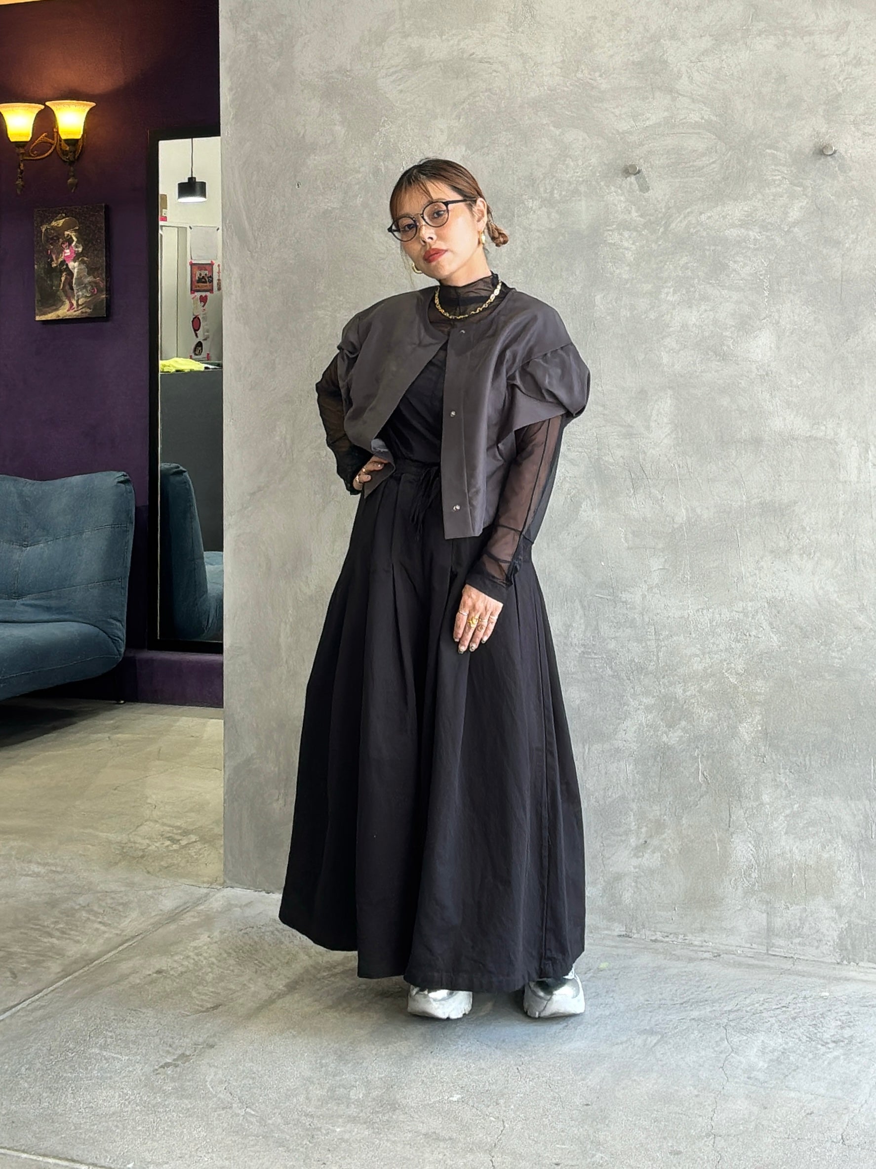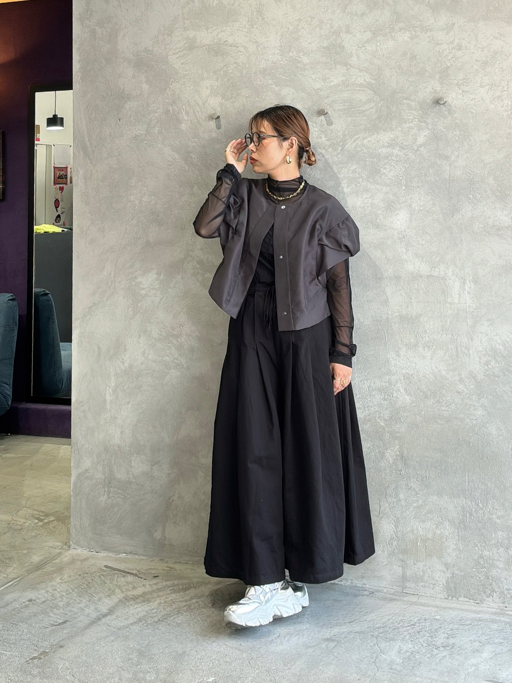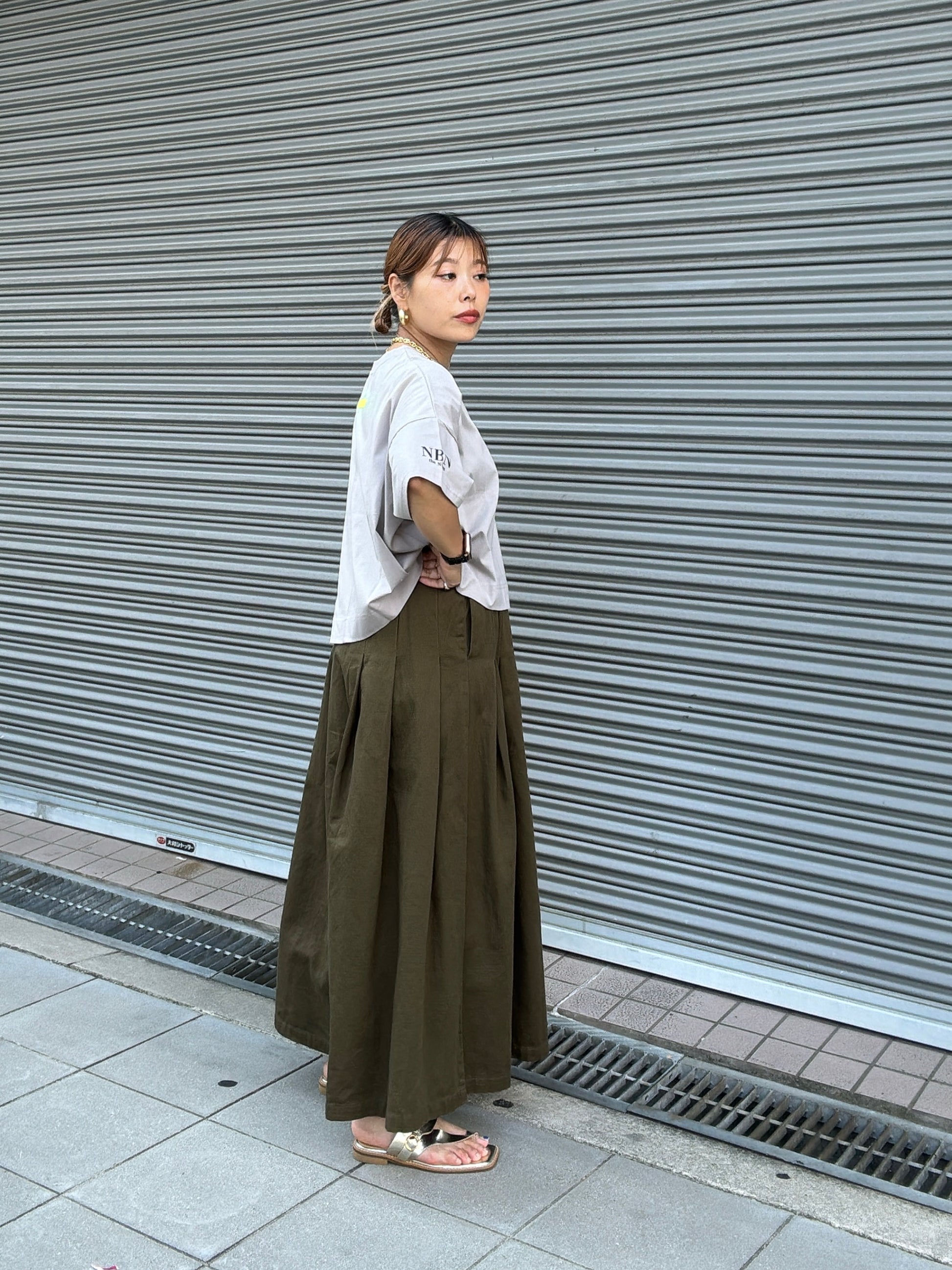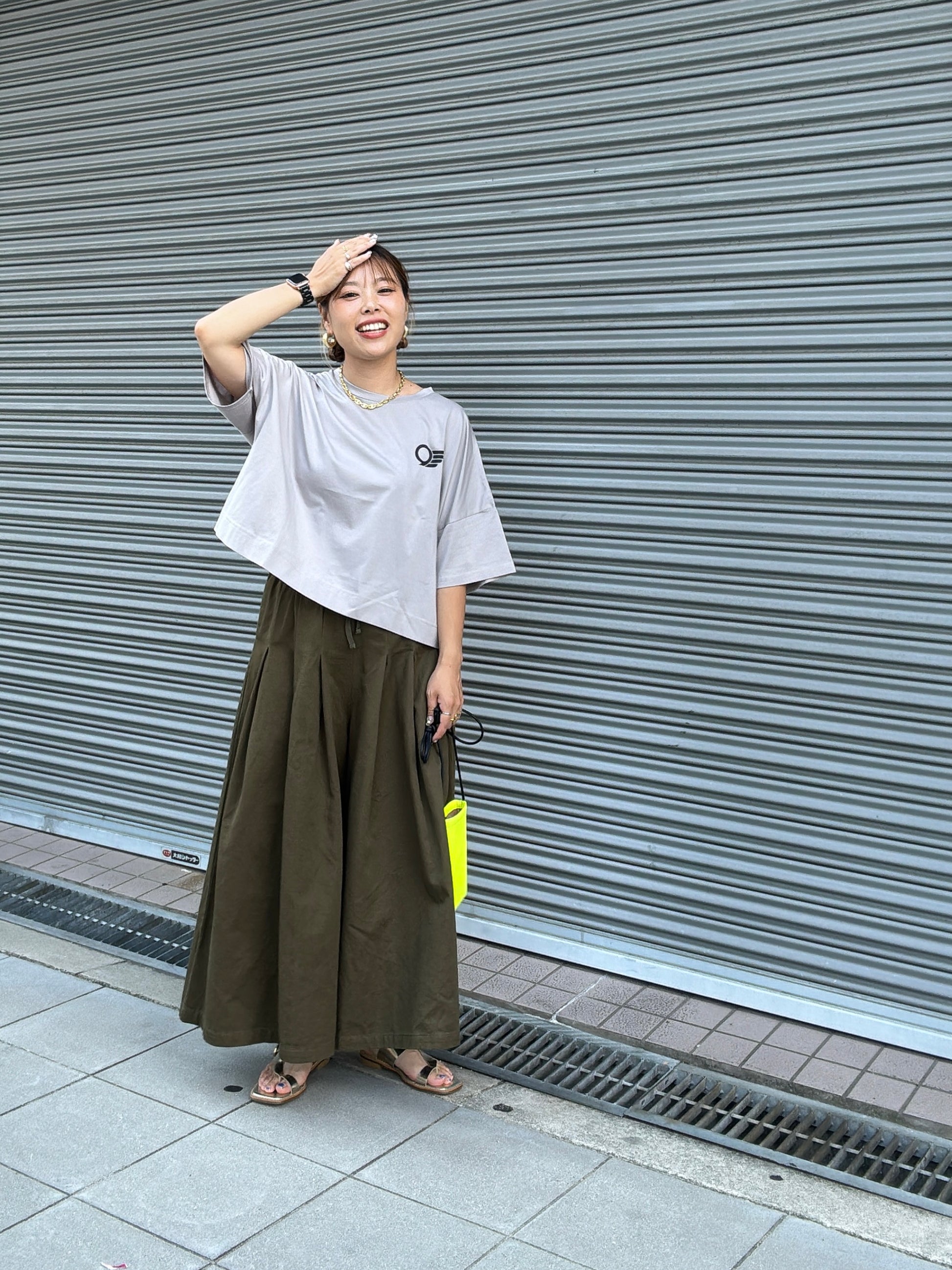 ヒラミも個人的にゲットしたお気に入りの一枚。厚手の生地で仕立てられていて、タックがしっかり入っているので、本当に袴みたいな雰囲気が出るのがポイント。レトロ感もありつつ、モードな存在感を放ってくれるアイテムです。