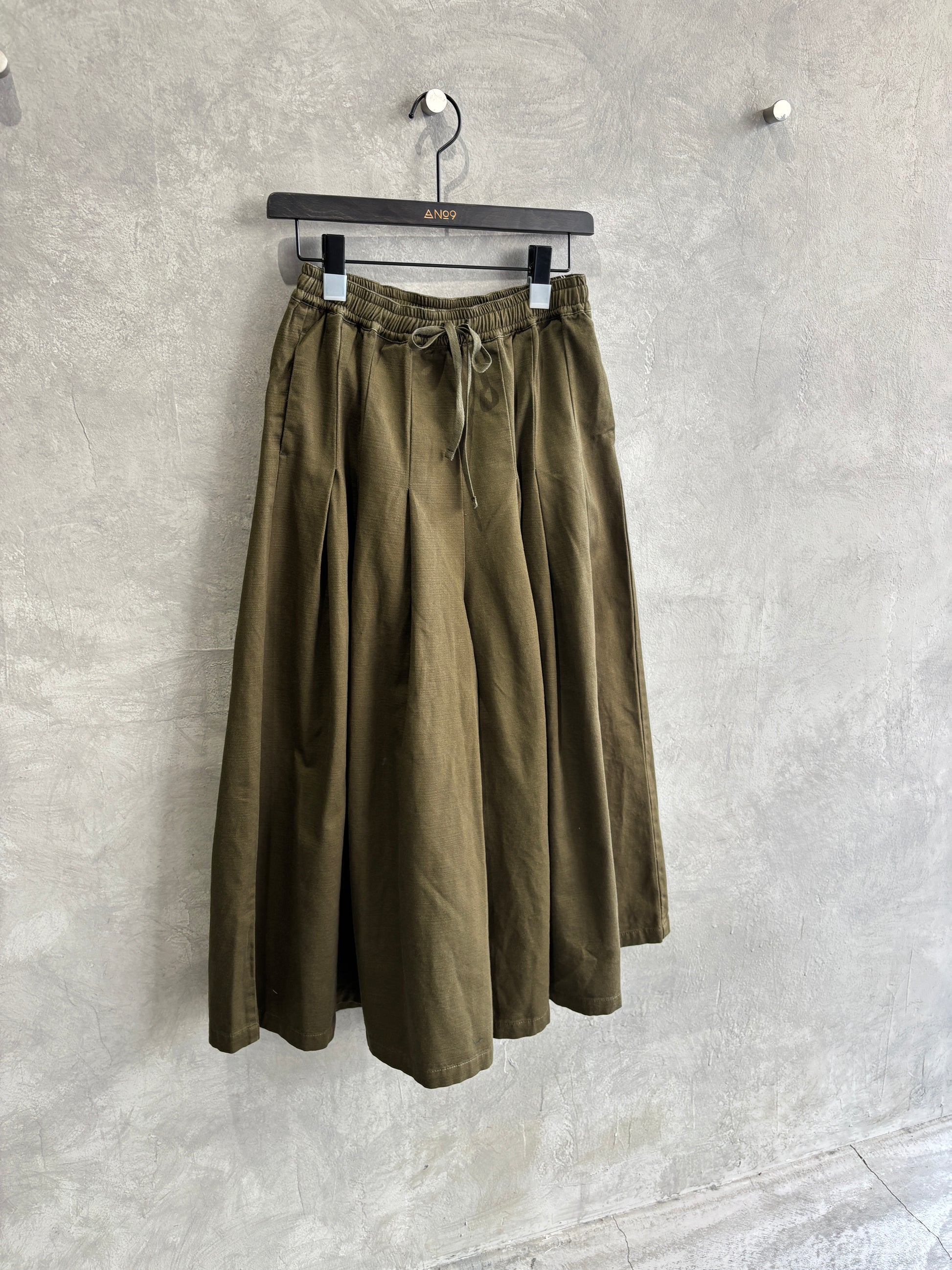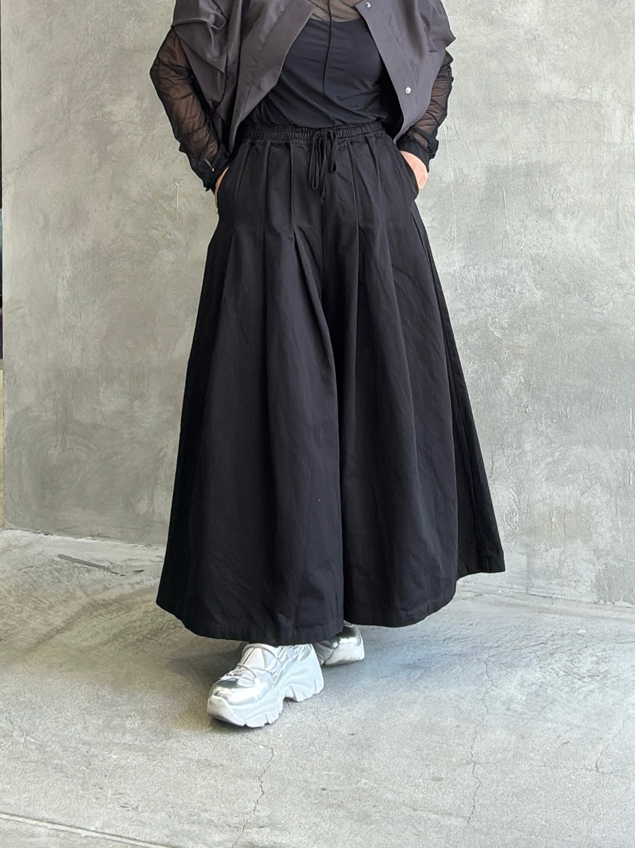 見た目はフレアスカートっぽいけど、実はパンツ。プリーツパンツとも普通のガウチョとも違う、“ありそうでなかった”絶妙なデザインになっています。