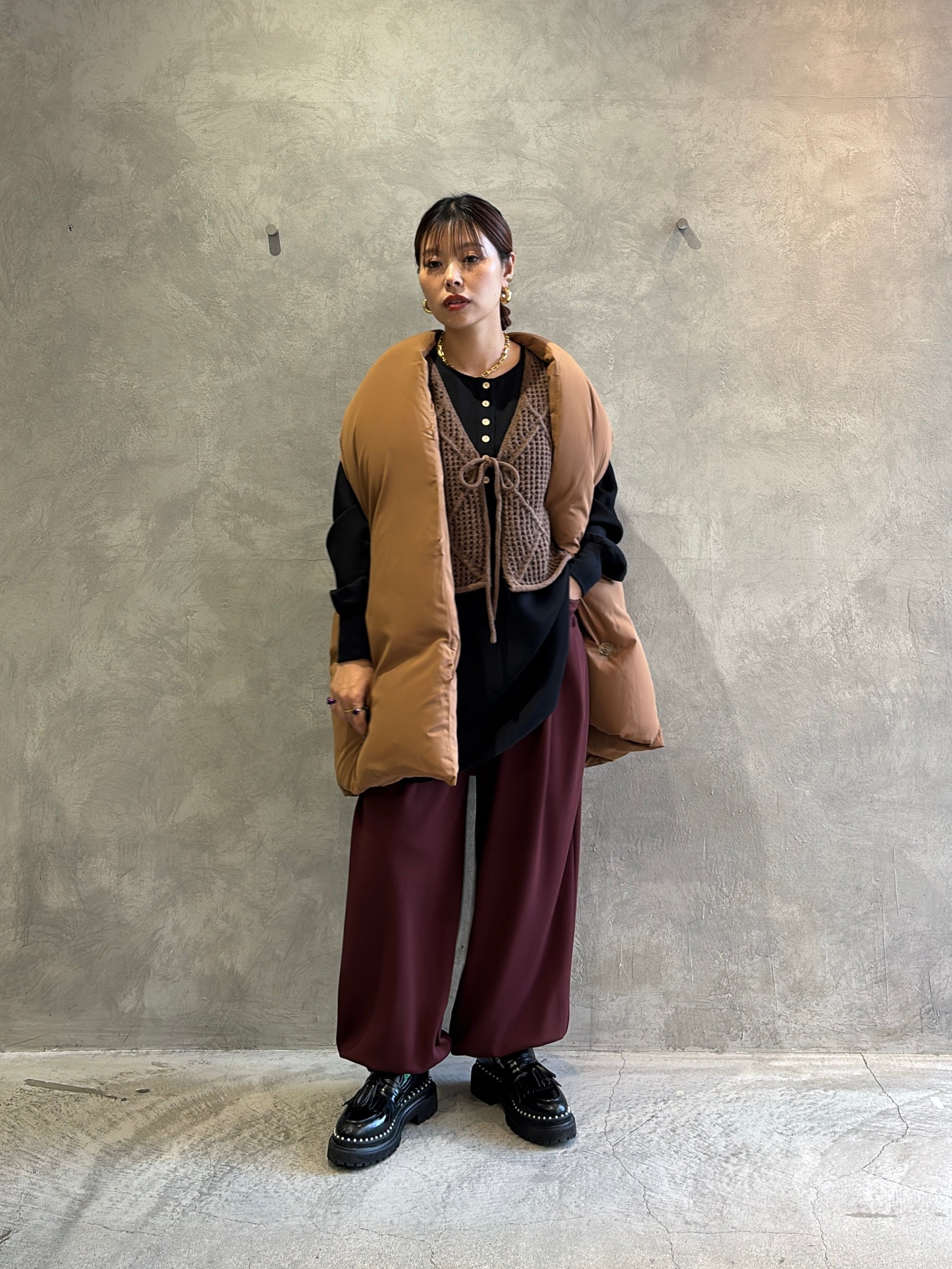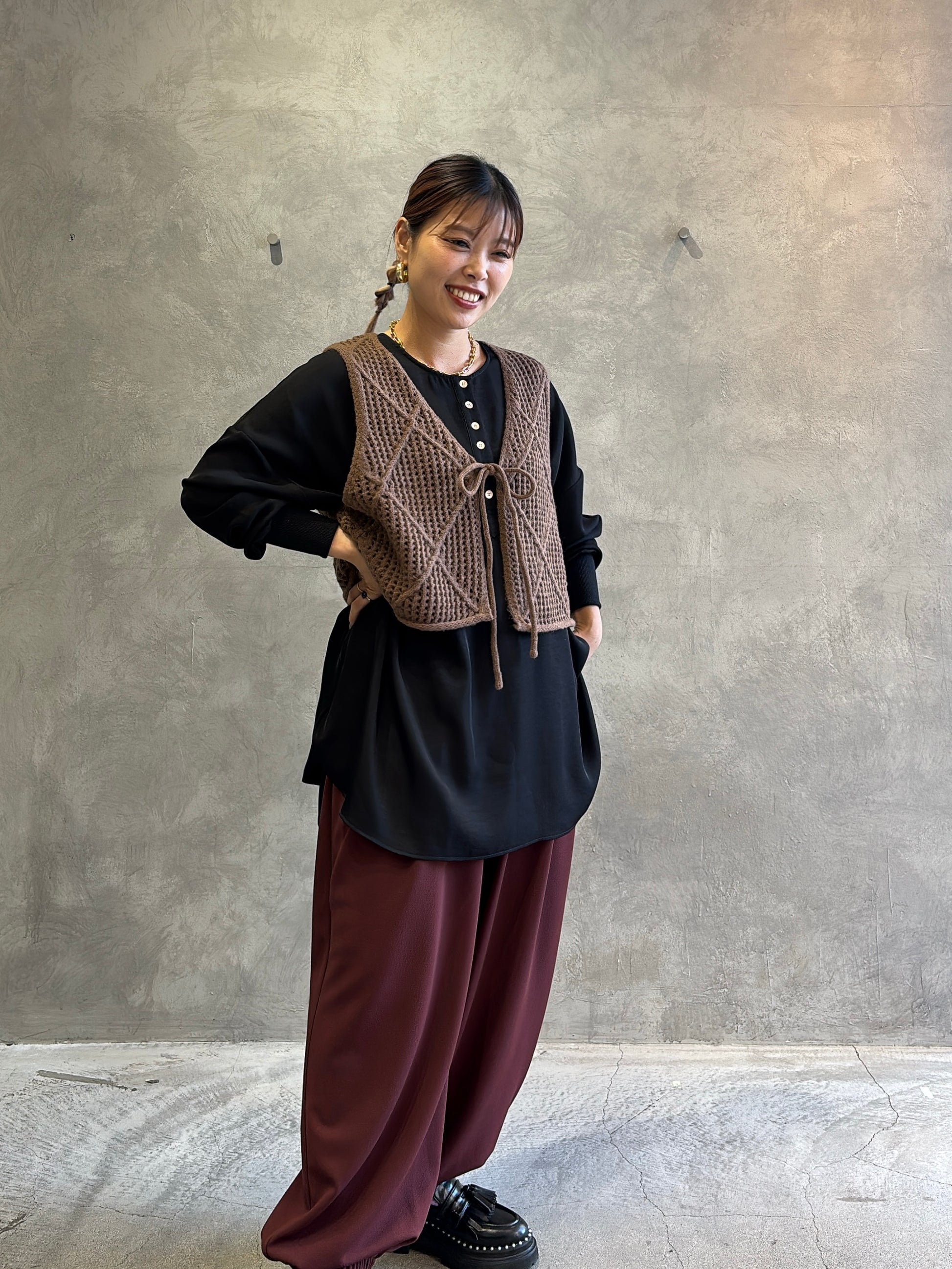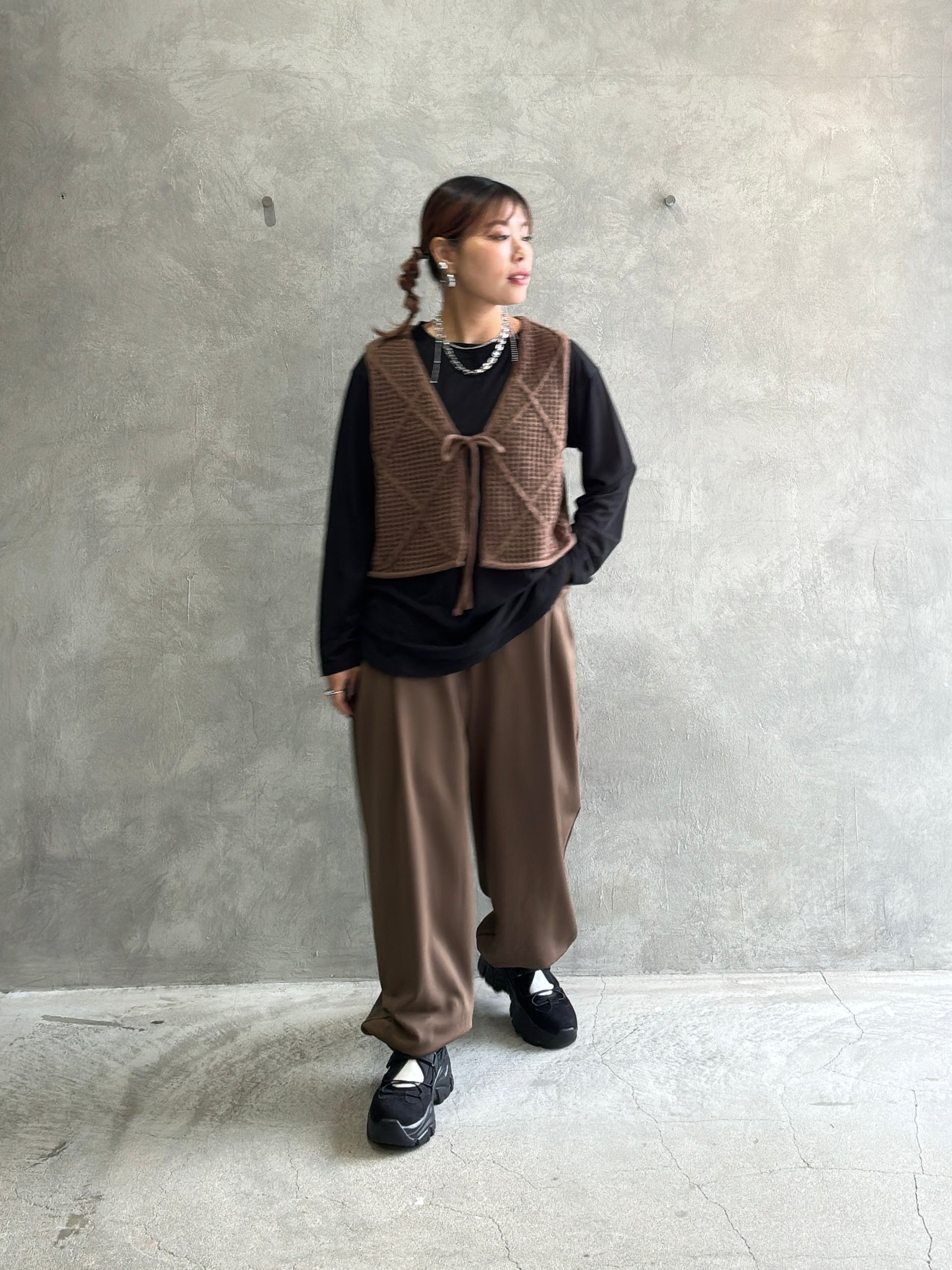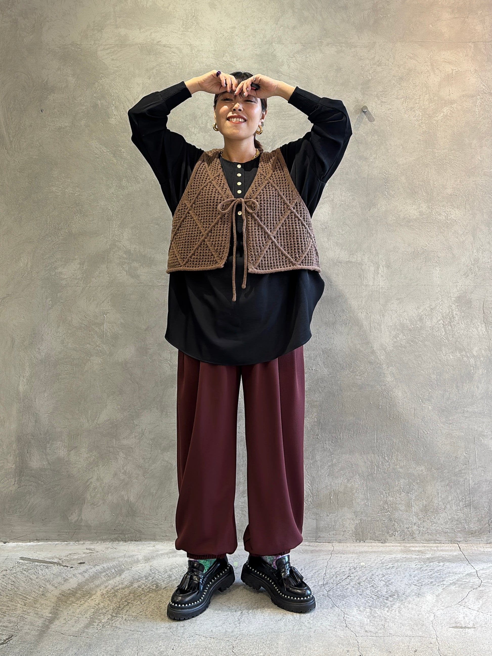 中でもこのCYAN TOKYOのニットベストは、ざっくりとした編み目が印象的で、着こなしのアクセントとして活躍してくれます。