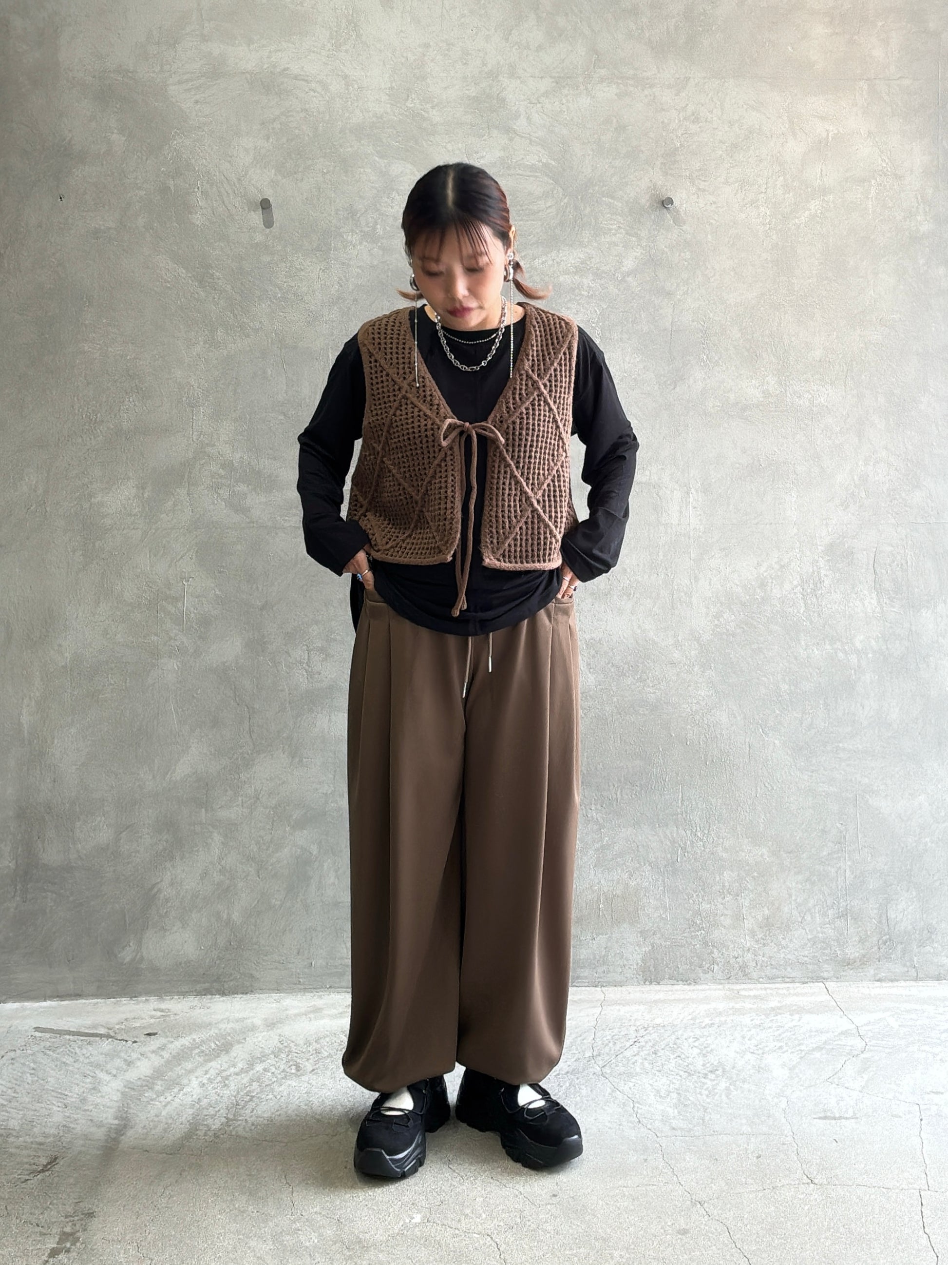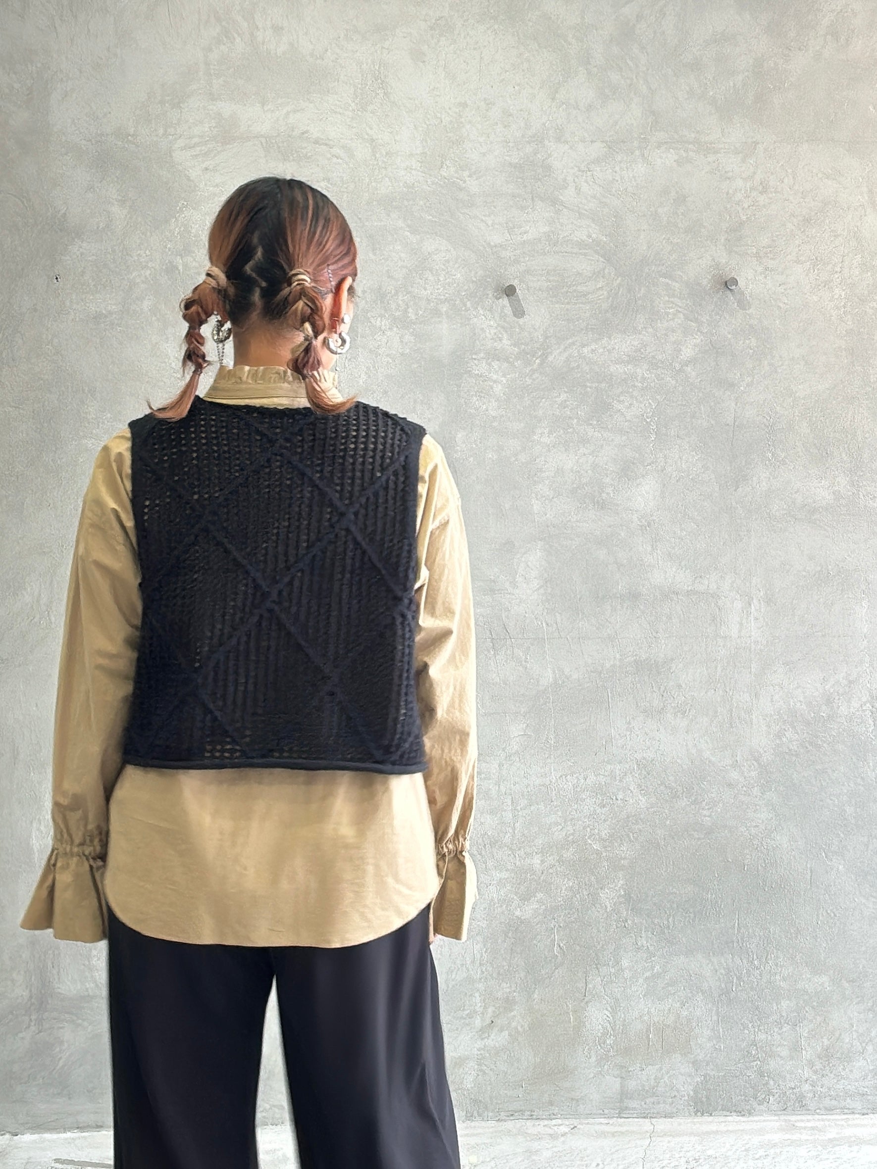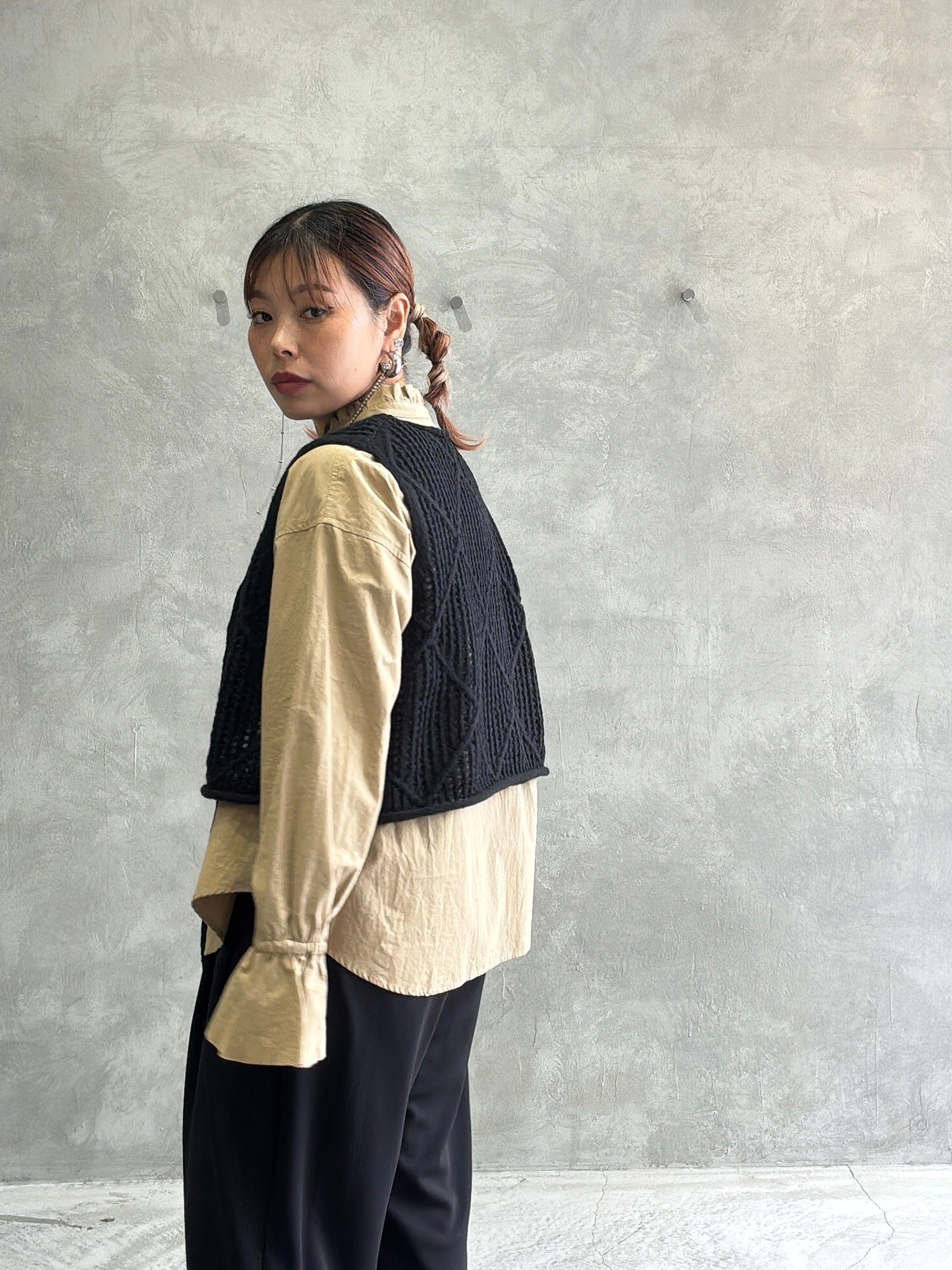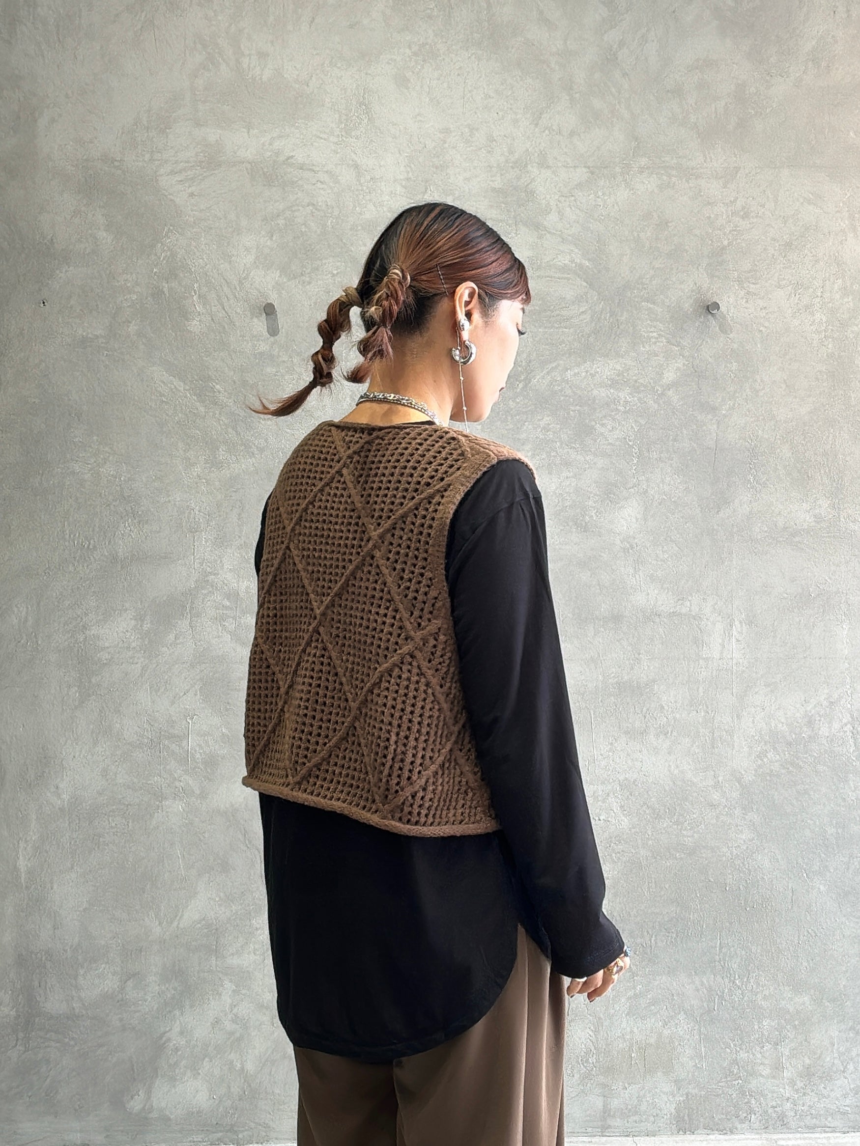 中でもこのCYAN TOKYOのニットベストは、ざっくりとした編み目が印象的で、着こなしのアクセントとして活躍してくれます。