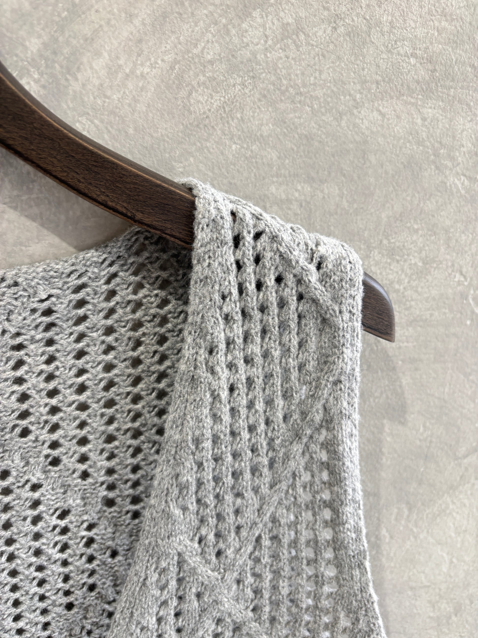 ざっくり編みの質感に程よい空気感があり、着こなしに抜け感と立体感をプラスしてくれます。